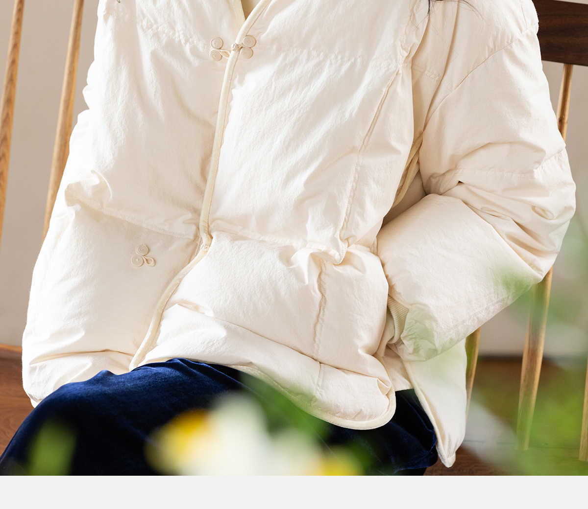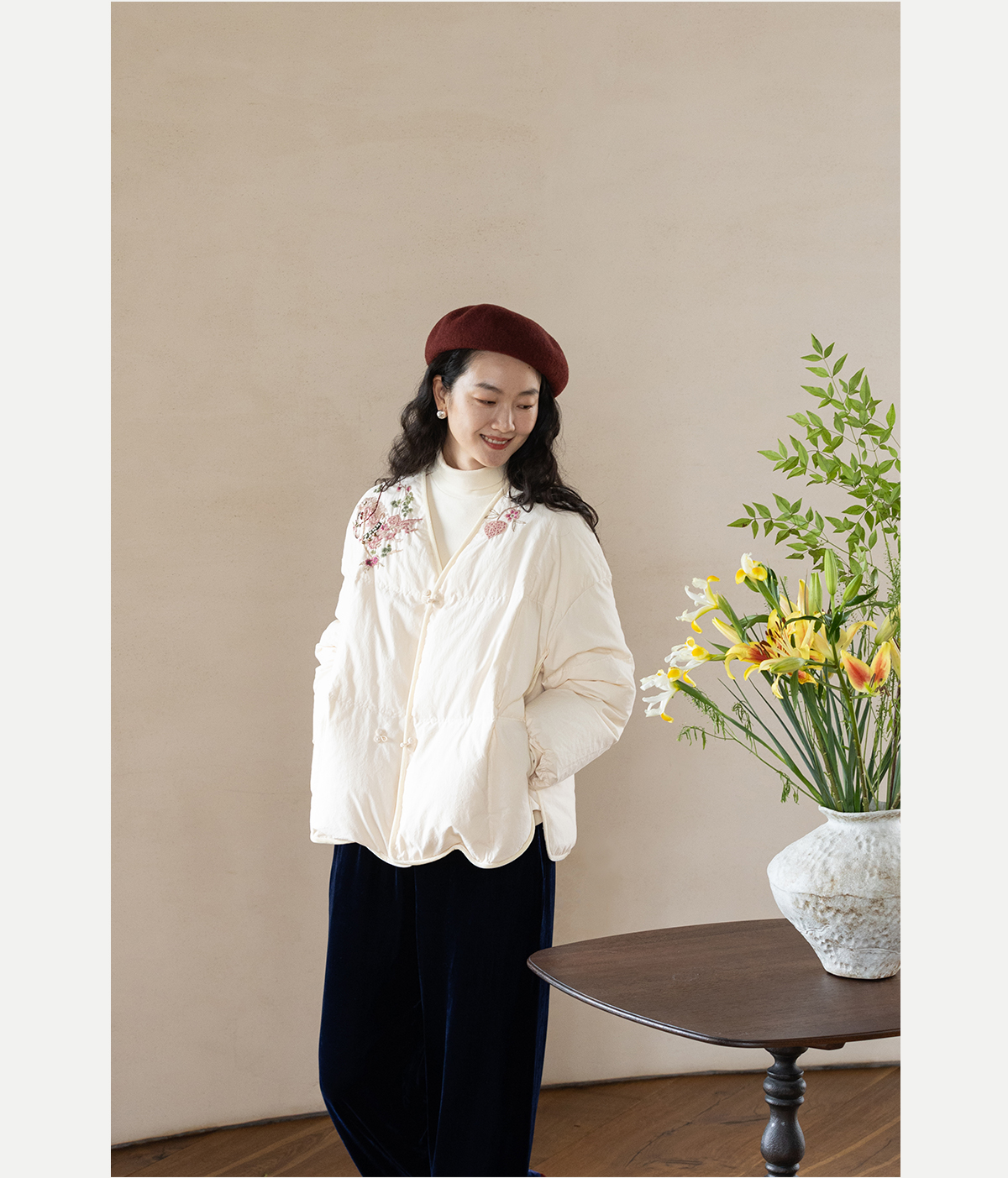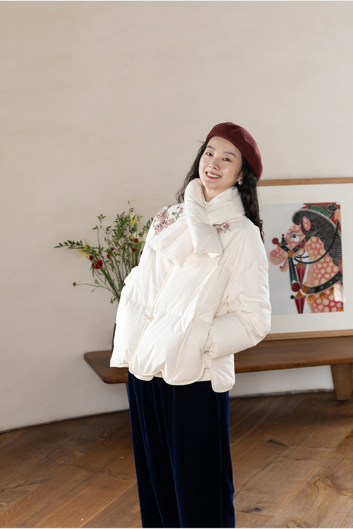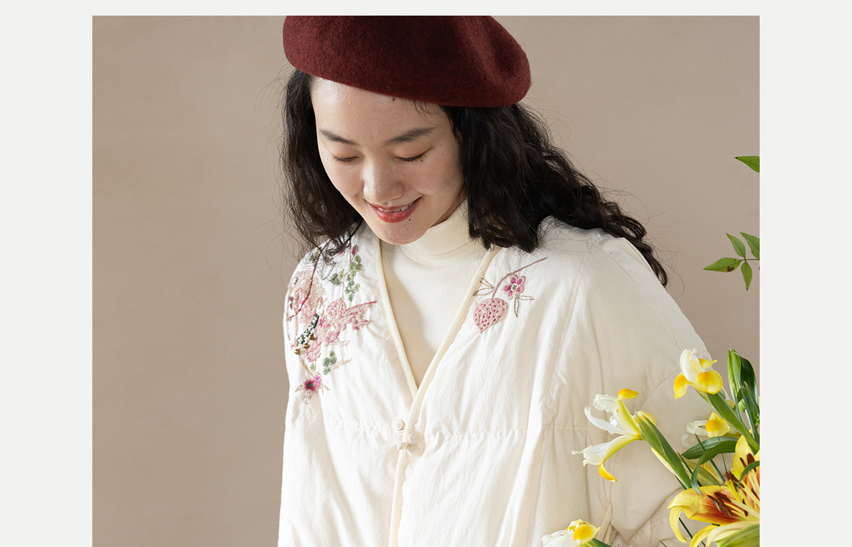 牧衣游原创 手工刺绣厚实棉红嘴雁绒短羽绒服保暖抗寒新中式 冷千