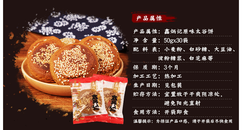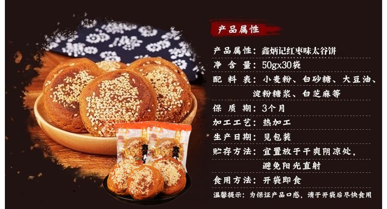 鑫炳记原味红枣味太谷饼50g×30袋整箱山西特产休闲食品糕点点心