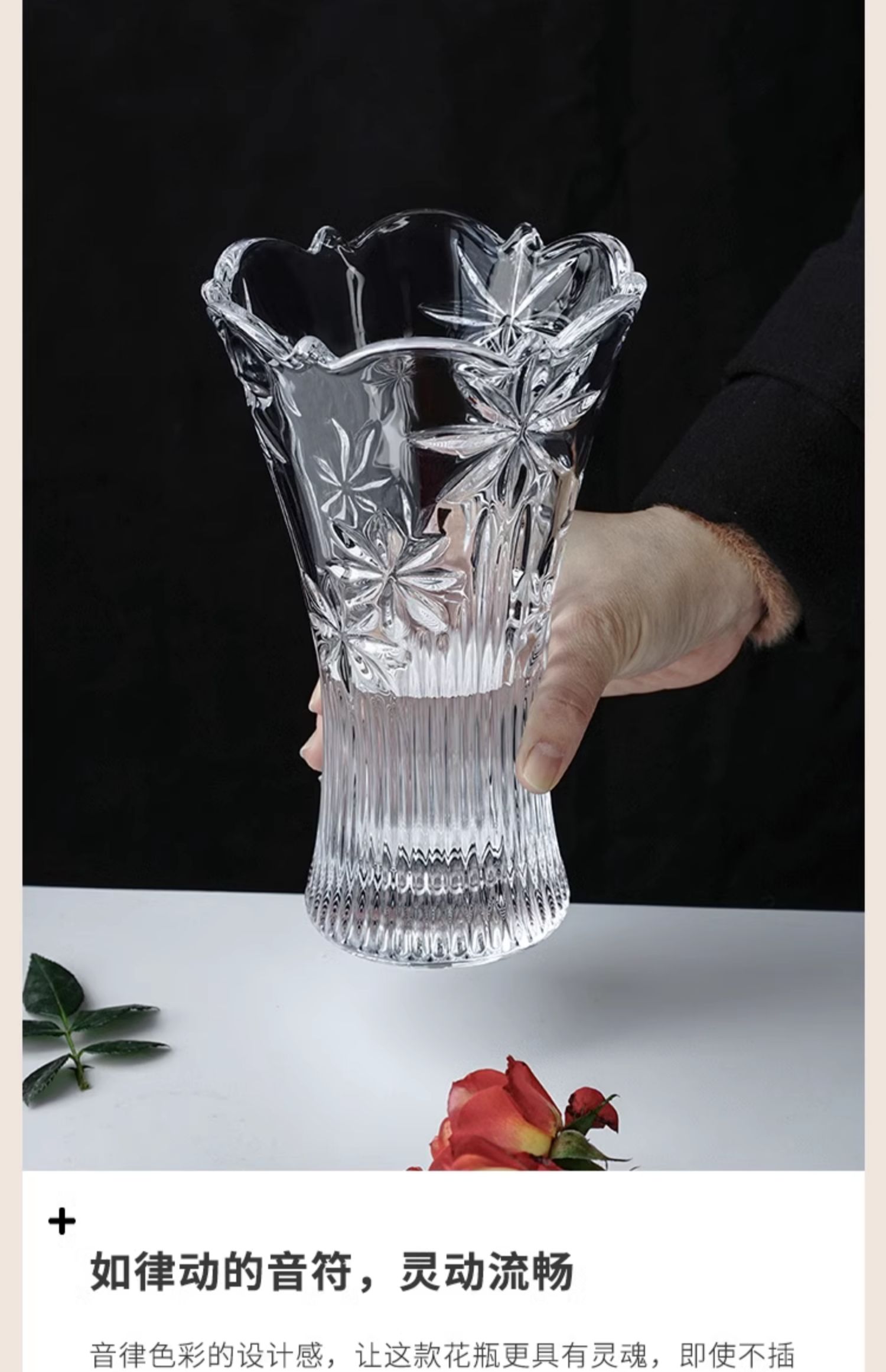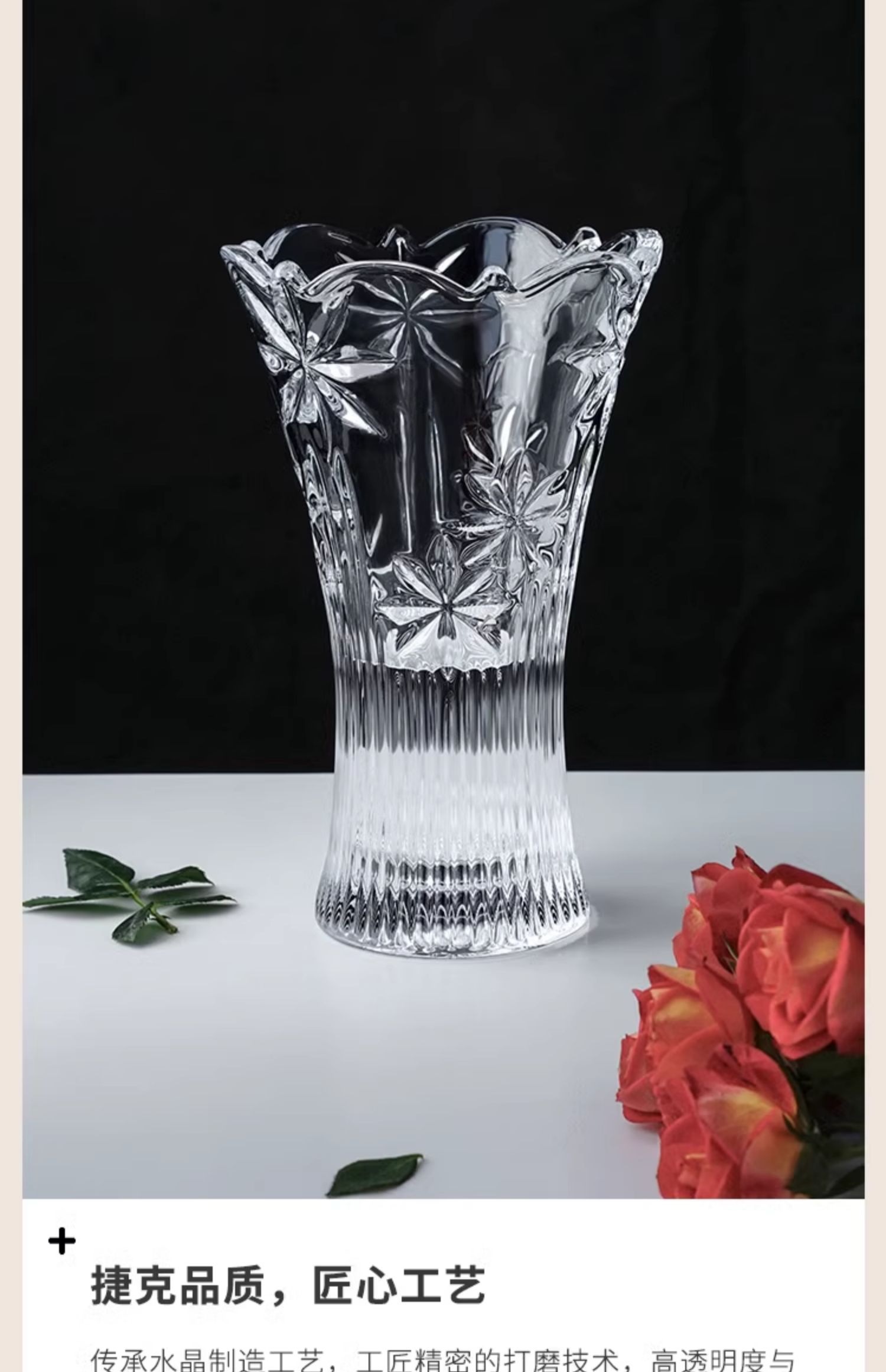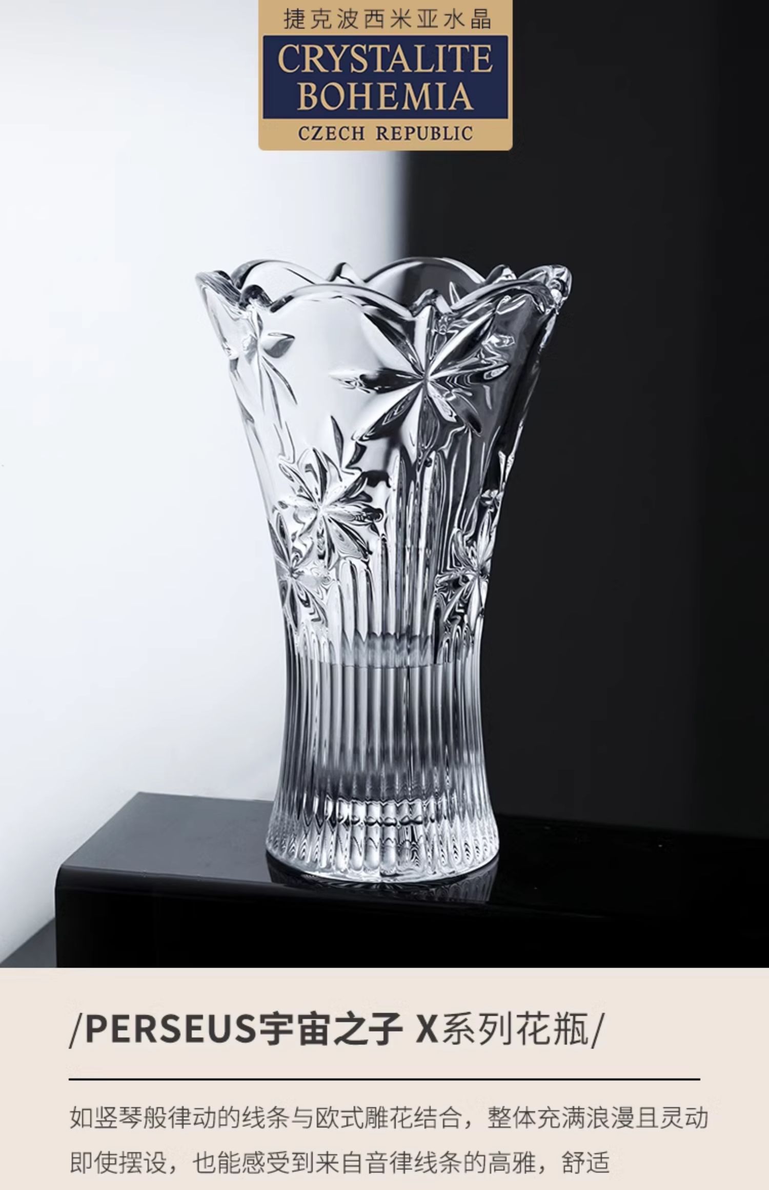 【清仓特惠5折,仅1件,无货退款】BOHEMIA捷克原装进口水晶玻璃花瓶 经典刻花欧式台面花瓶家居摆件