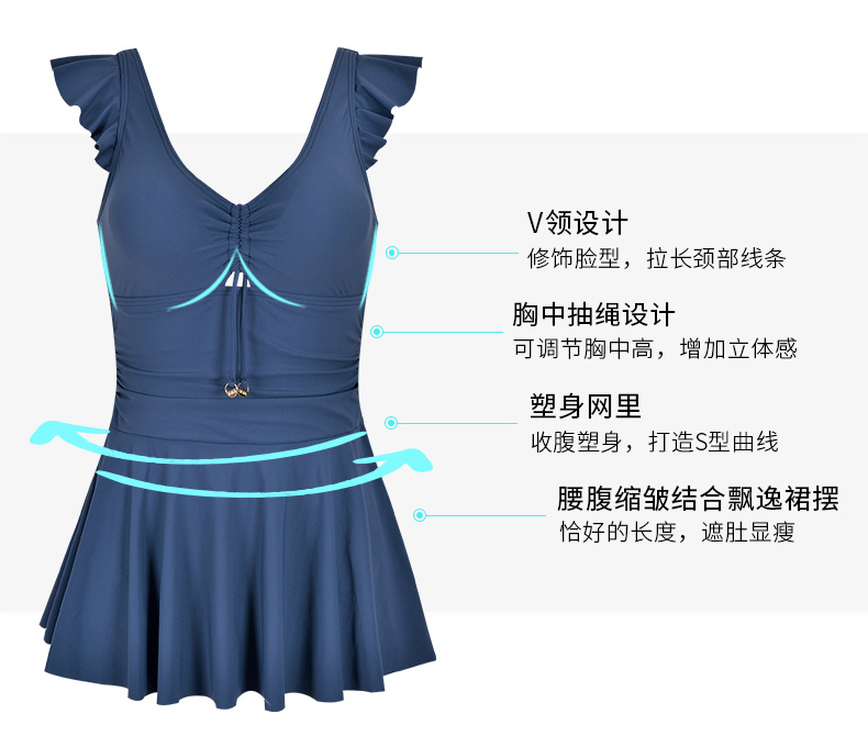 | 款式: 裙式连体泳衣 | 是否带钢托带胸垫: 带胸垫无钢托 |