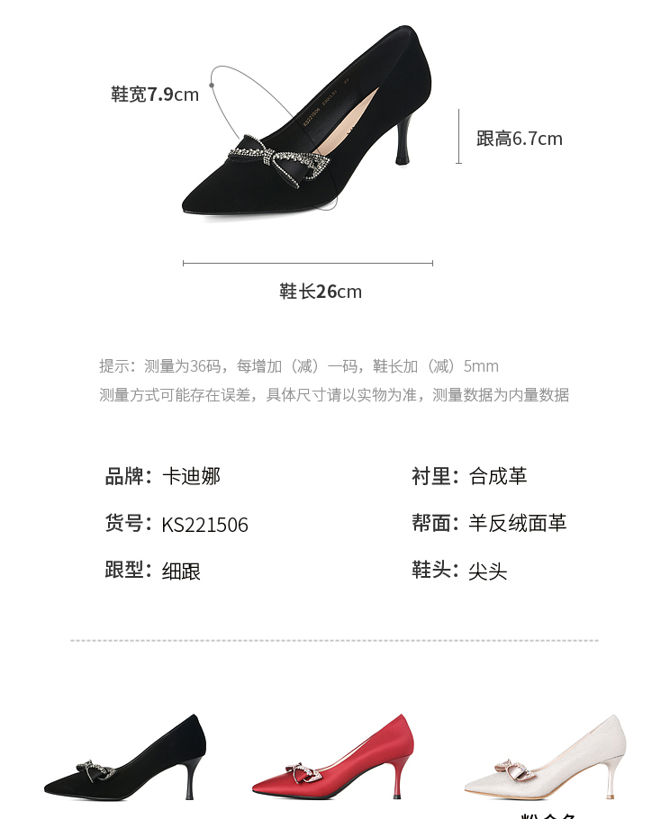 卡迪娜2022年春季新款尖头细跟时装鞋单鞋女KS221506