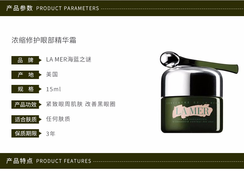商品名称: 香港直邮 LA MER 海蓝之谜 浓缩修护眼部精华霜 15ML