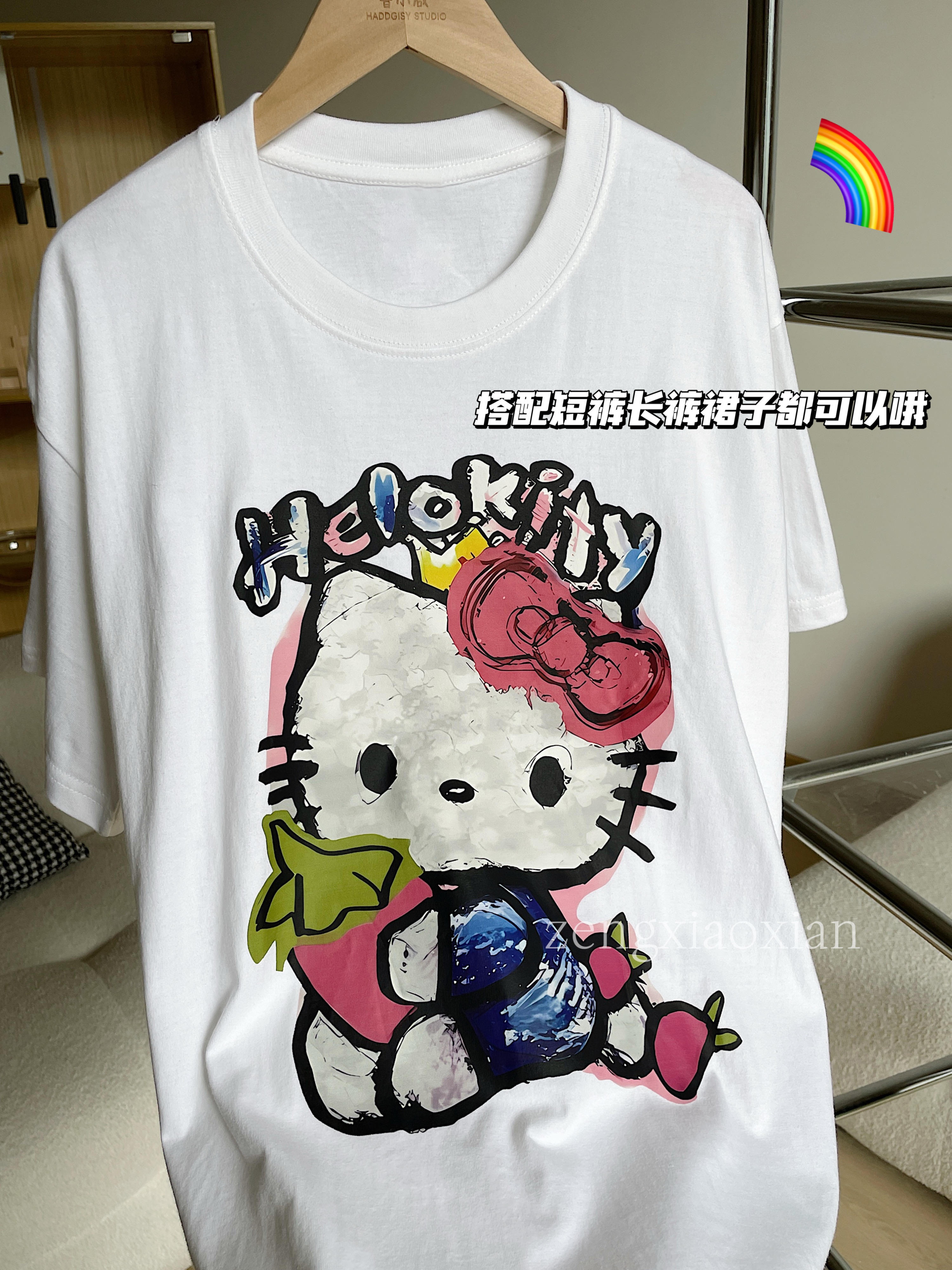 <曾小咸推荐>3.29 Kitty猫印花纯棉短袖 日常109!!前600单活动价49 !!【预售款,预计3-15天发货】