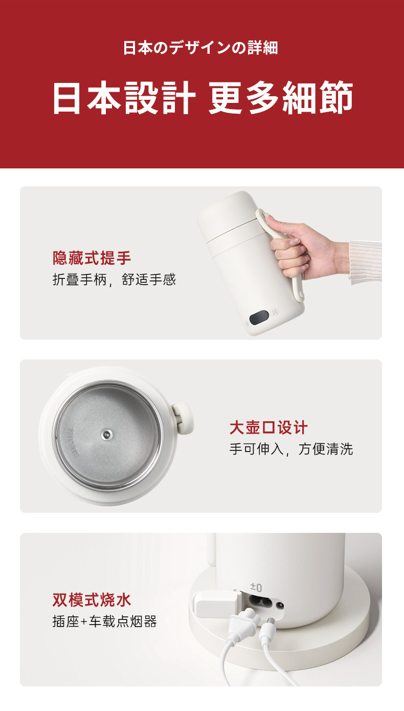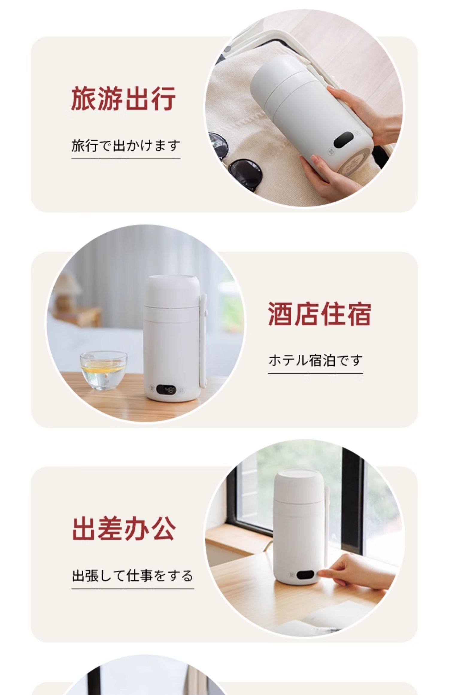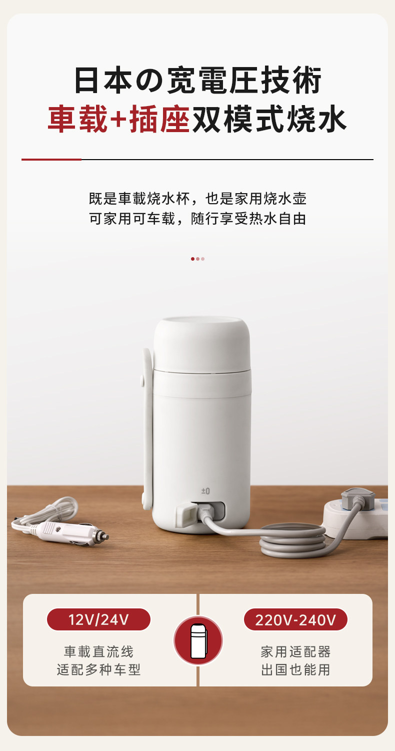 【日本车载烧水杯】日本正负零烧水杯车载便携式烧水壶户外煮水壶旅行烧水杯小电热杯