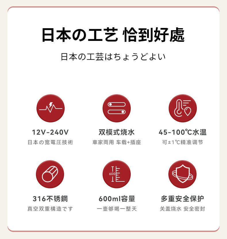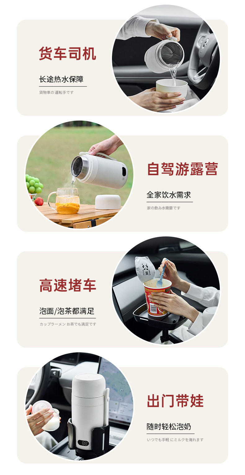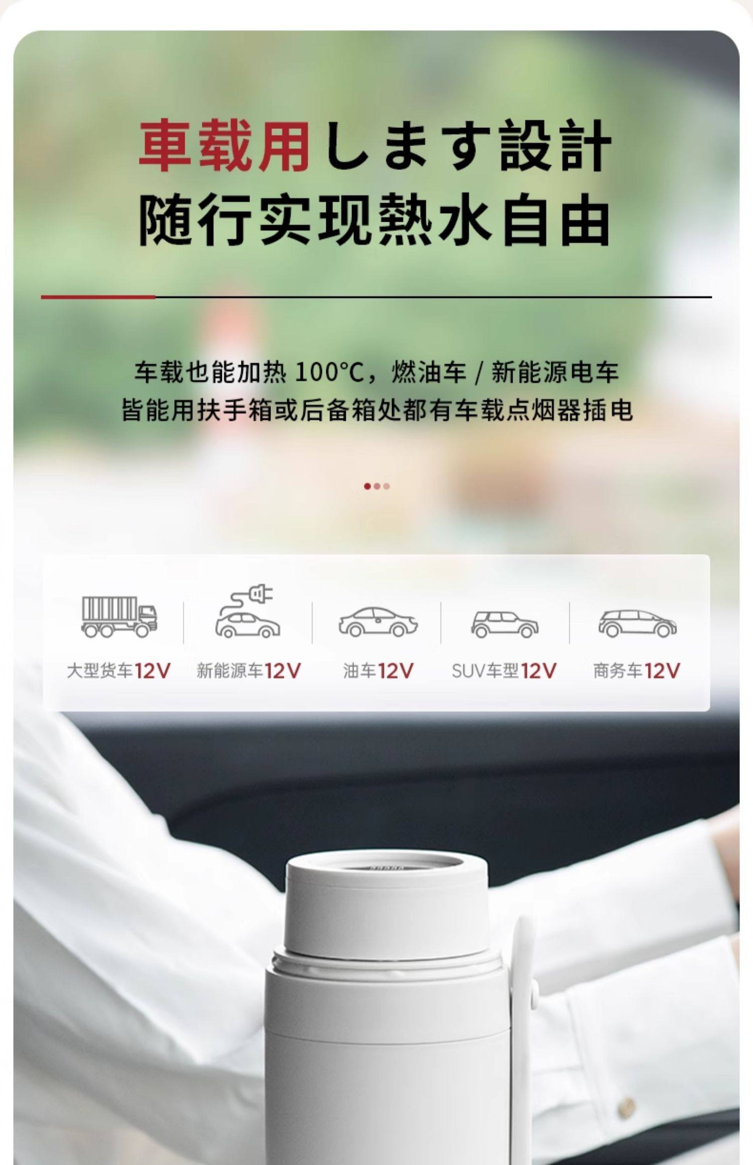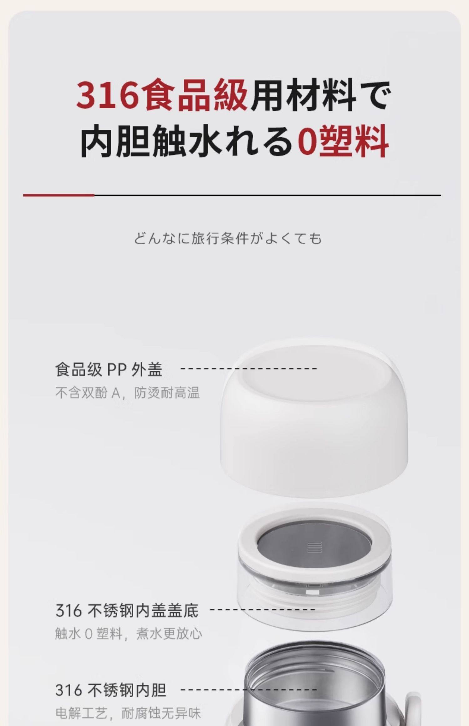 【日本车载烧水杯】日本正负零烧水杯车载便携式烧水壶户外煮水壶旅行烧水杯小电热杯