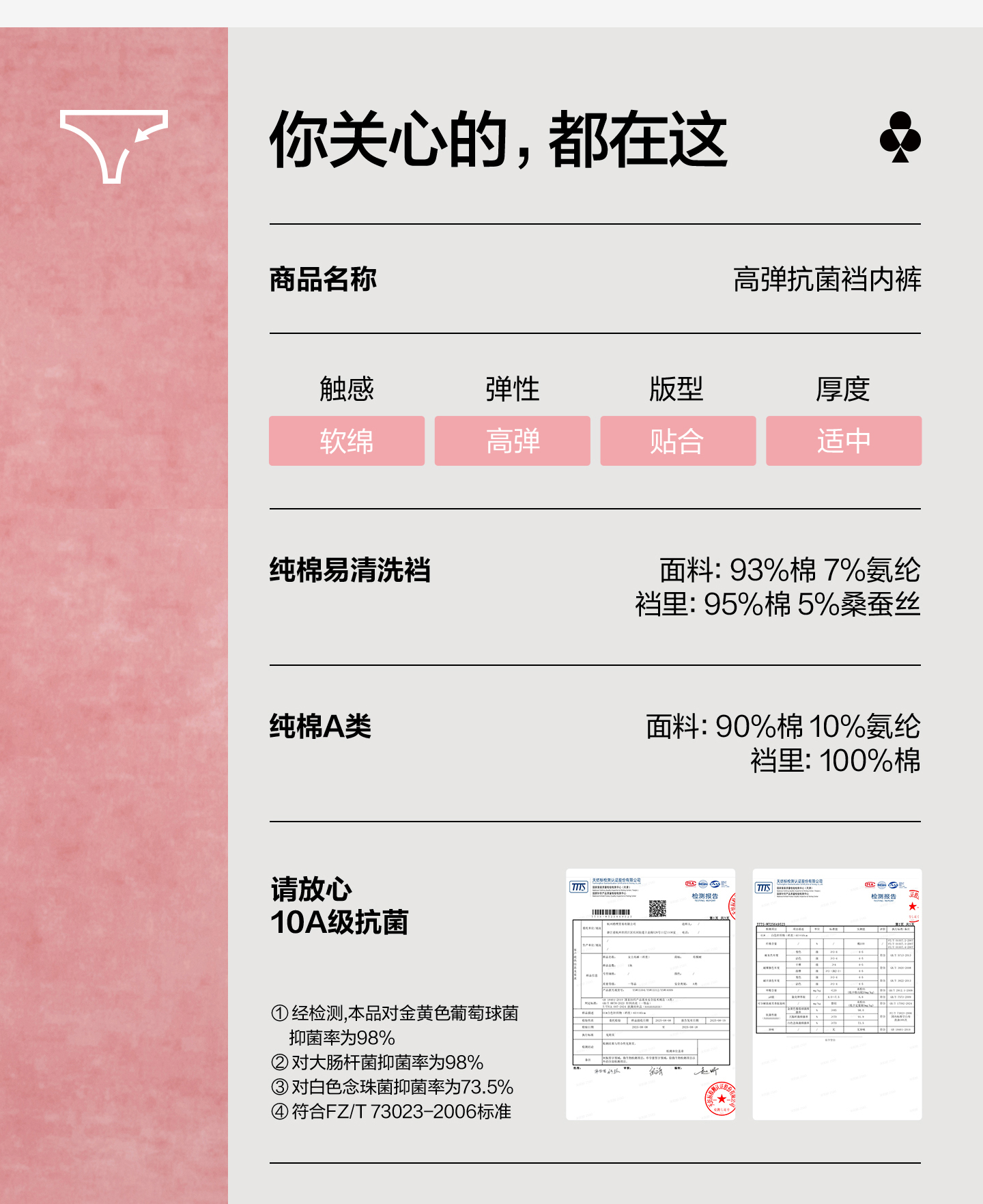 【新品上新】【桑蚕丝易净裆】有棵树10A抗菌纯棉裆中腰女士三角内裤4条装-4009C