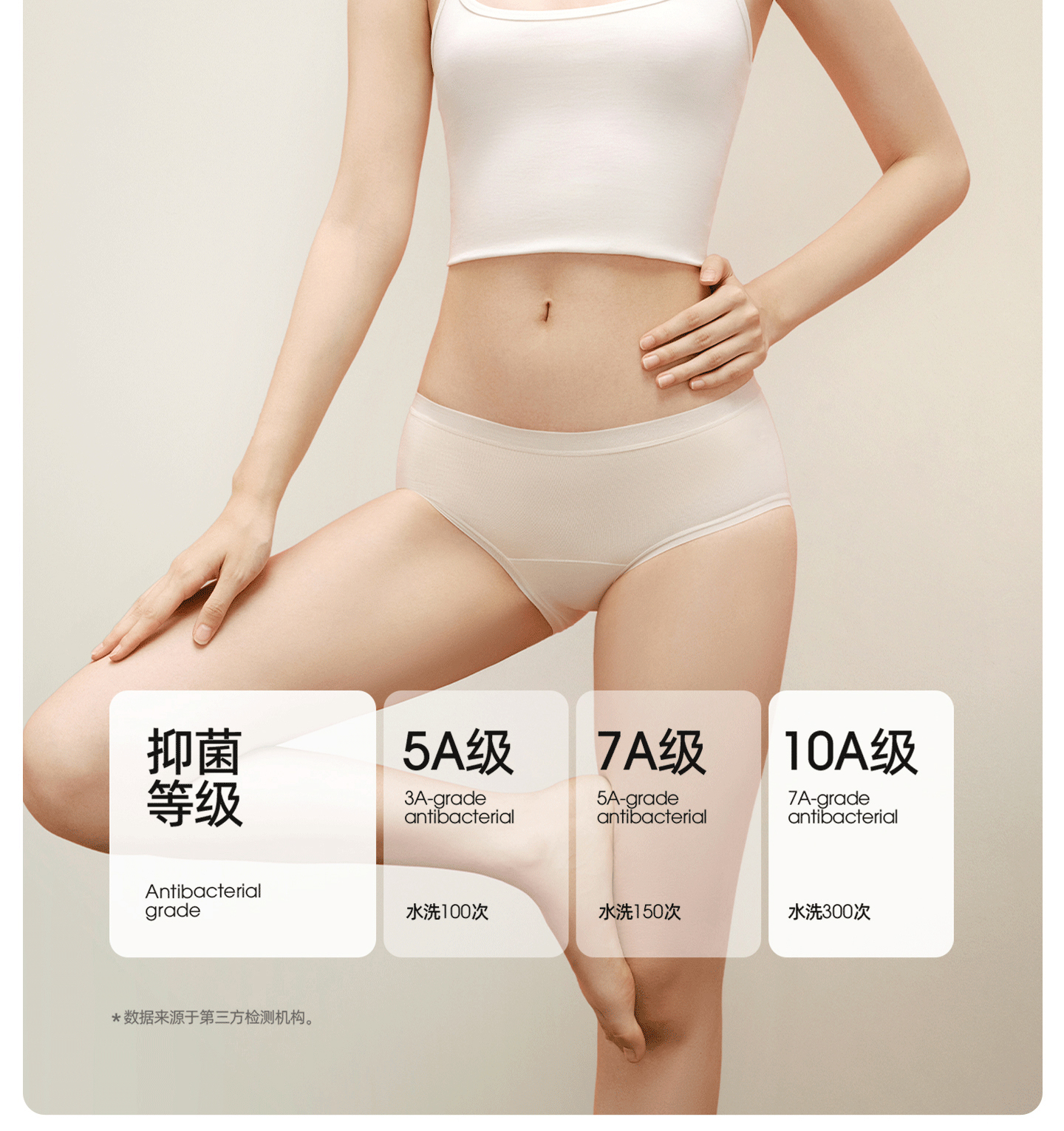 有棵树10A抗菌纯棉裆中腰女士三角内裤4条装-4009C