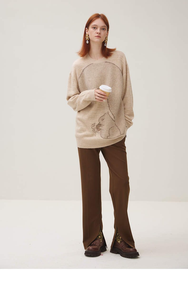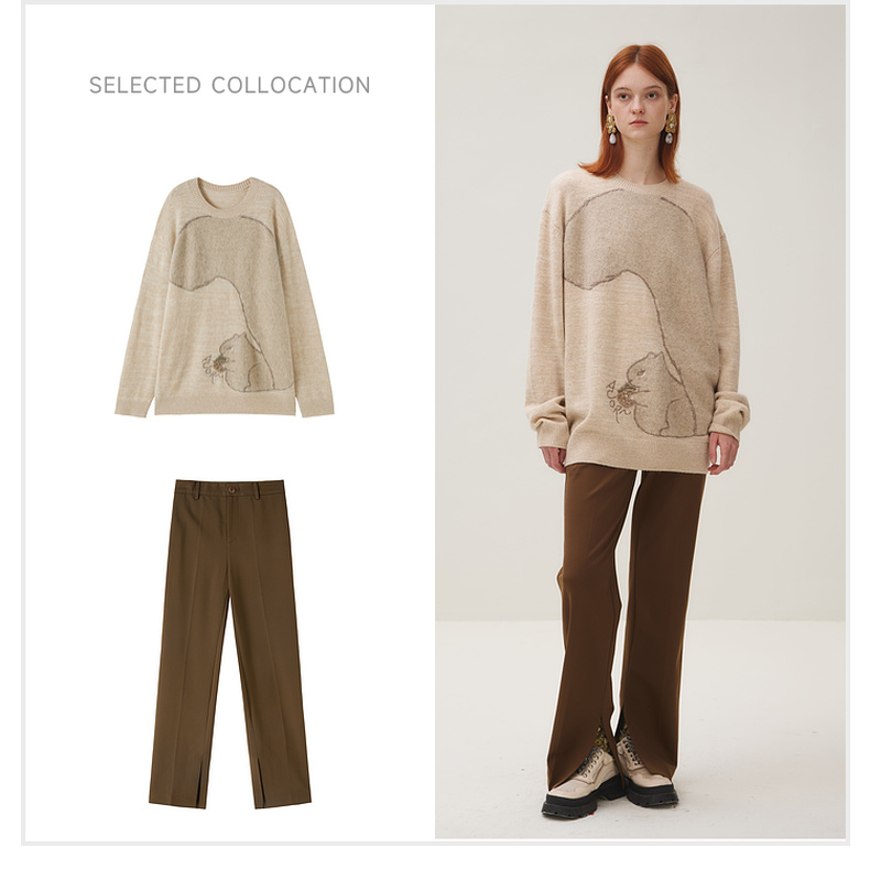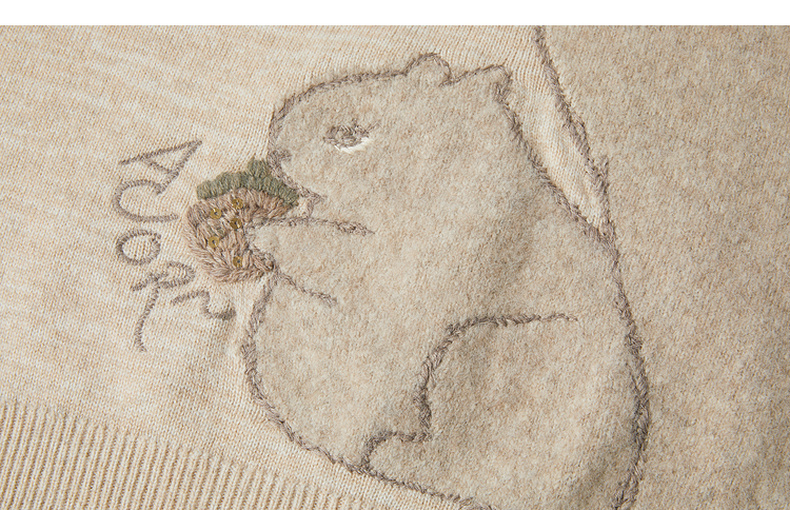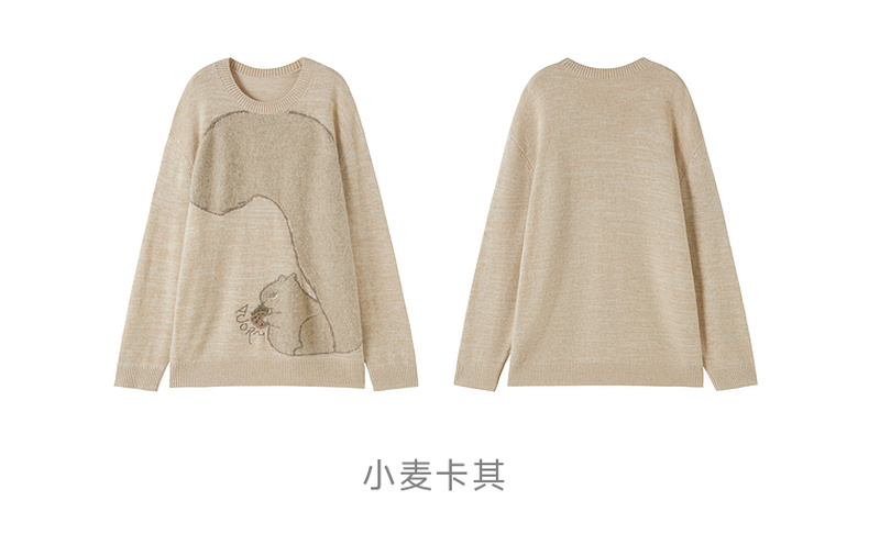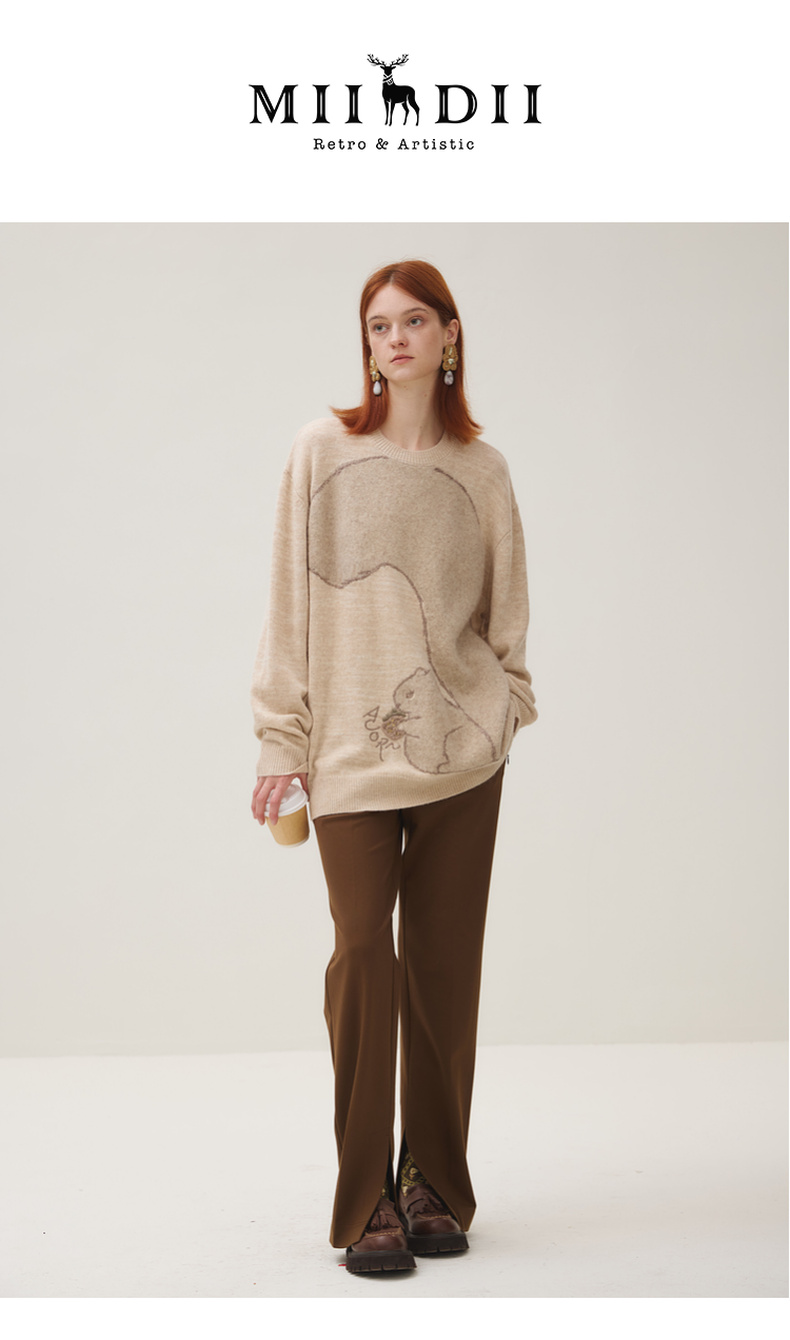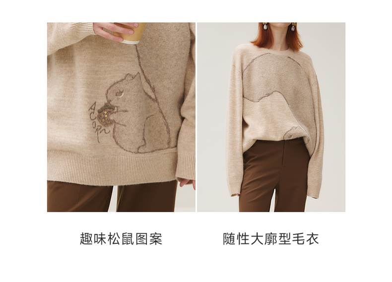 谜底圆领套头针织衫女2025秋季新品原创松鼠纹提花毛衣253MZ1327