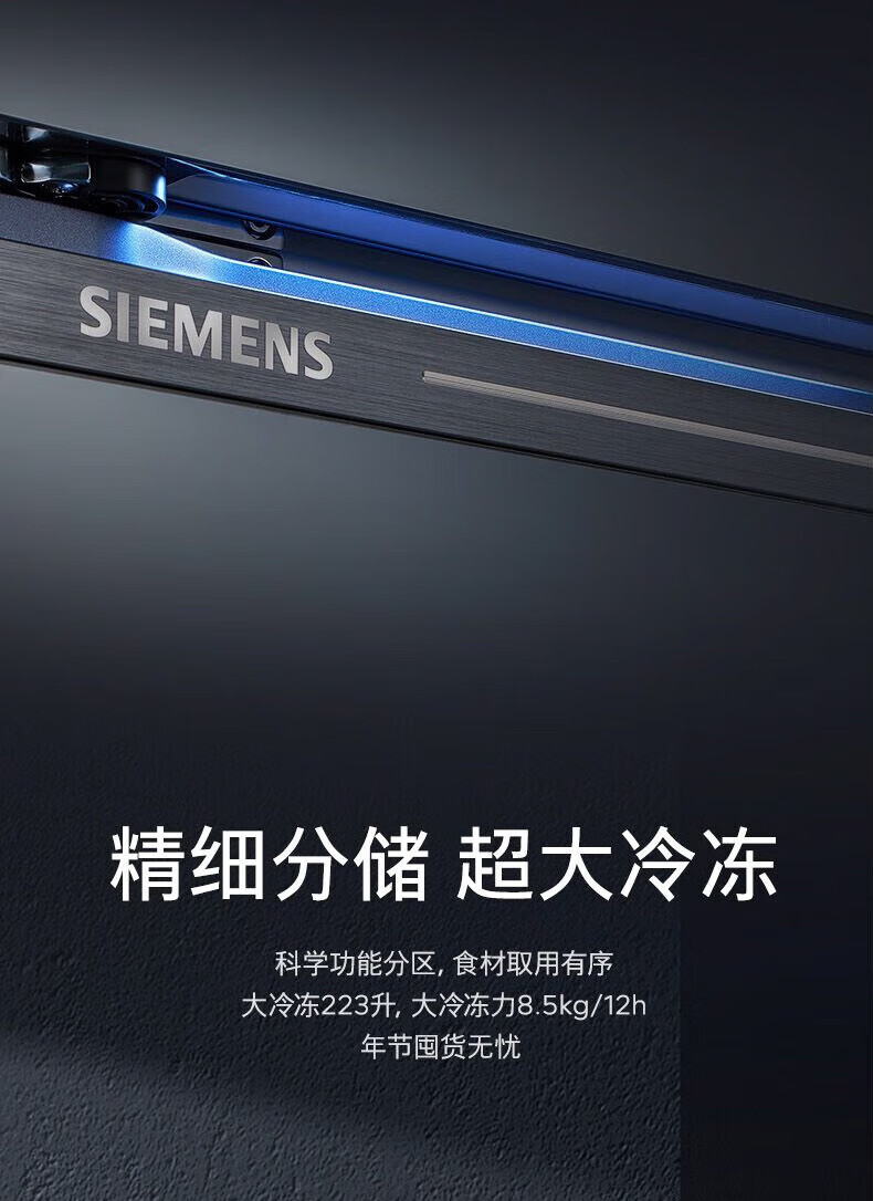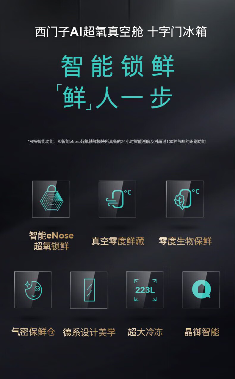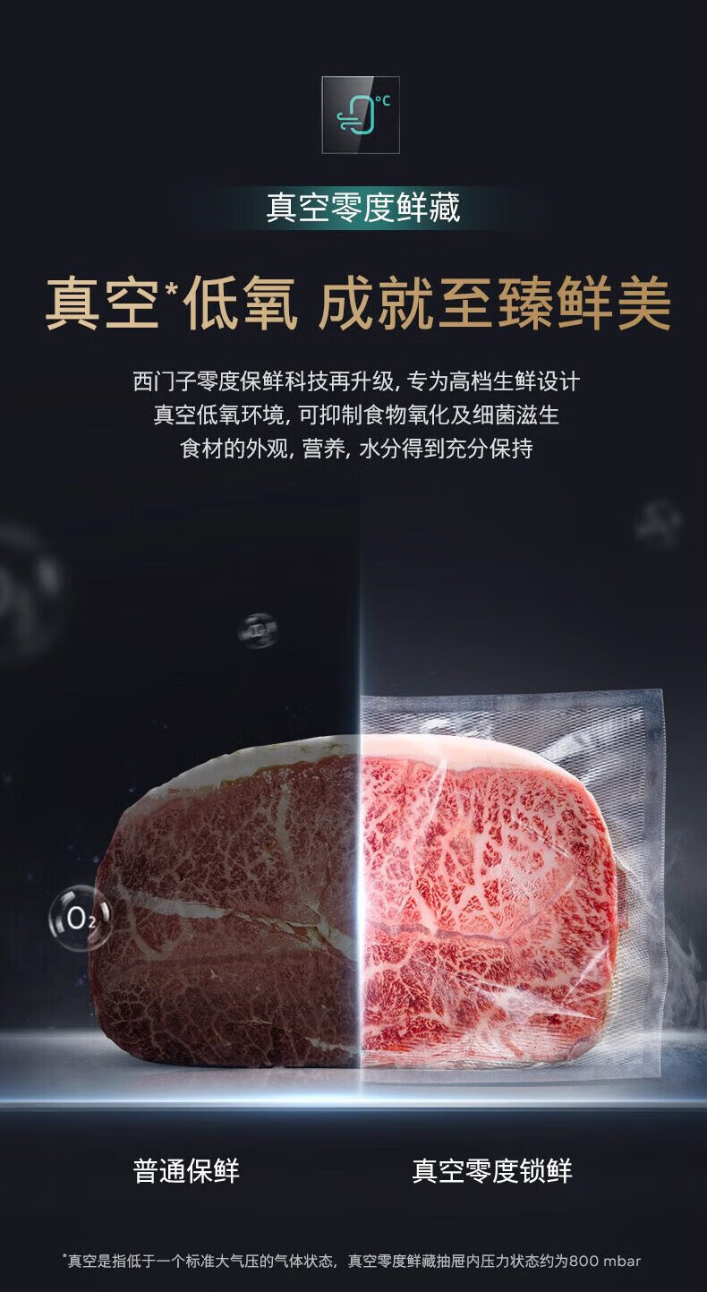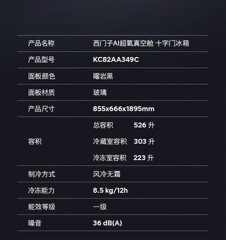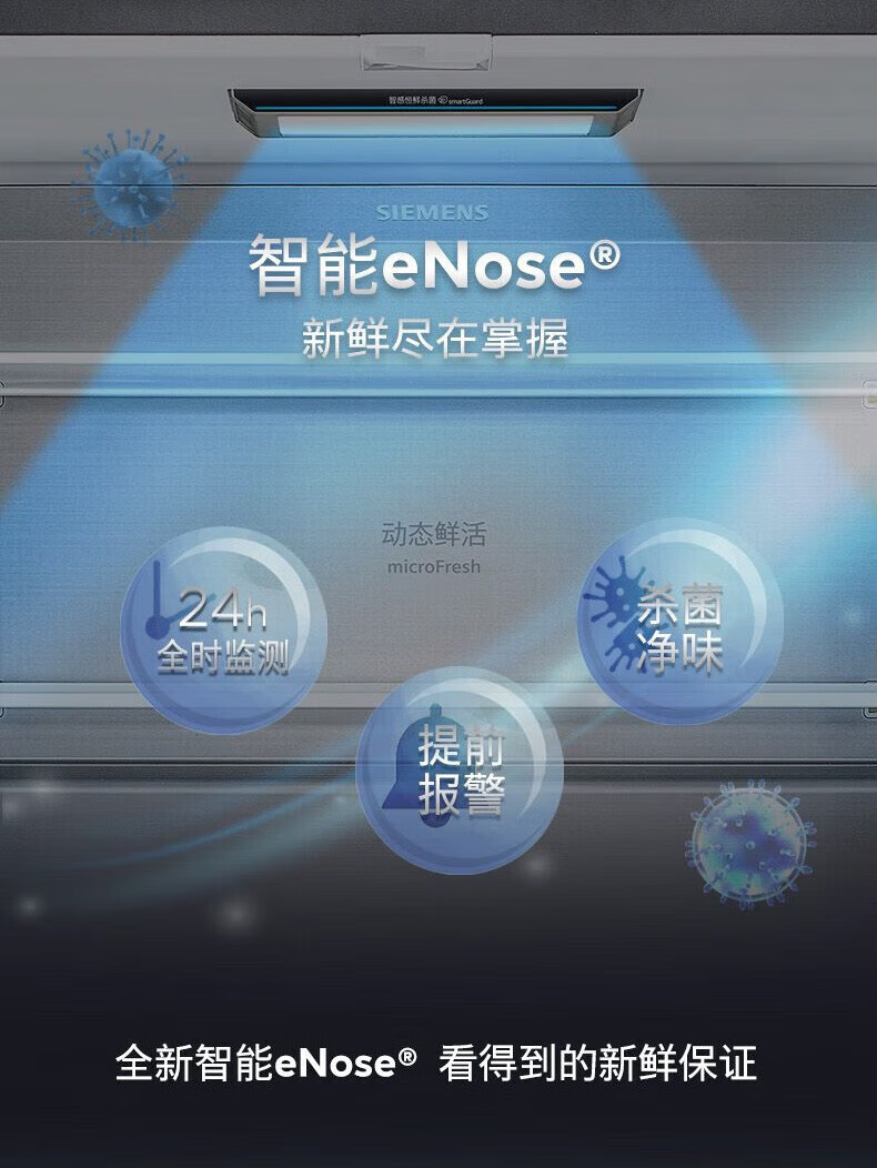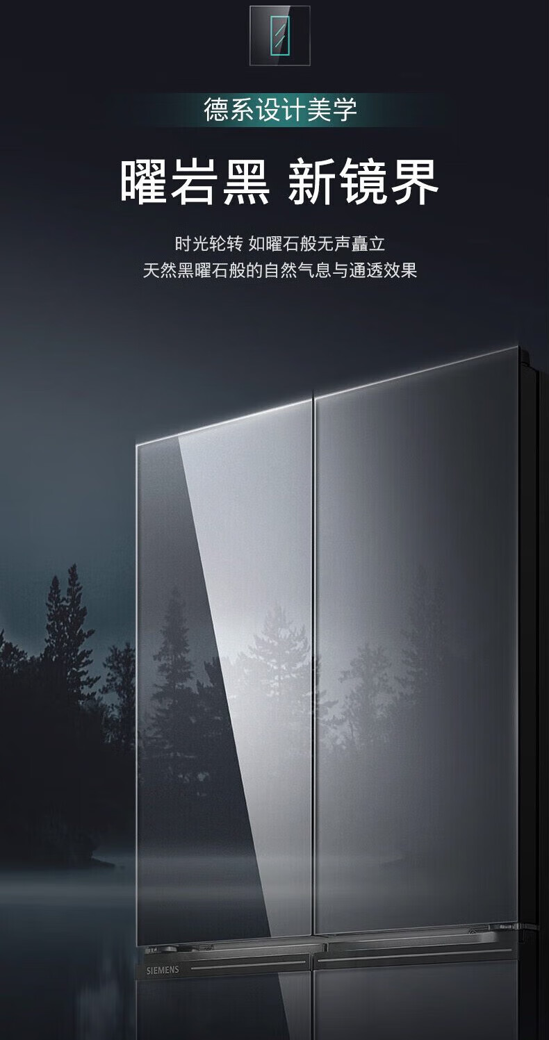西门子(SIEMENS)526L十字对开门冰箱eNose超氧 真空零度保鲜 一级能效 KC82AA349C玻璃面板 曜岩黑