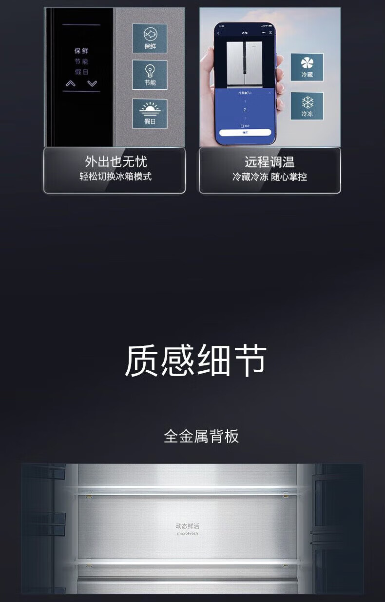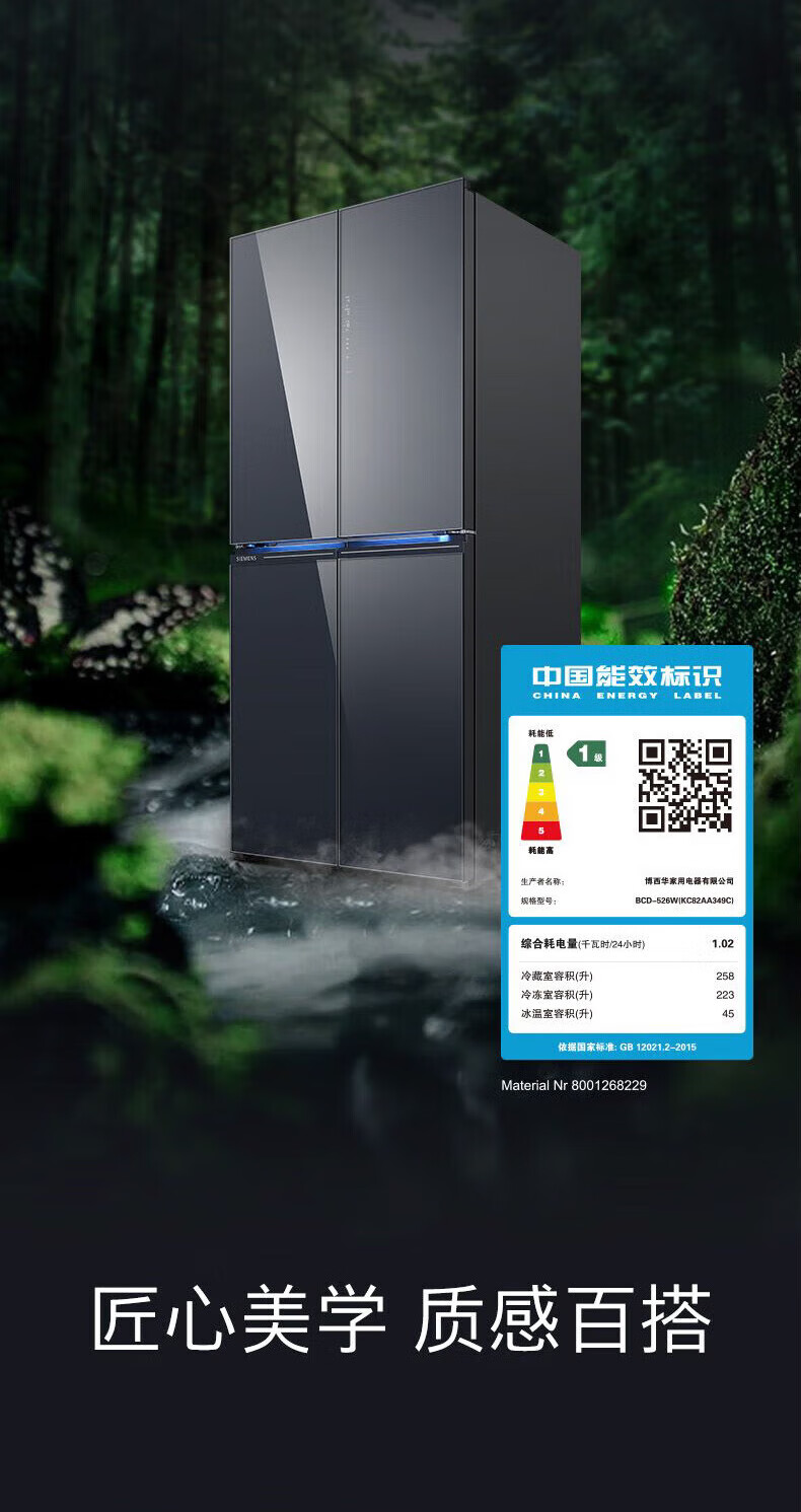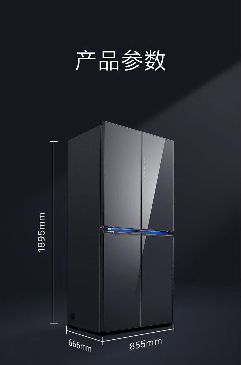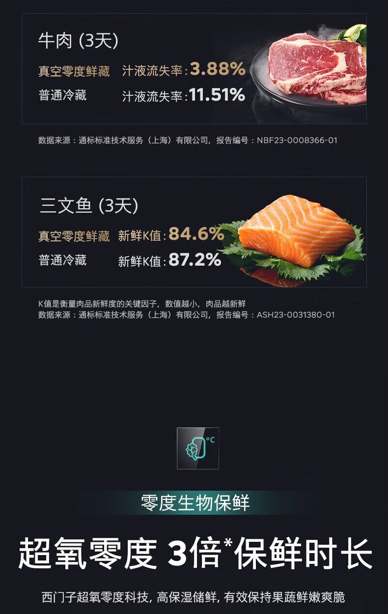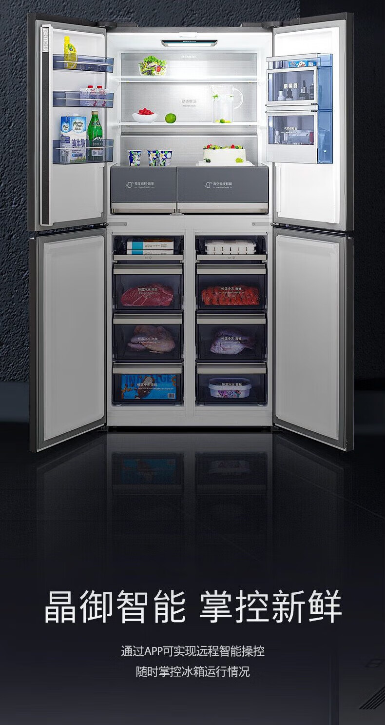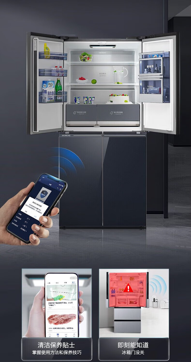 西门子(SIEMENS)526L十字对开门冰箱eNose超氧 真空零度保鲜 一级能效 KC82AA349C玻璃面板 曜岩黑