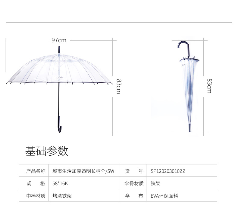 【10号清凉购直播间特价129任选4个】多样屋专柜城市生活加厚透明长柄伞雨伞/SW