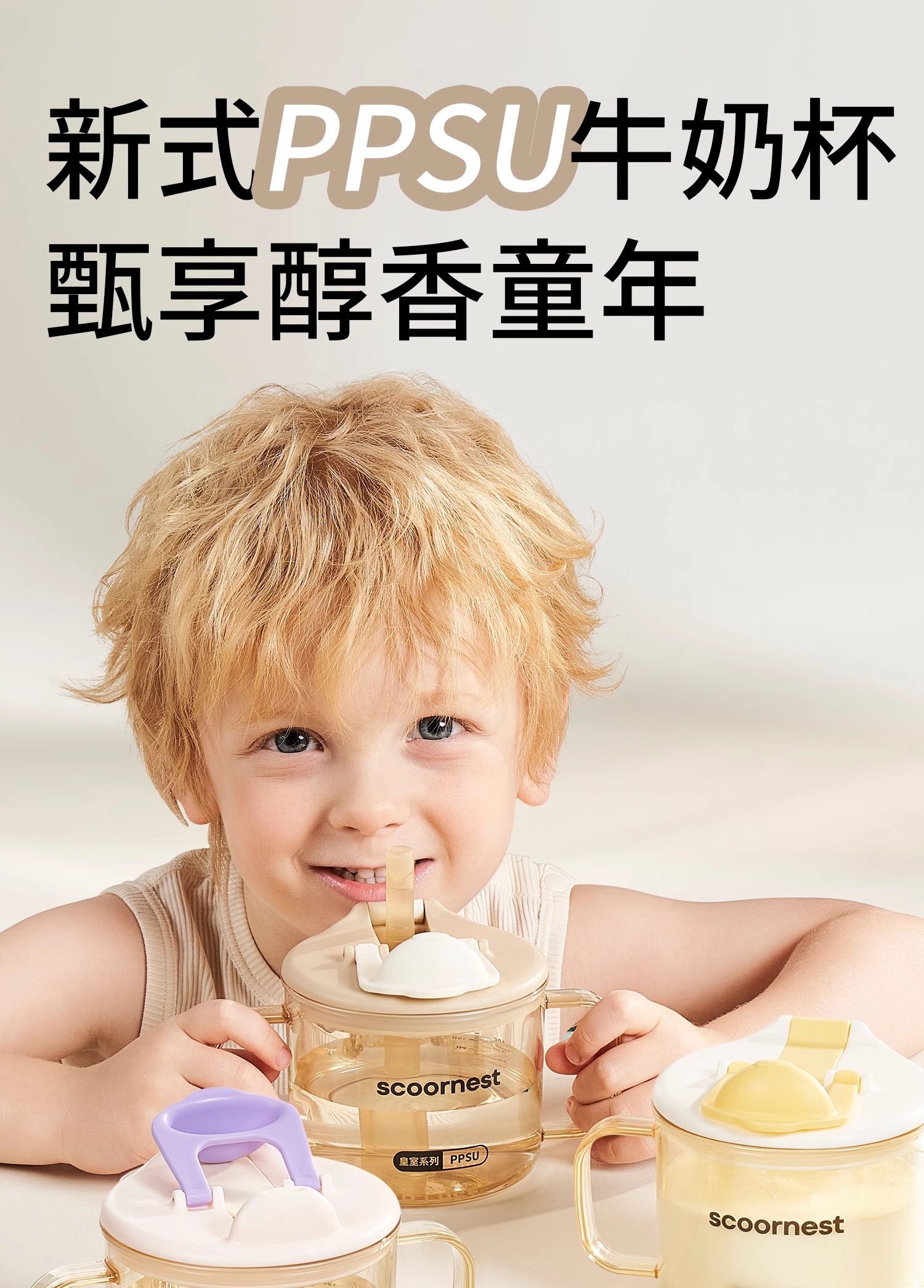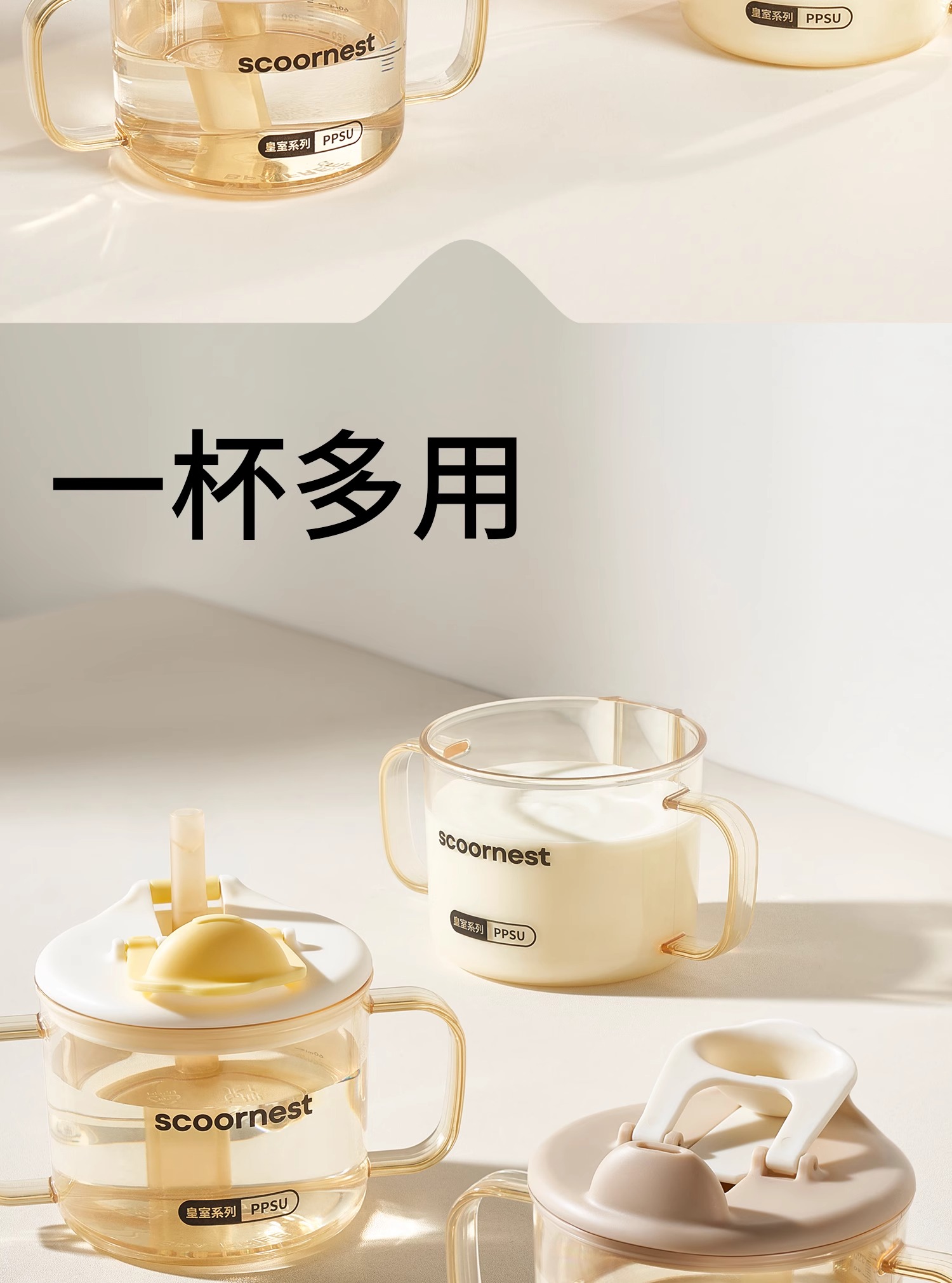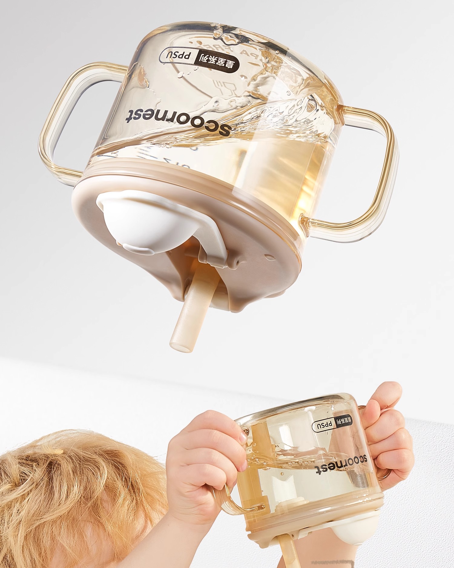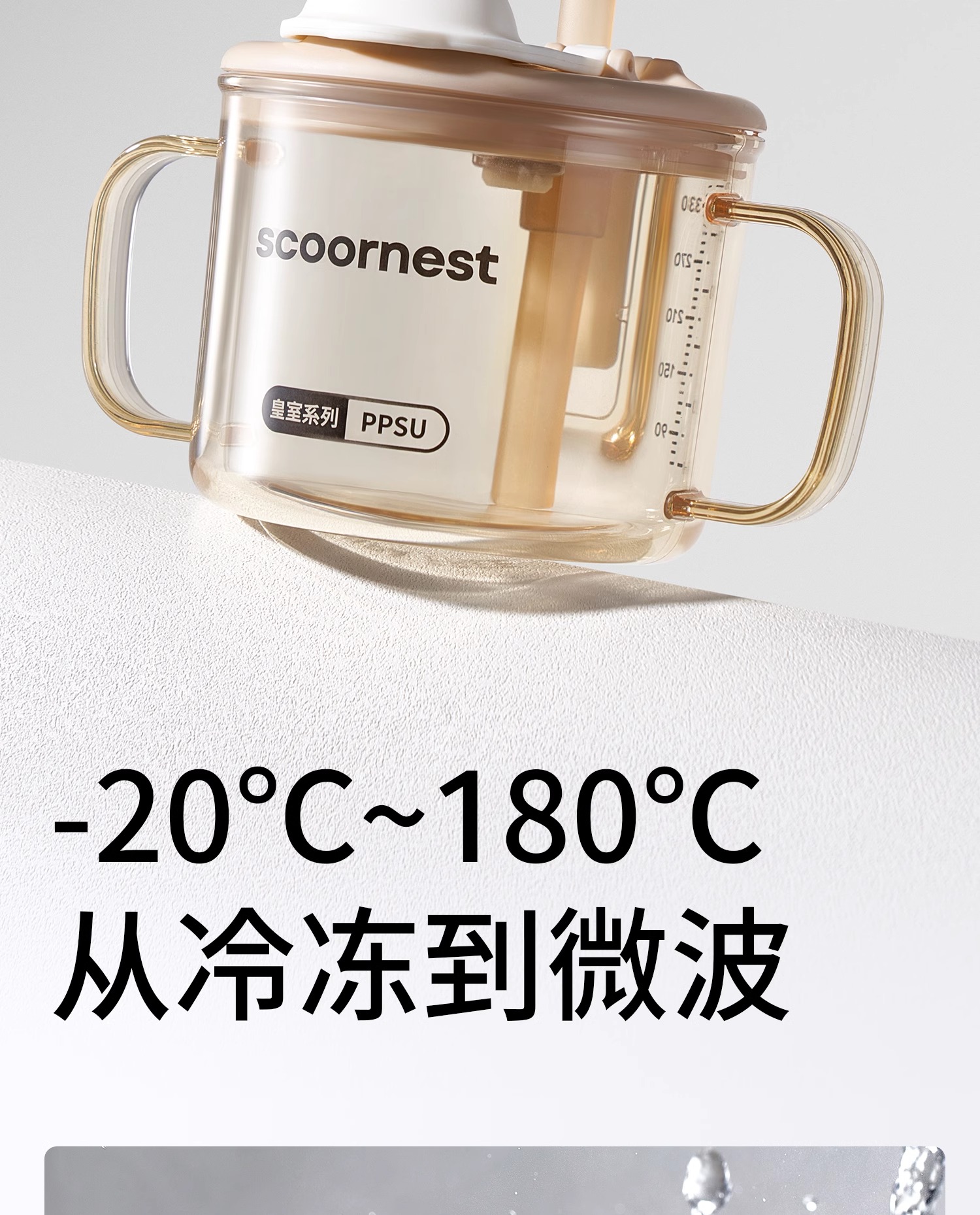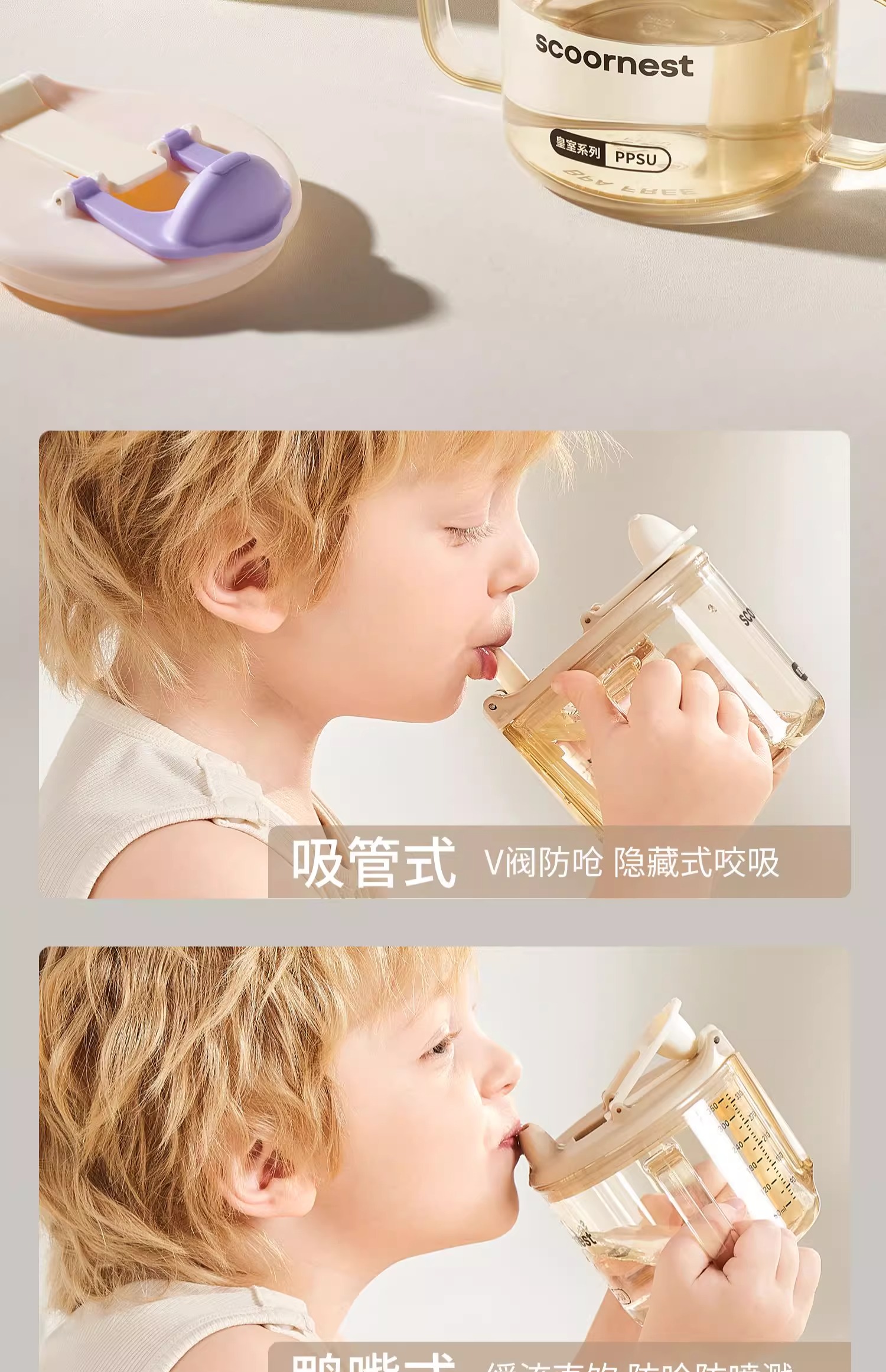 科巢儿童水杯牛奶杯1-2-3岁以上宝宝吸管奶瓶刻度PPSU防摔学饮杯