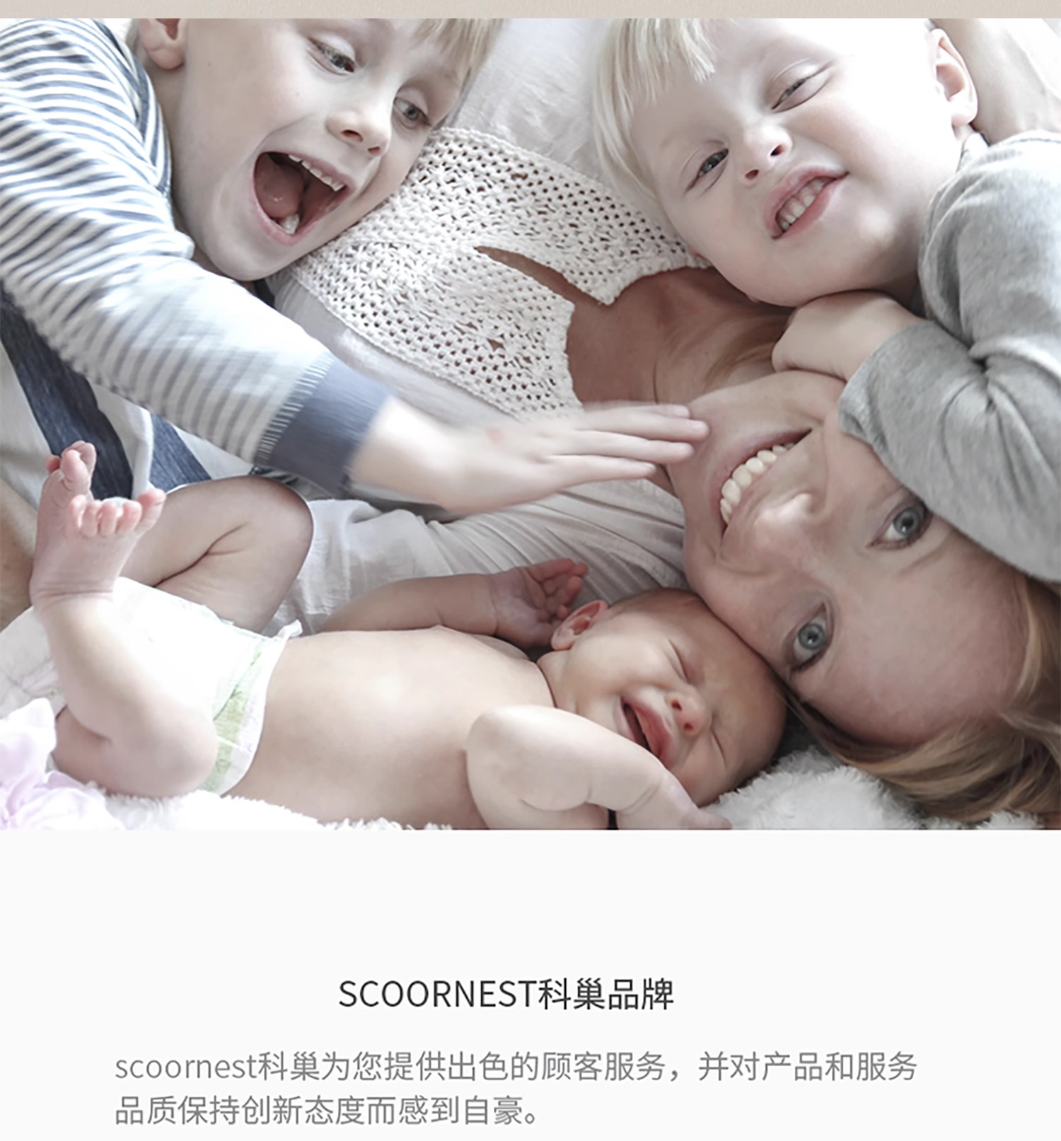 - Scoornest始终秉承给每一位宝宝送去科学的、关心的、创新的成长体验,通过提供商品和服务,使顾客形成守护、发展、巩固这种弥足珍贵的亲情的爱。