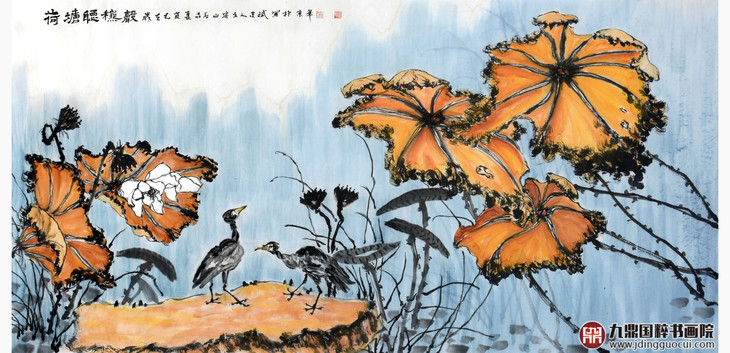 徐建斌《荷塘听秋声》68*138cm 花鸟横幅作品 卧室/书房挂画