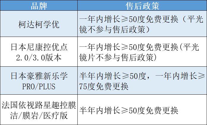 🔴保险协议:四款主流防控近视镜片售后政策如下