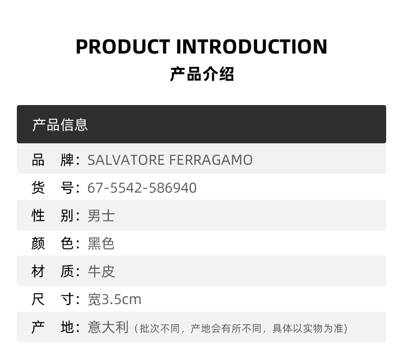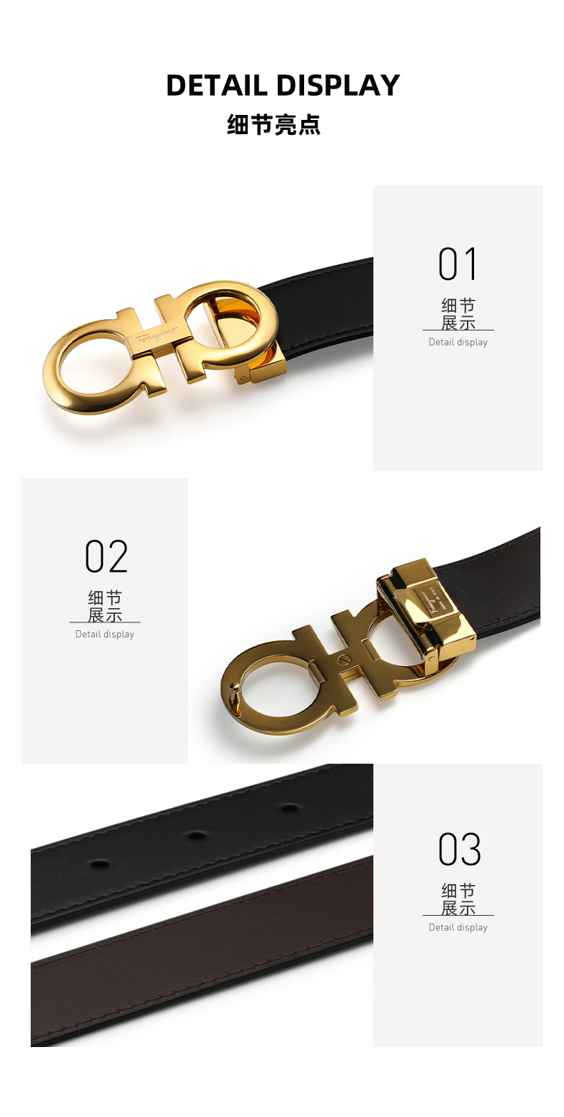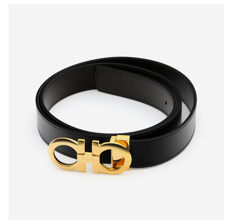 SALVATORE FERRAGAMO 男士黑色时尚金扣皮革腰带 67-5542-586940