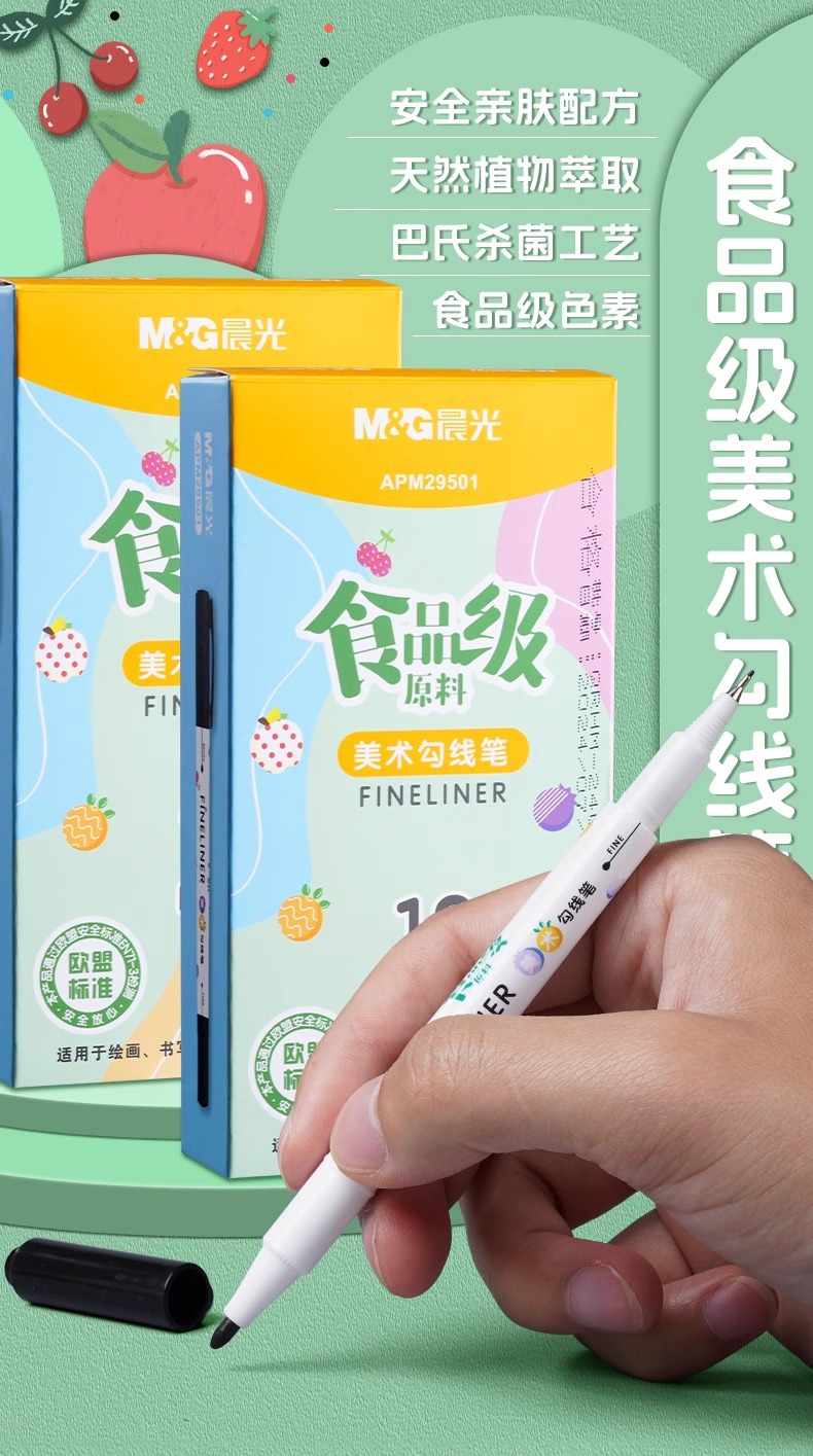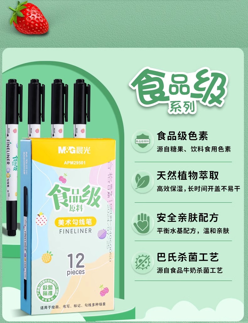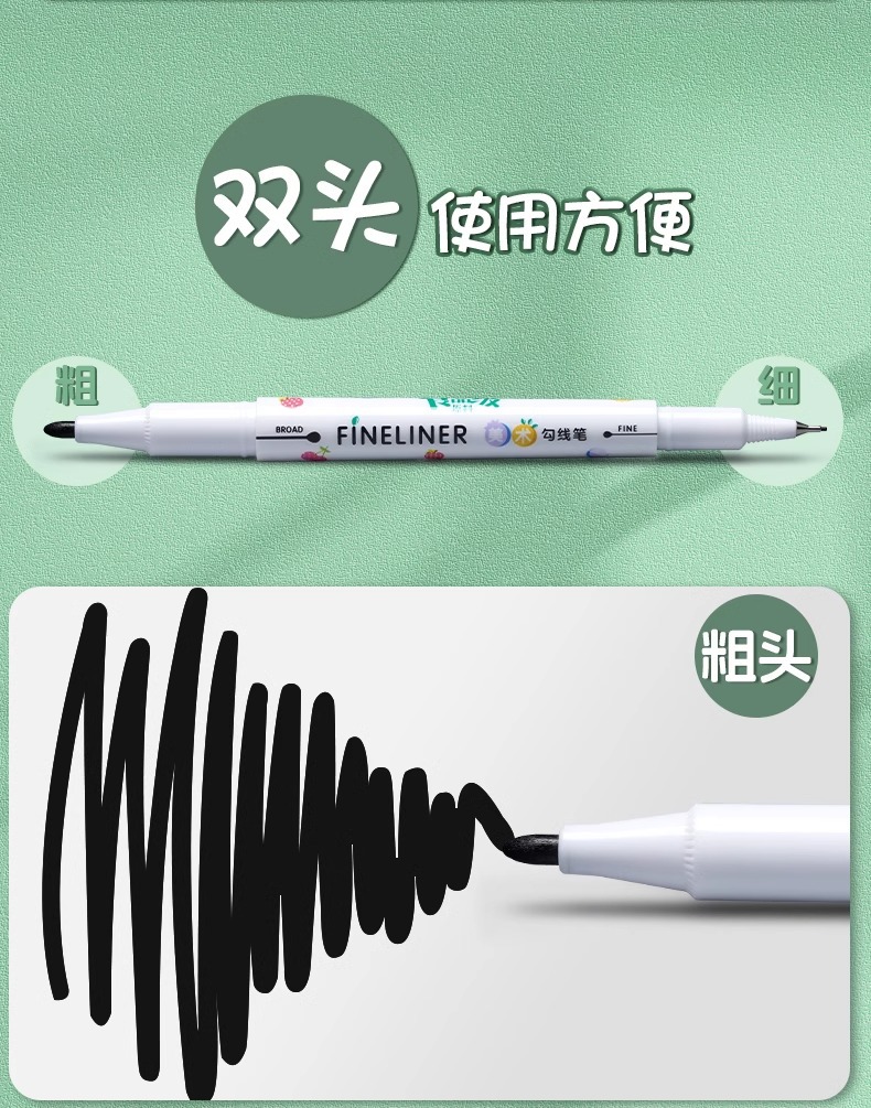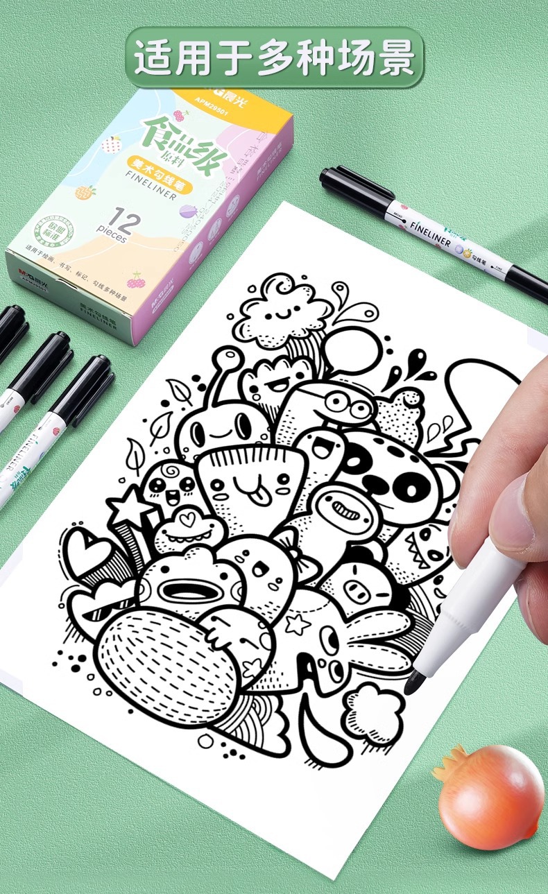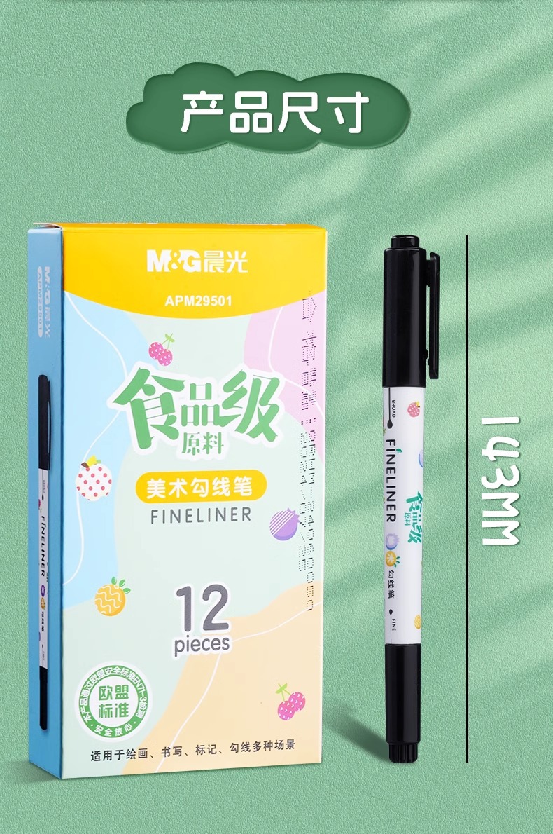 【开学必备!12支/盒】晨光29501特黑双头描绘笔 食品级勾线笔 小学生美术描边笔记号笔文具
