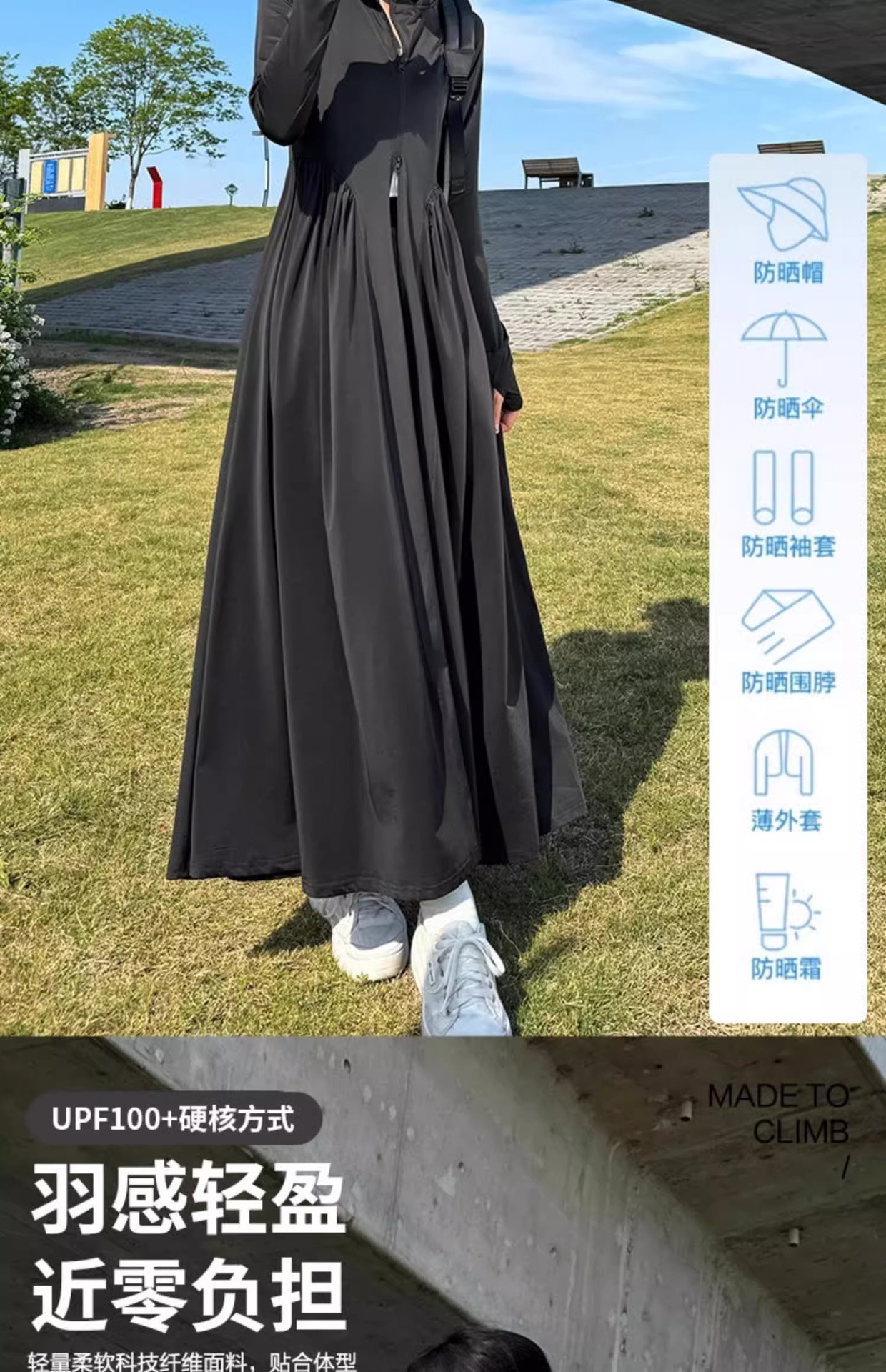 【夏日防晒C位出道🔥】2025新款长裙☀️UPF50+防紫外线💨轻薄透气显瘦!穿上它,凉爽如风般自在🍃全身长款防晒衣 2025夏新款修身大裙摆 户外原纱型防紫外线防晒长裙