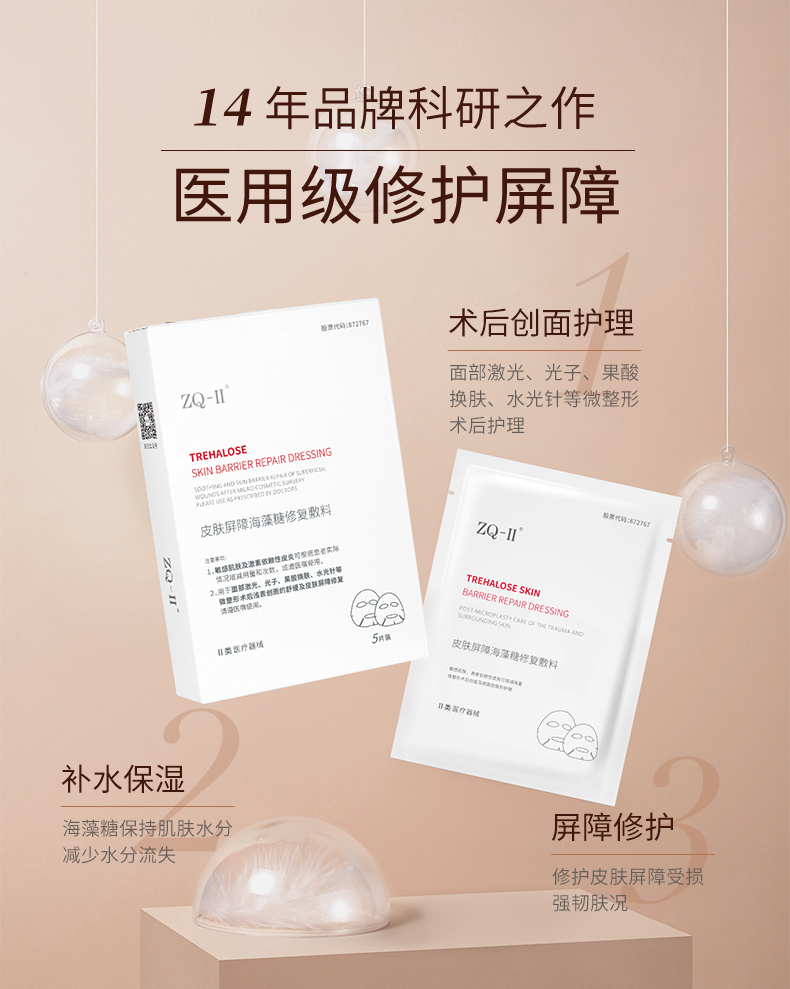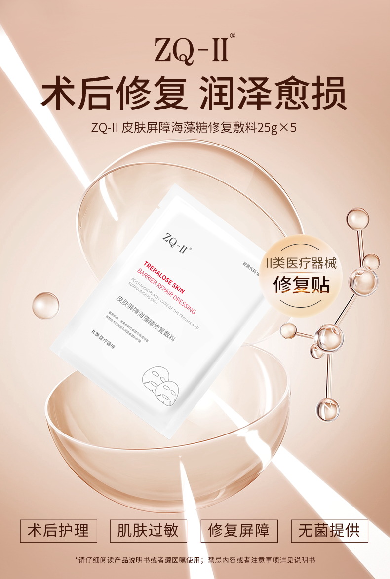 【品牌直营】ZQ-II再启皮肤屏障海藻糖修复敷料 (面膜)补水保湿 术后创面护理 肌肤过敏 25g*5片