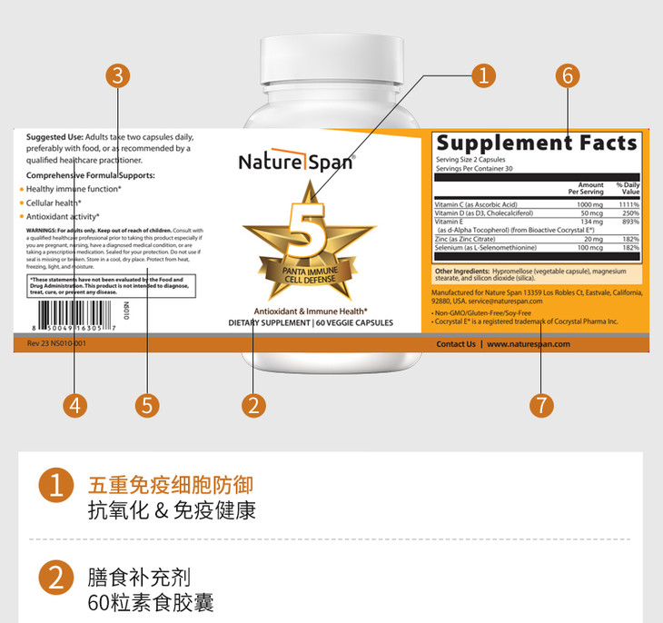 五重细胞免疫复合维生素补硒 美国原装进口胶囊60粒NS倍能适