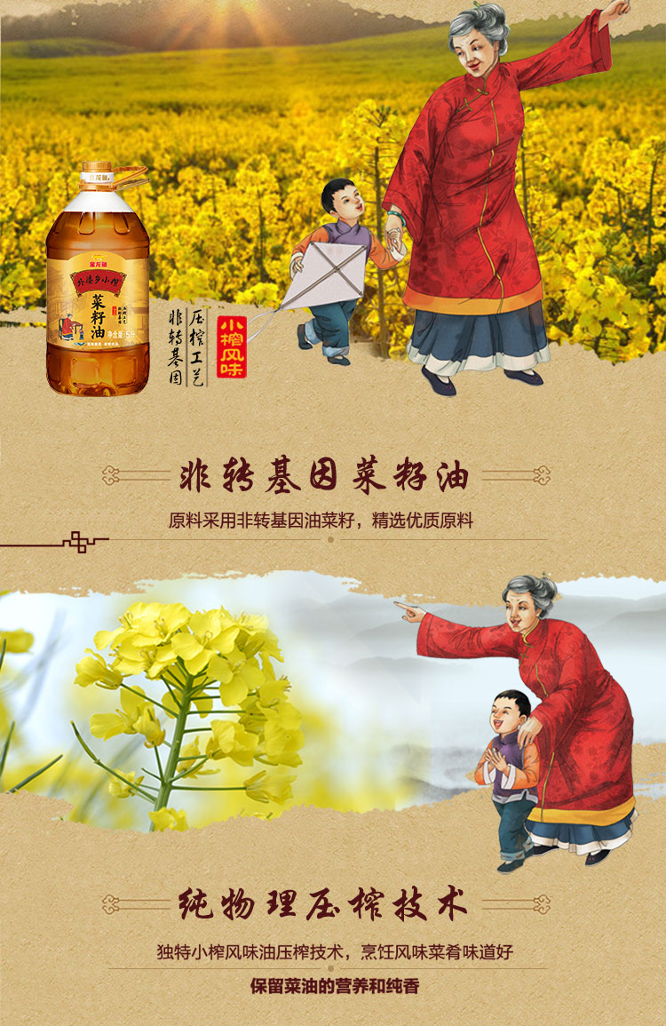【自营】金龙鱼外婆乡小榨匠心臻选菜籽油5L(非转基因)
