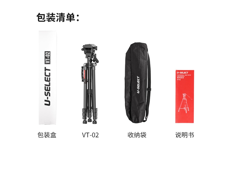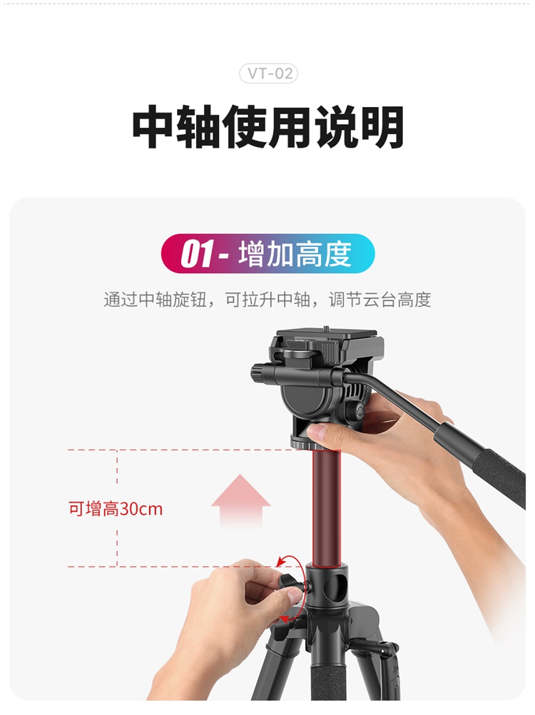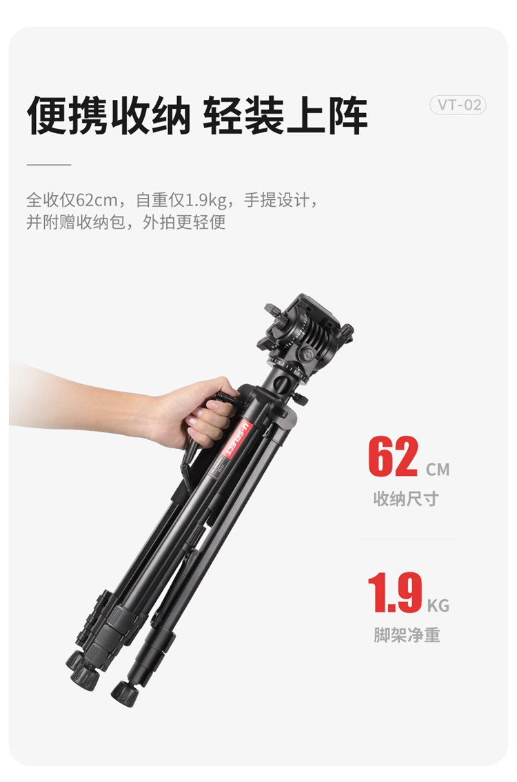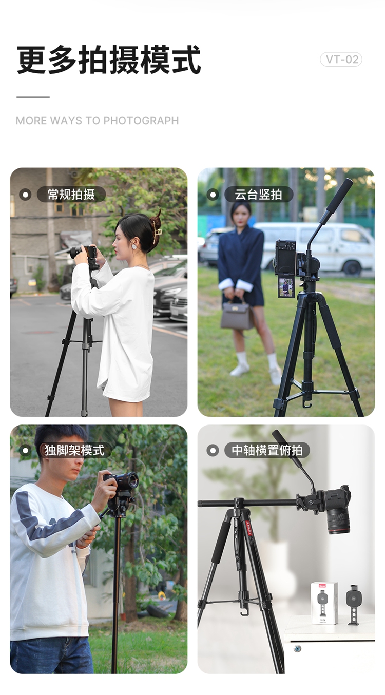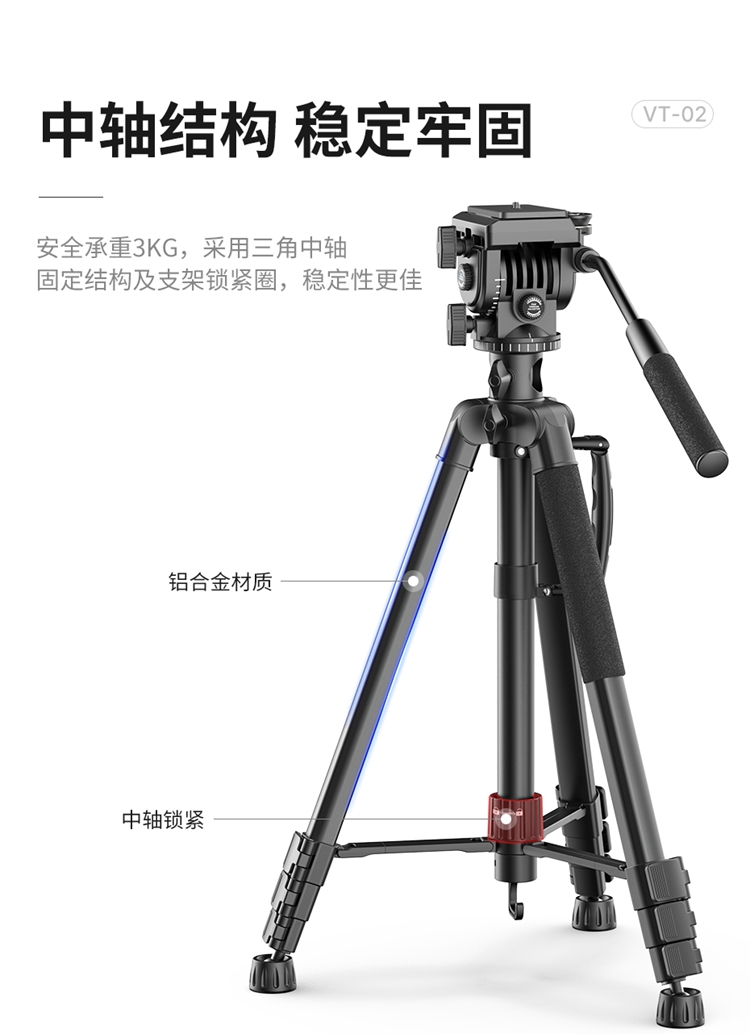 Ulanzi优篮子VT-02 相机单反支架金属中轴摄像三脚架专用户外便携拍摄视频录像稳定器液压云台多功能支撑架