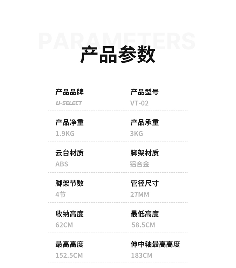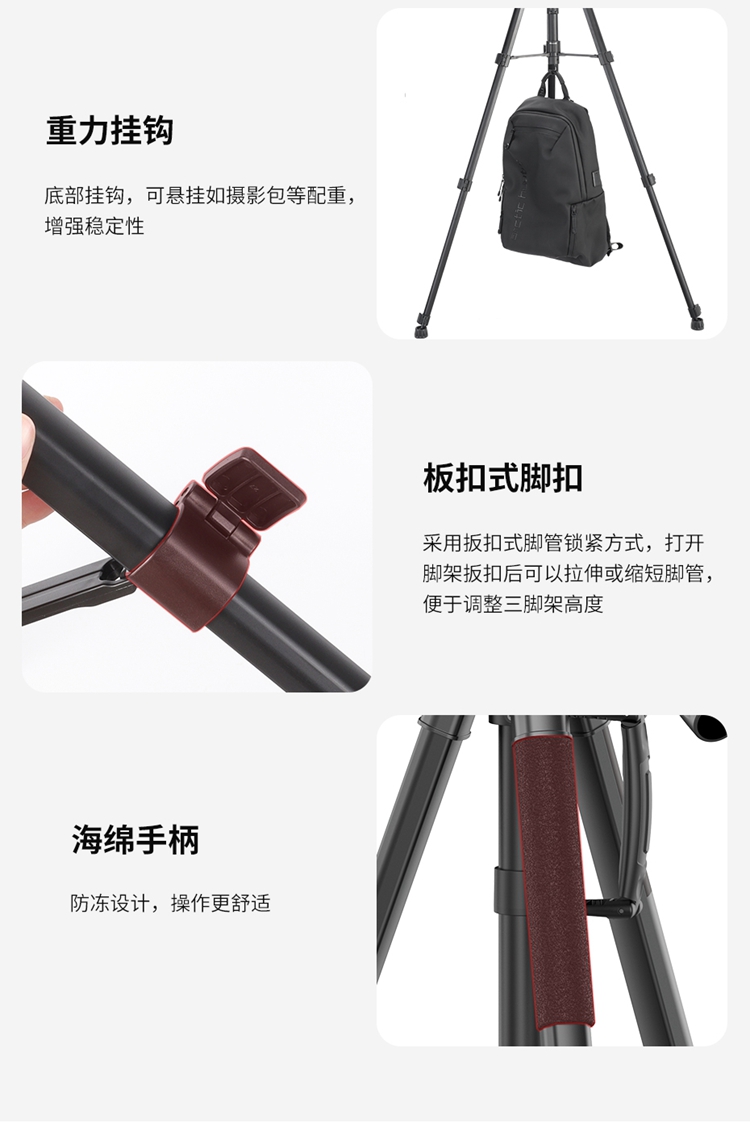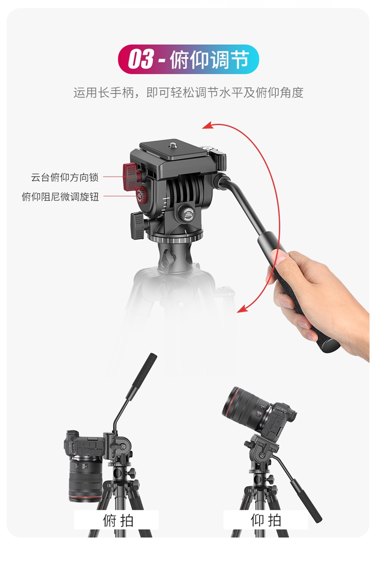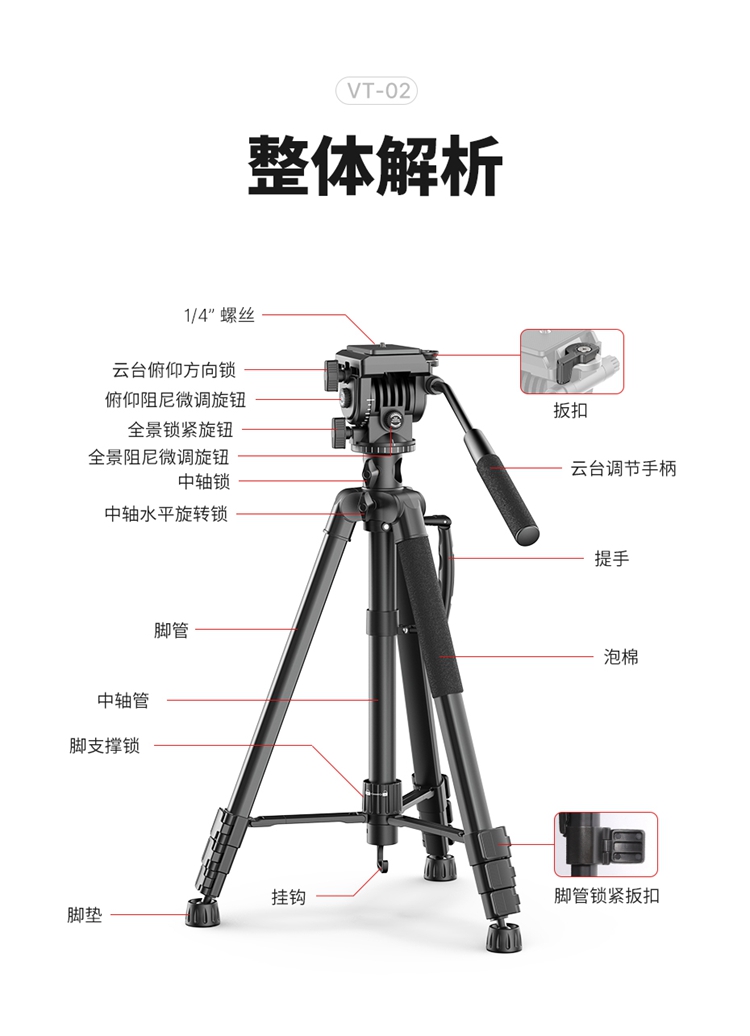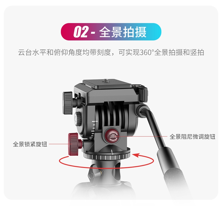 Ulanzi优篮子VT-02 相机单反支架金属中轴摄像三脚架专用户外便携拍摄视频录像稳定器液压云台多功能支撑架