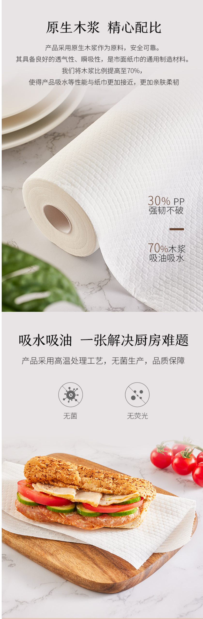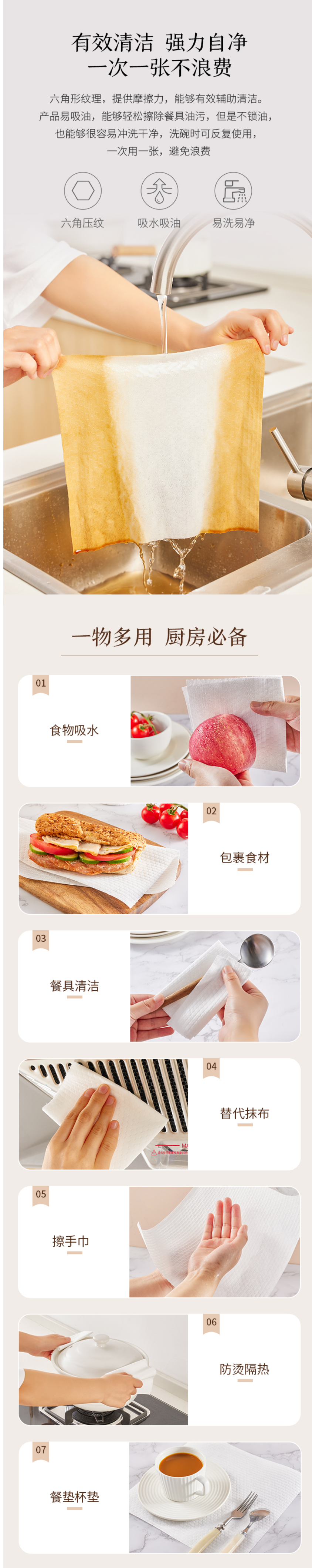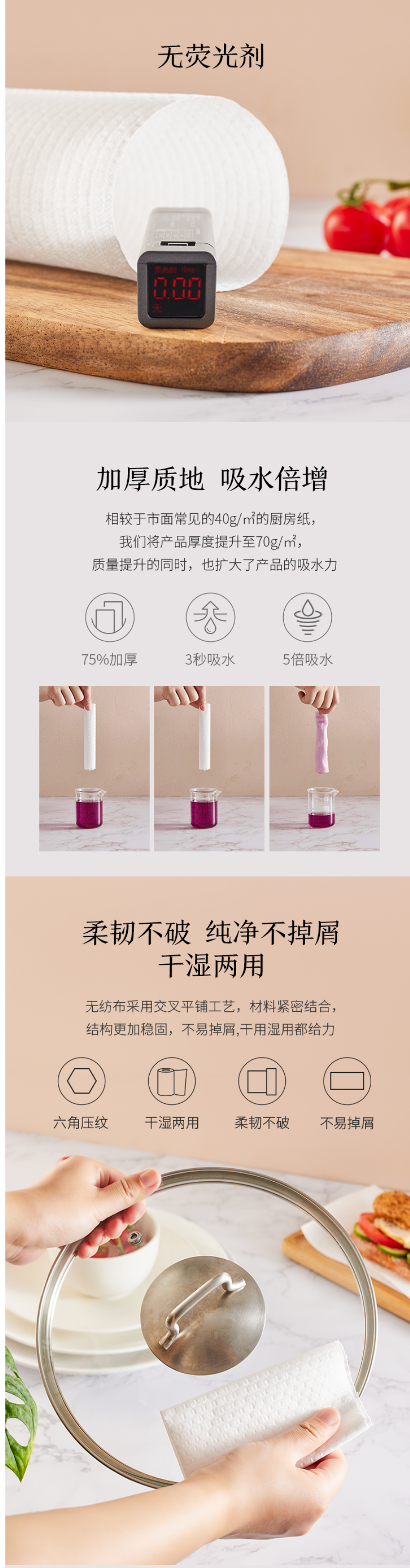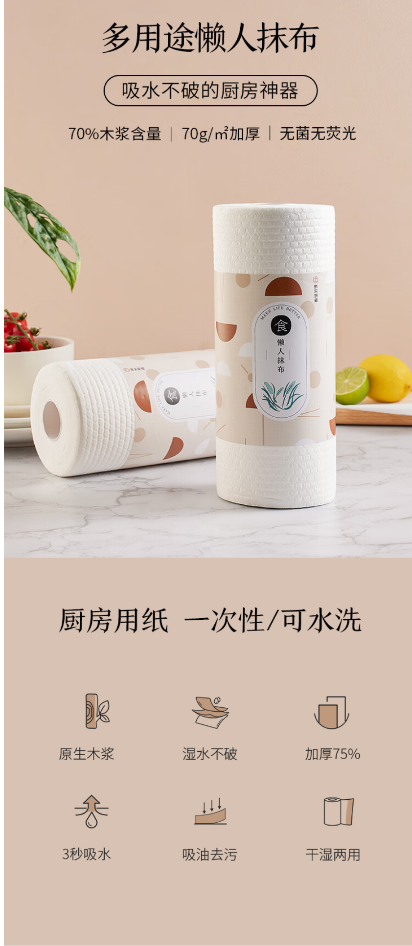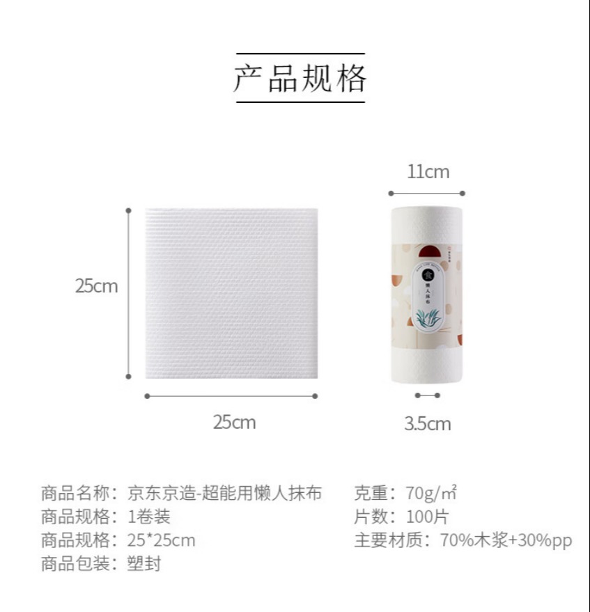 京东京造 加厚一次性懒人抹布100片 厨房卷纸70g高克重 吸油吸水 100024462370