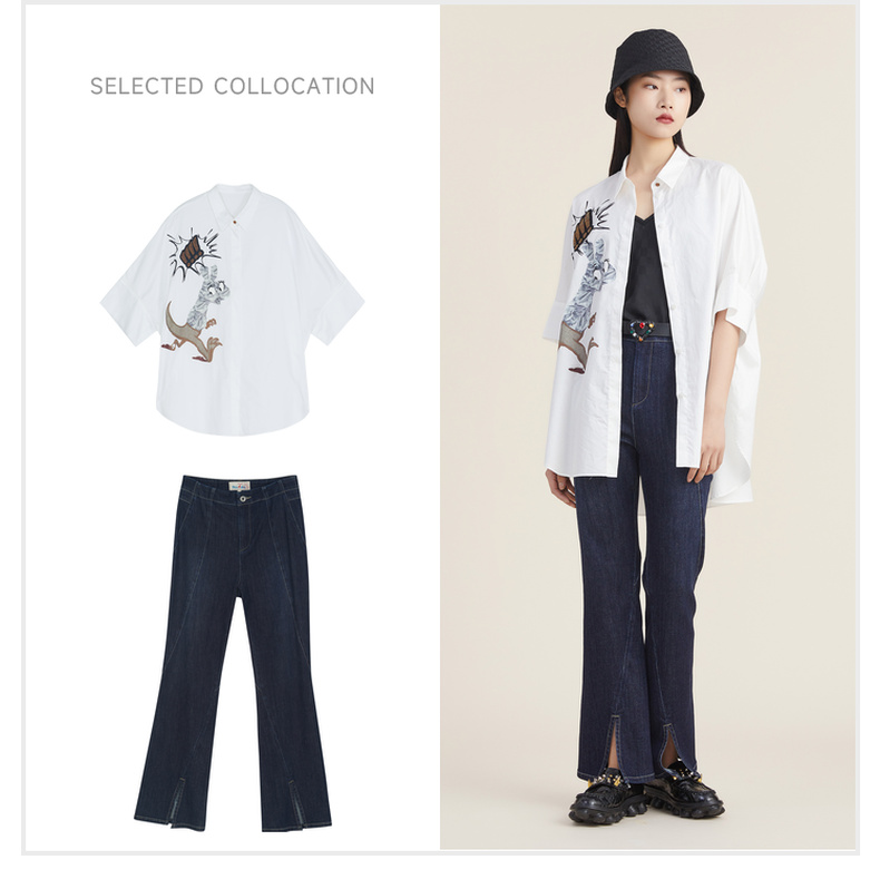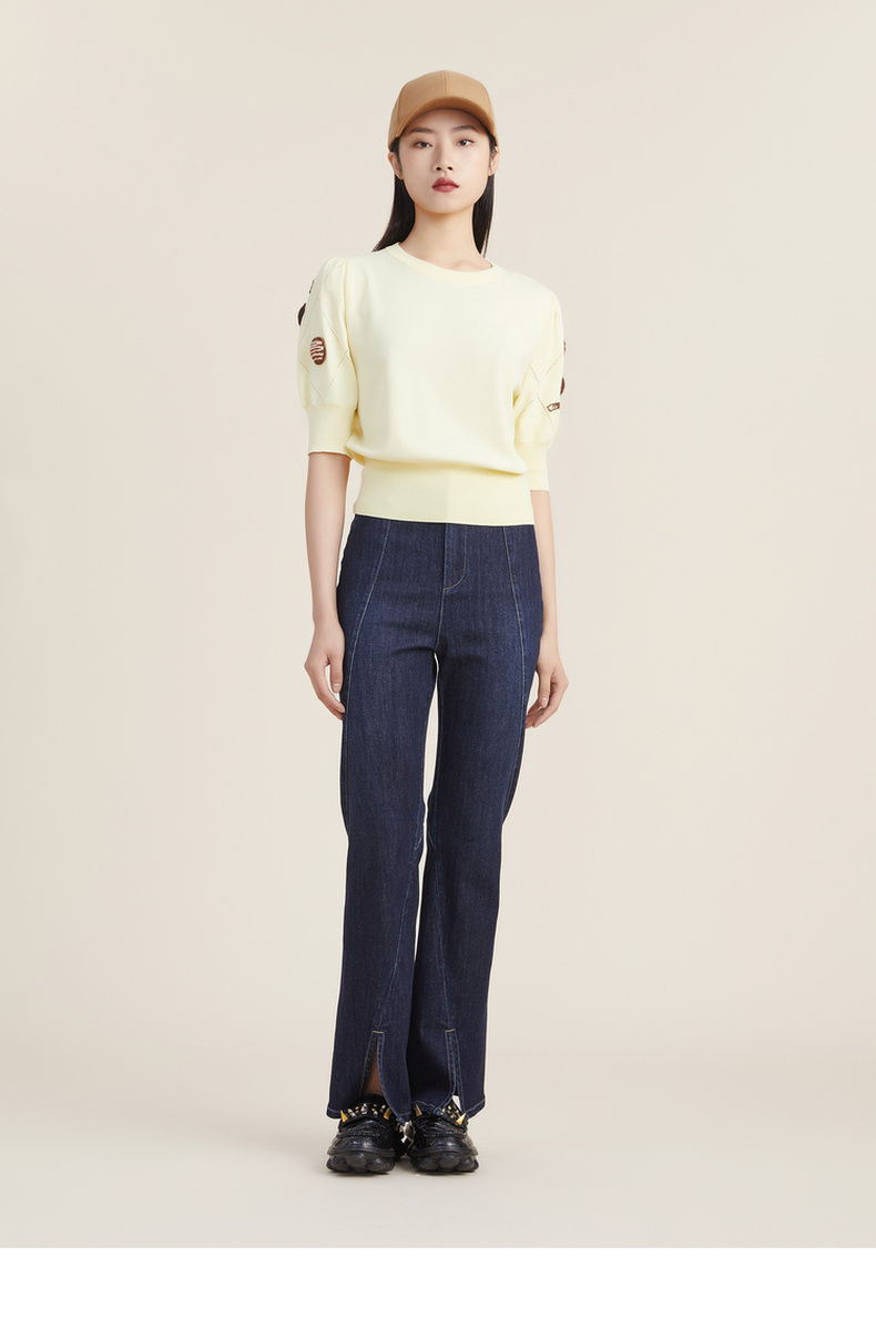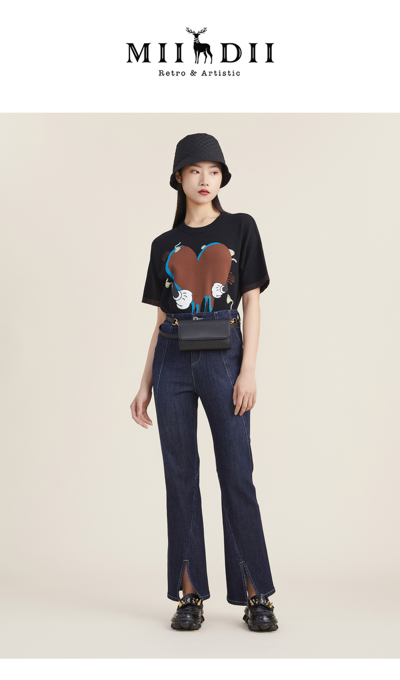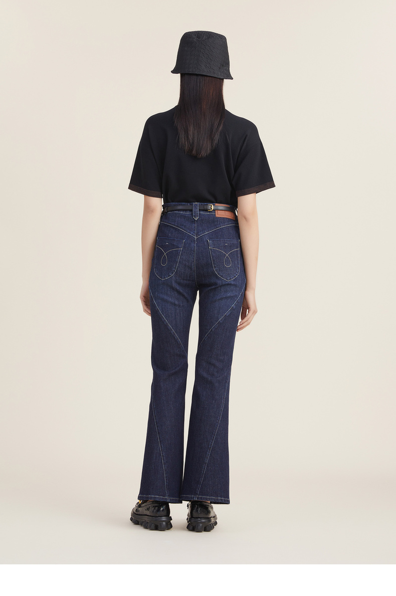 谜底牛仔裤女2022秋新款自然腰紧身显瘦复古喇叭裤女229MK6206