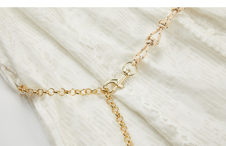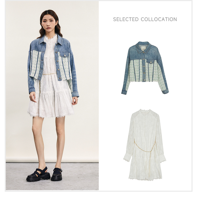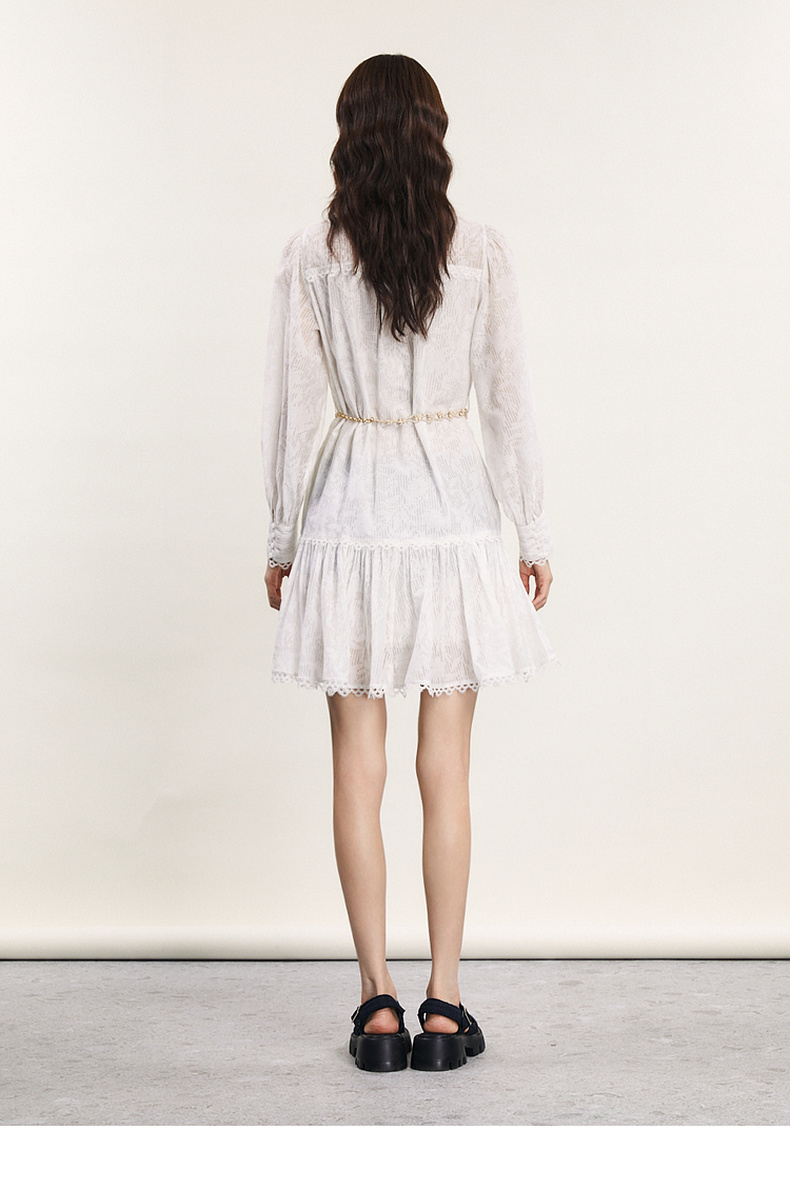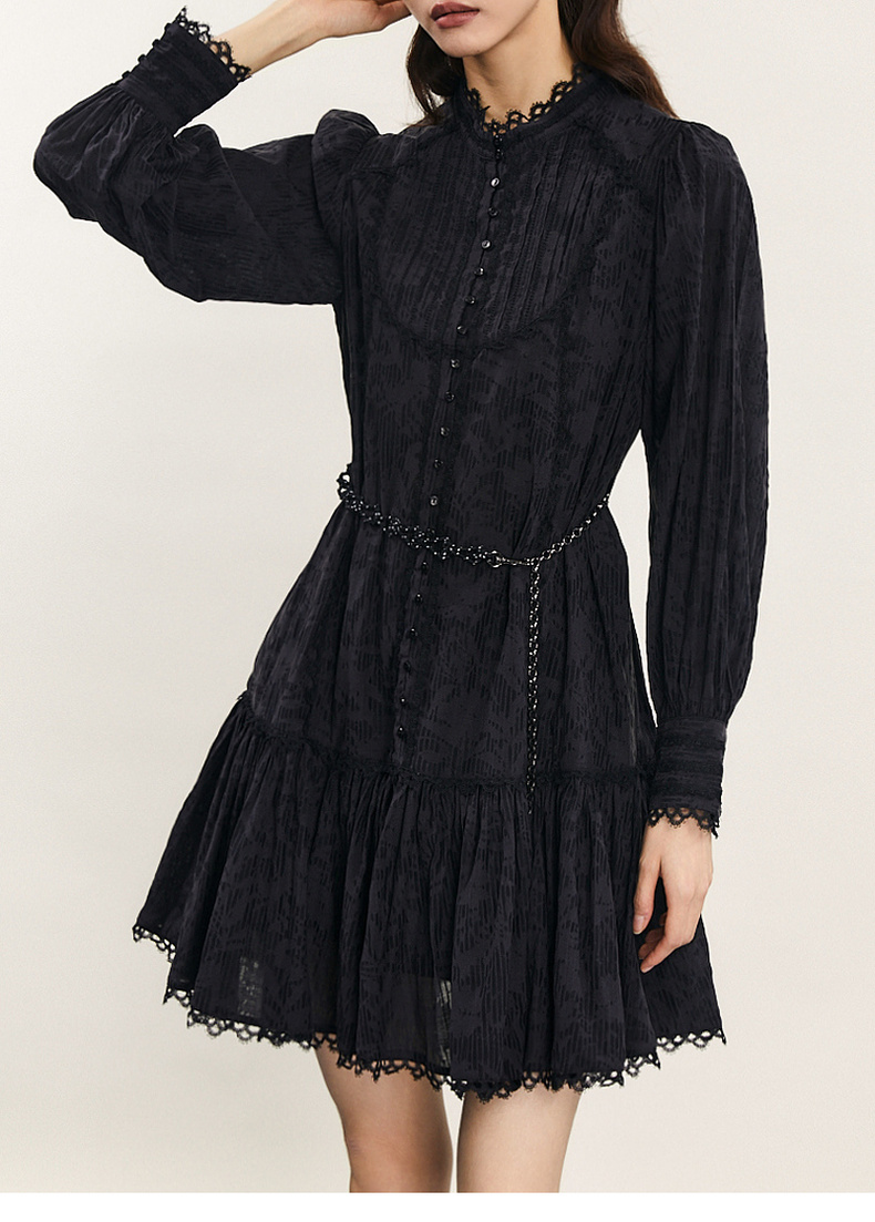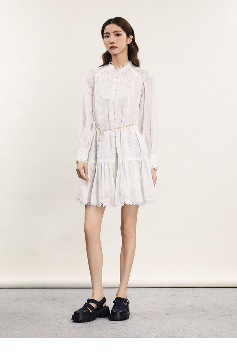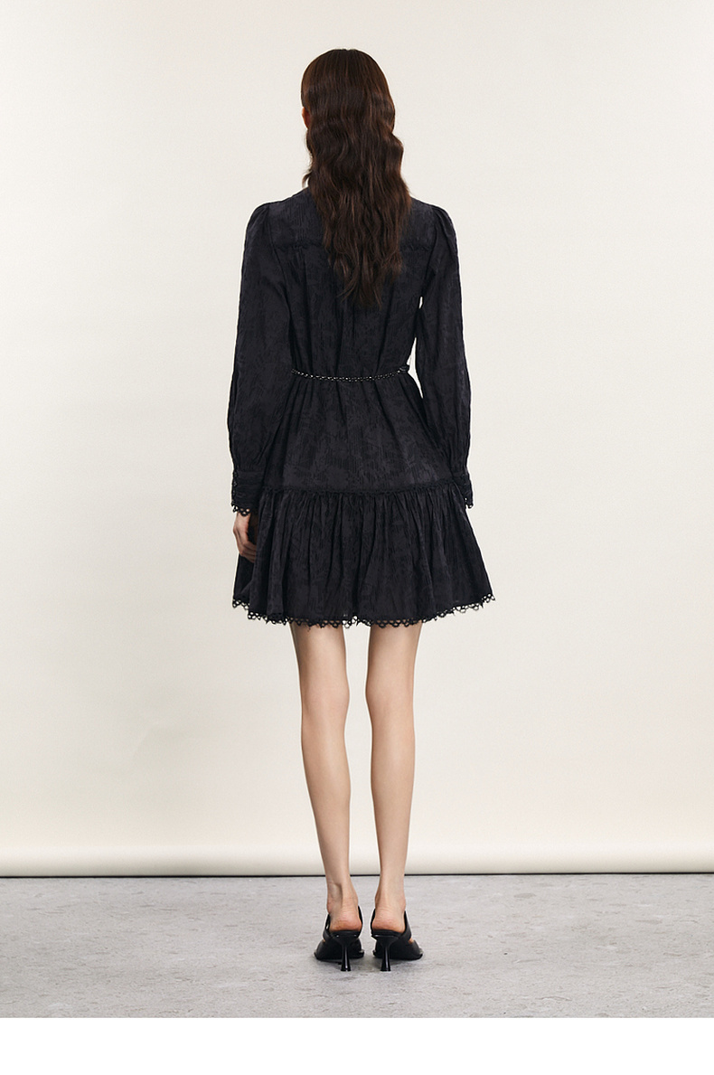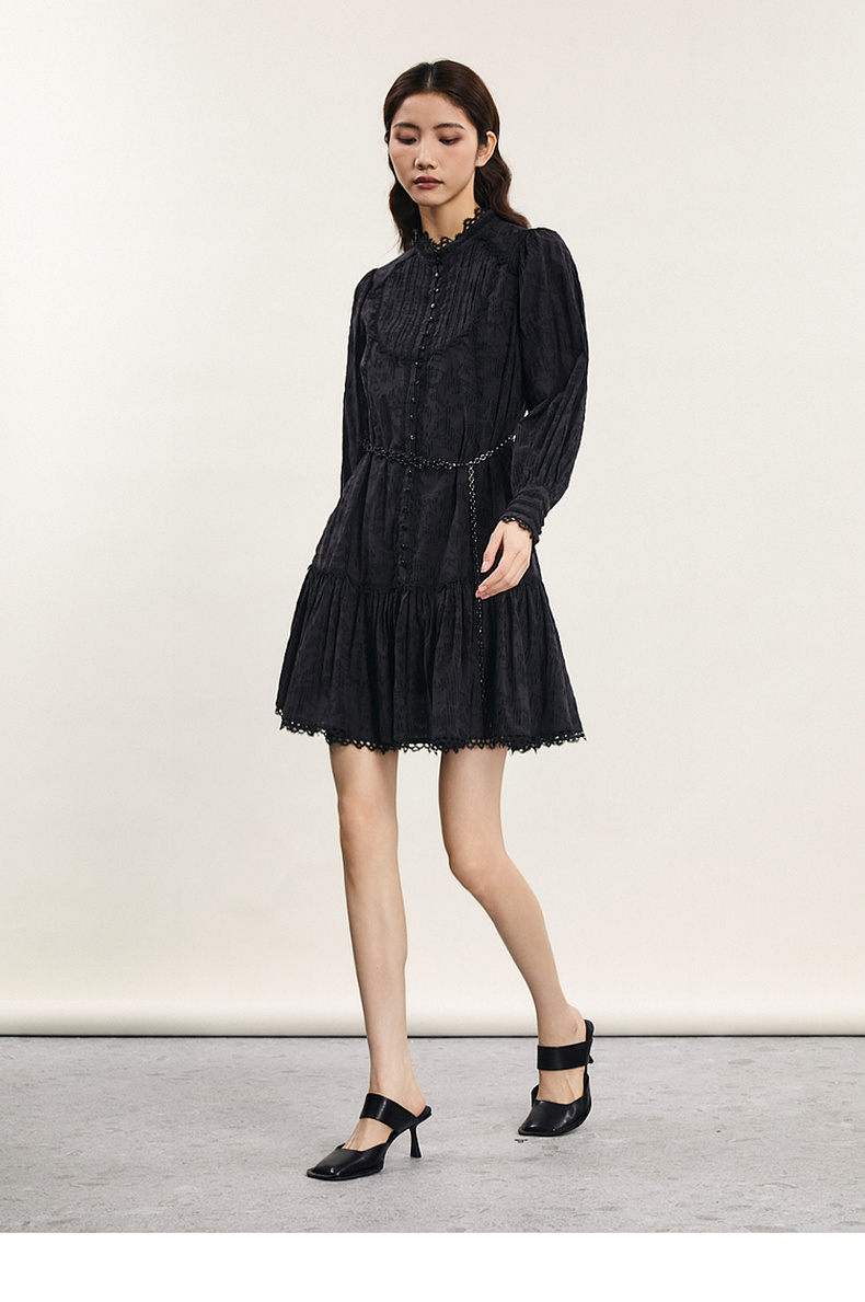 谜底连衣裙长袖2024春季新款复古文艺花边领提花中长裙241ML0144