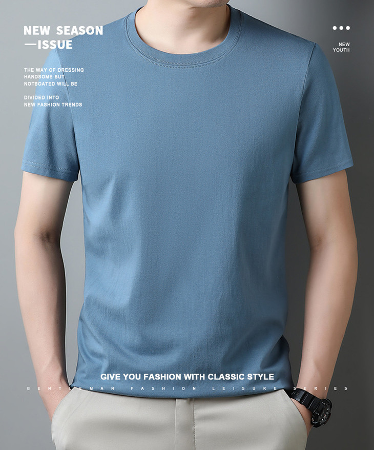 夏季圆领薄款纯色短袖t恤精梳棉纯棉短袖体恤男t恤