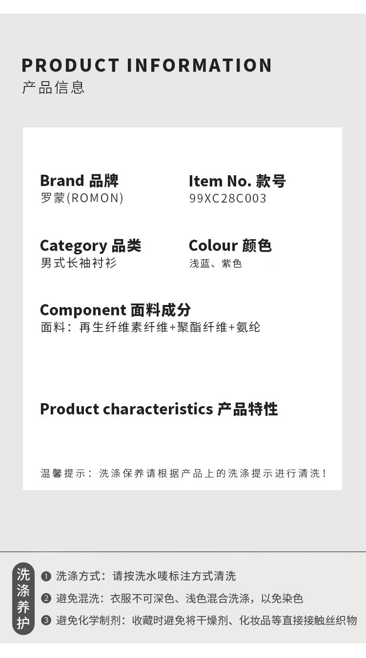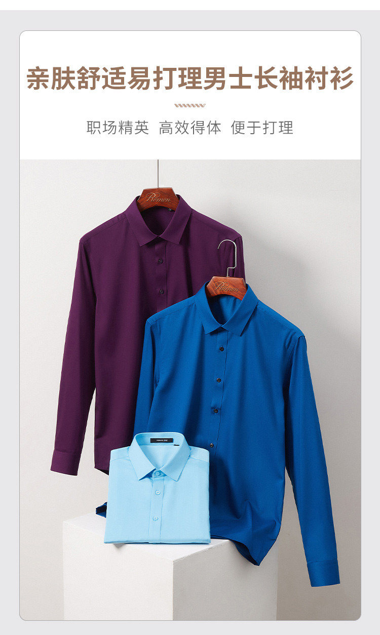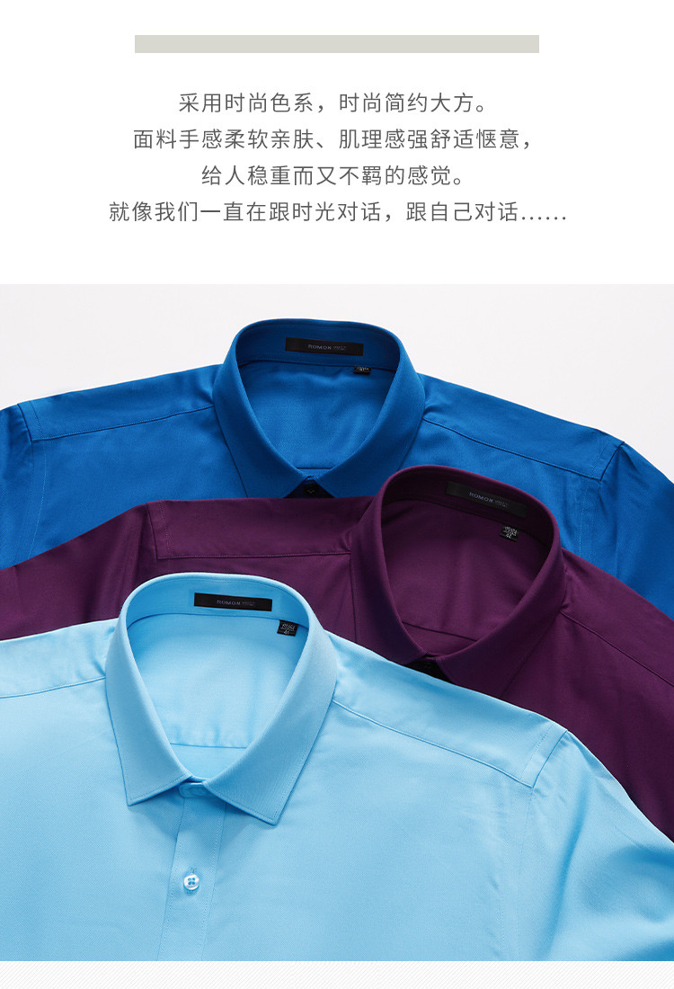罗蒙男式长袖衬衫百搭舒适简约大方商务通勤休闲衬衫开衫男