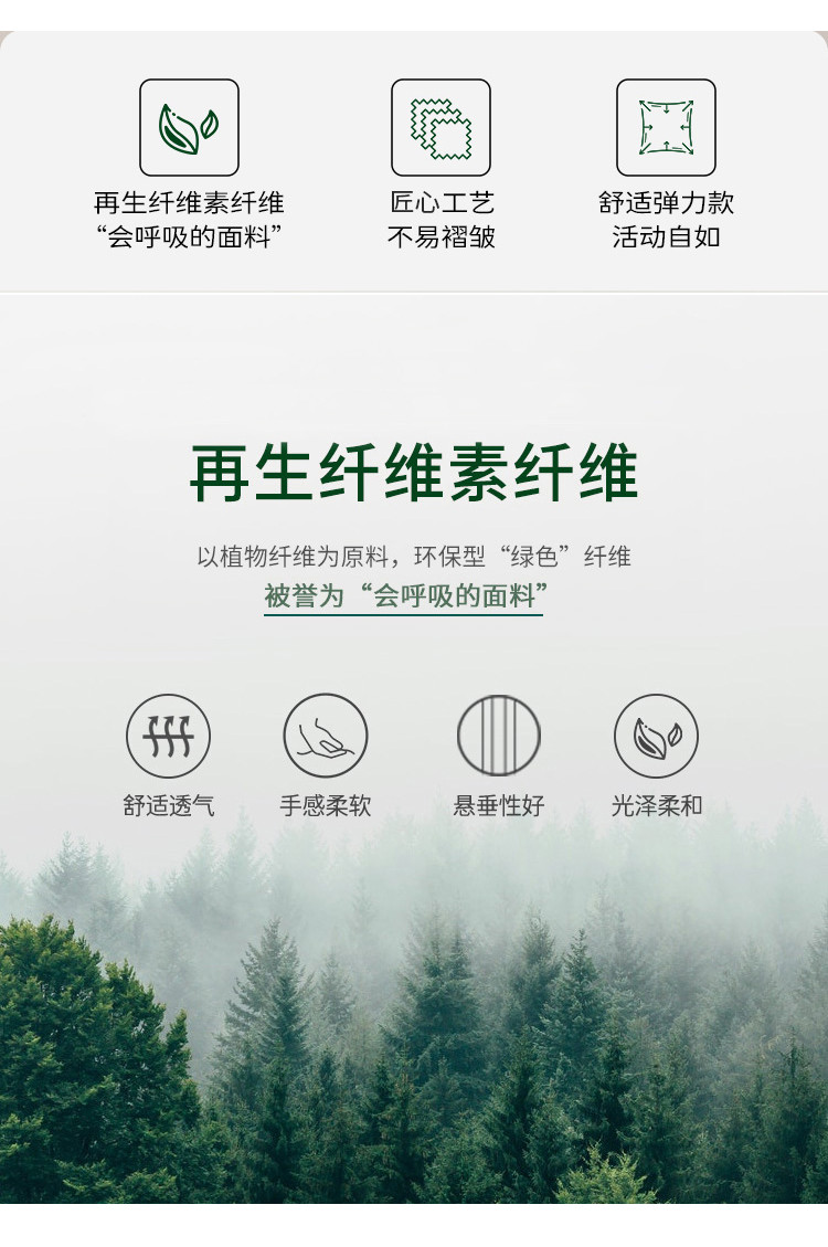 面料: 50.9%再生纤维素纤维(竹浆粘胶纤维) 44.4%聚酯纤维 4.7%氨纶