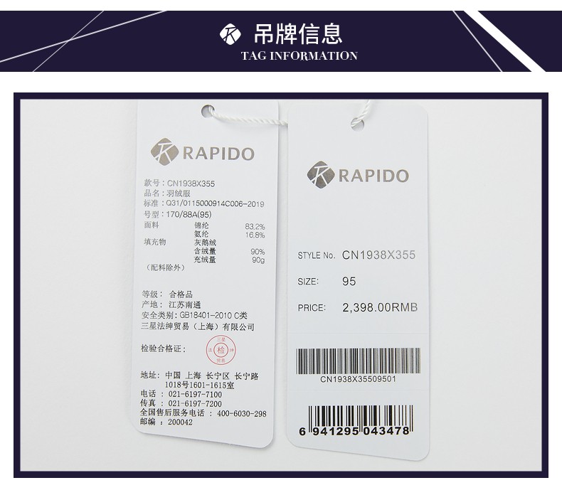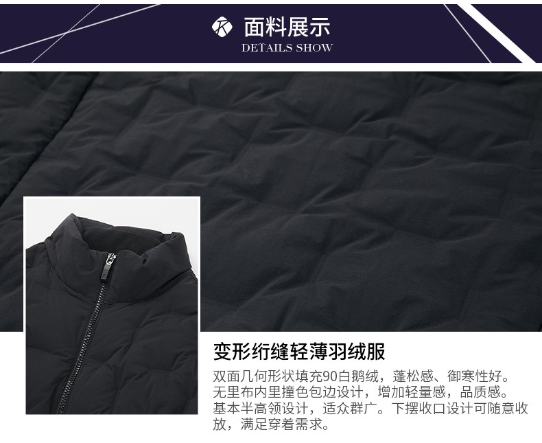 RAPIDO雳霹道2021冬季男士时尚轻量鹅绒休闲短款羽绒服CN1938C355