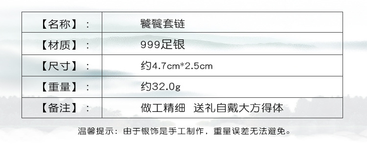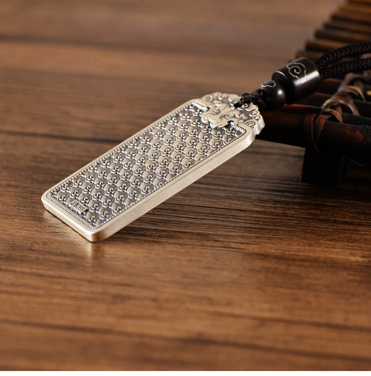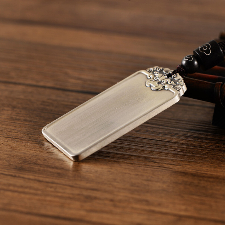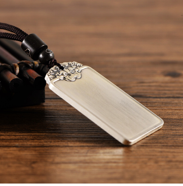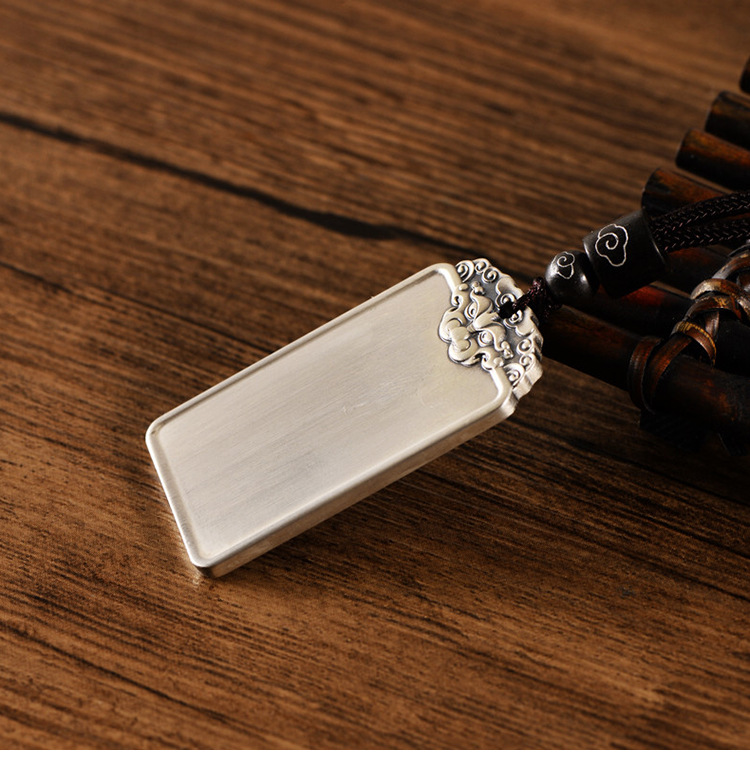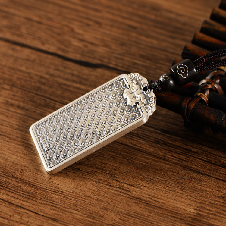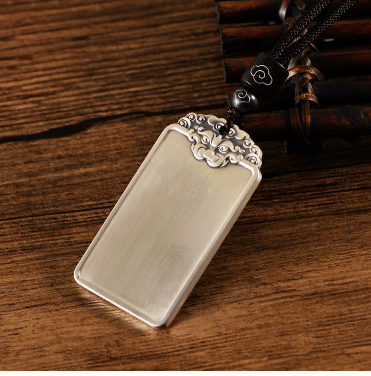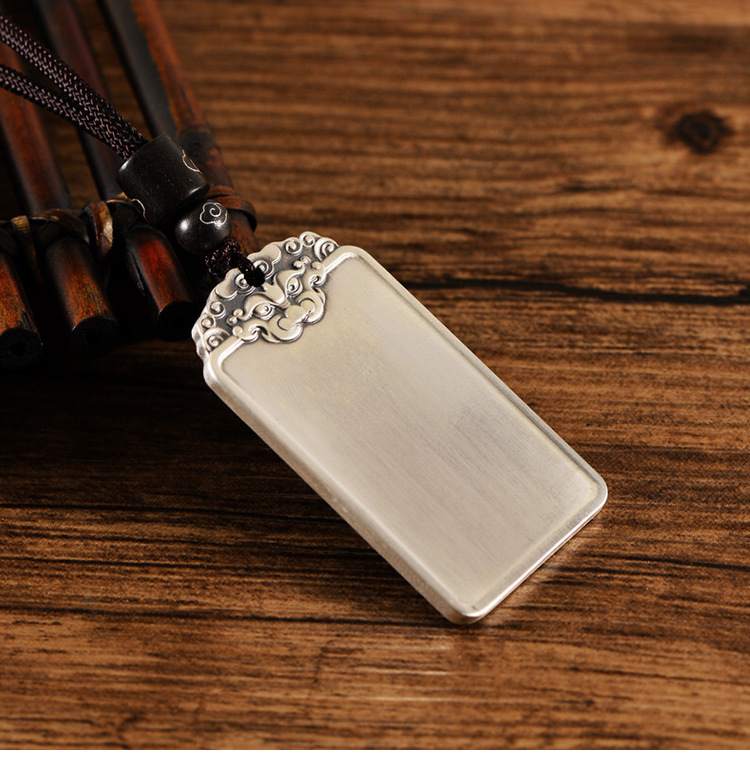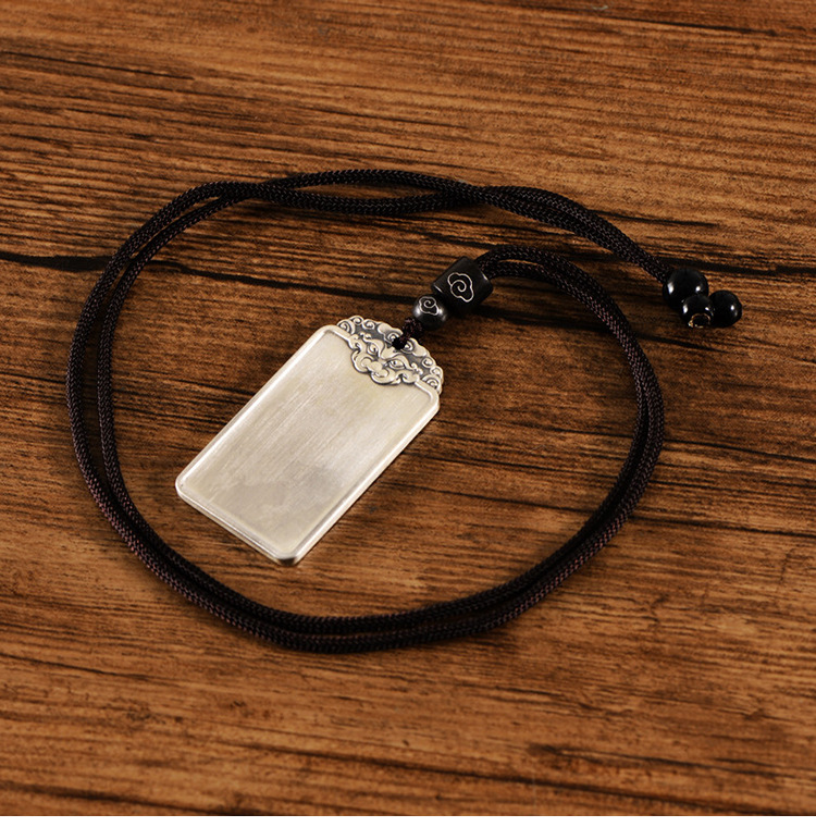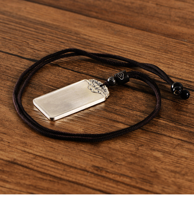 999足银民族风饕餮祥云男光面吊坠国潮个性银套链配绳子