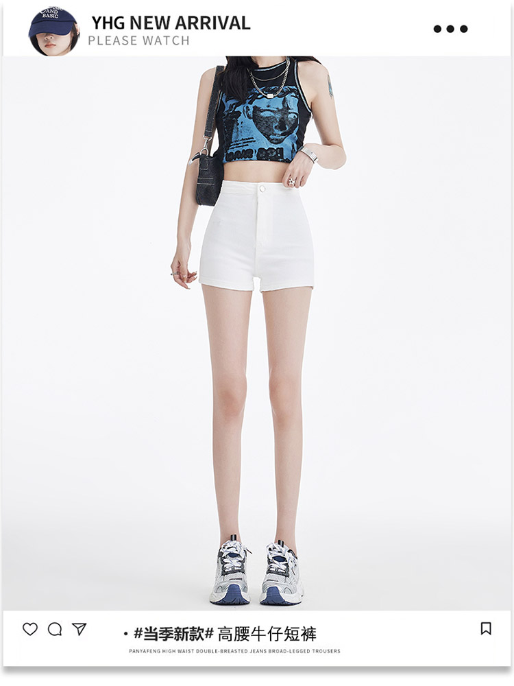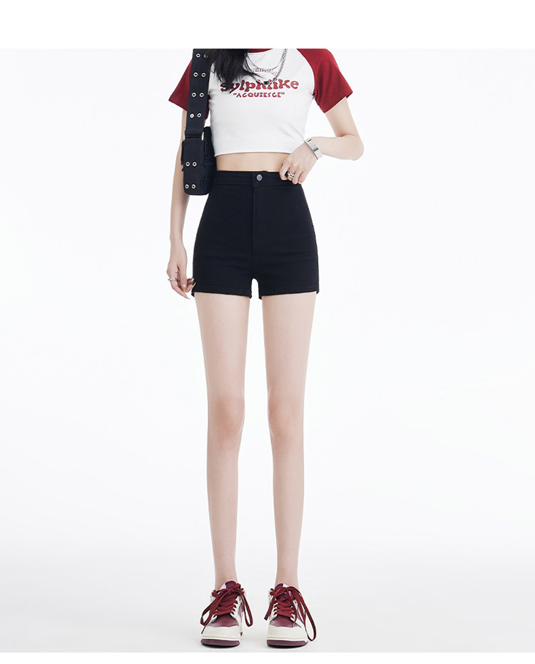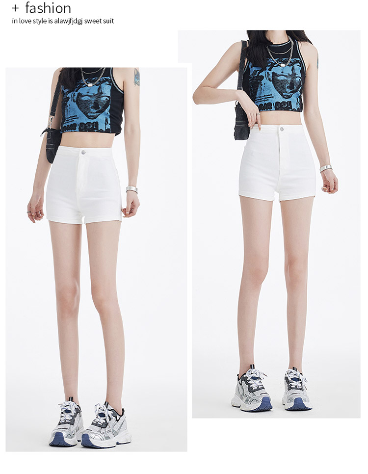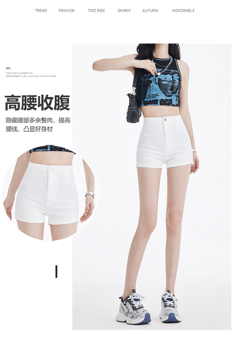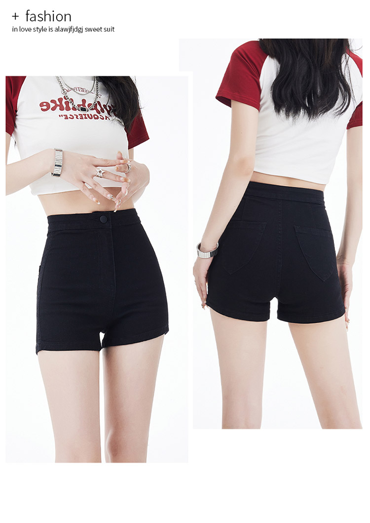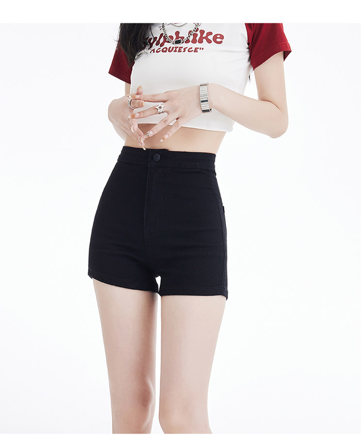 罗蒙女士夏季短裤A字高腰修身显瘦裤子时尚百搭休闲弹力女裤