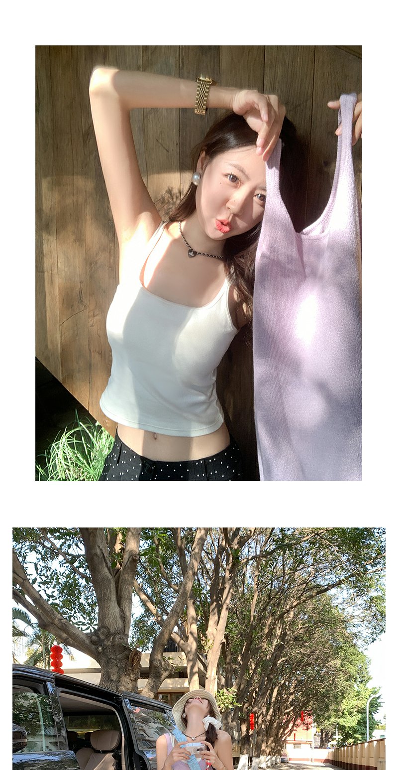 <曾小咸推荐>慵懒风无袖外穿紫色针织吊带背心上衣