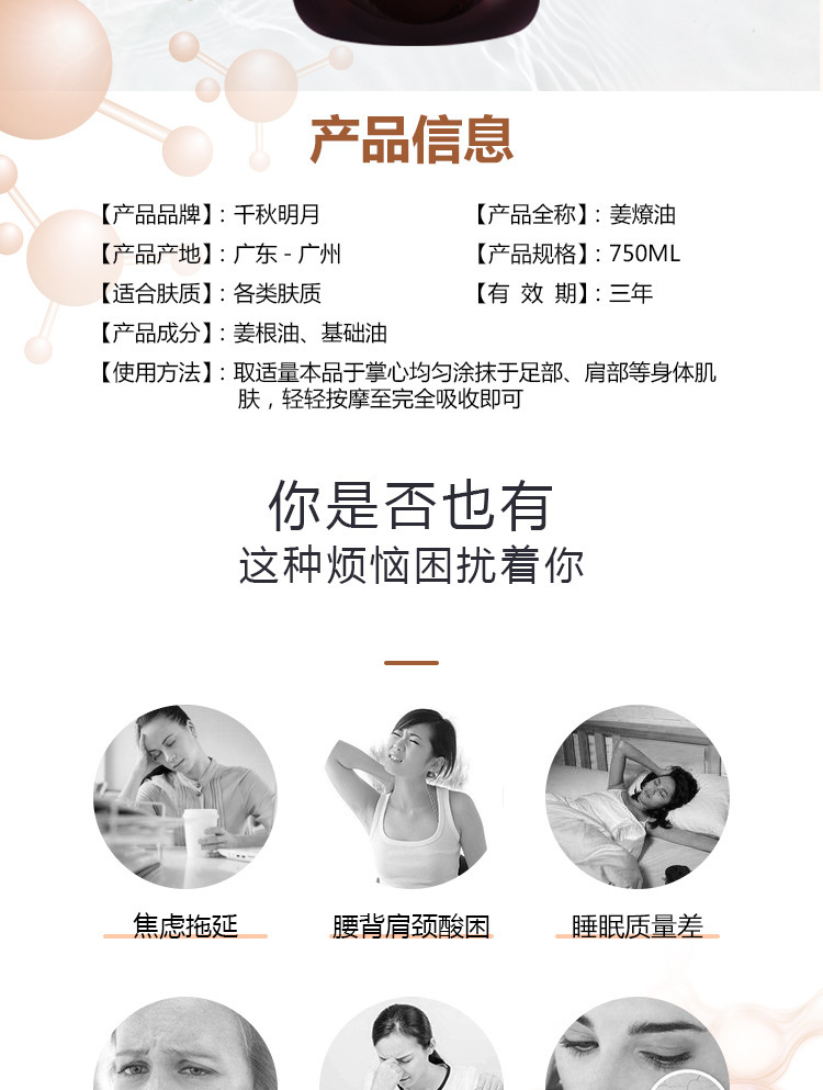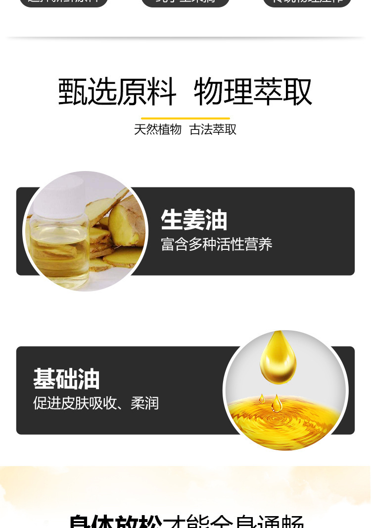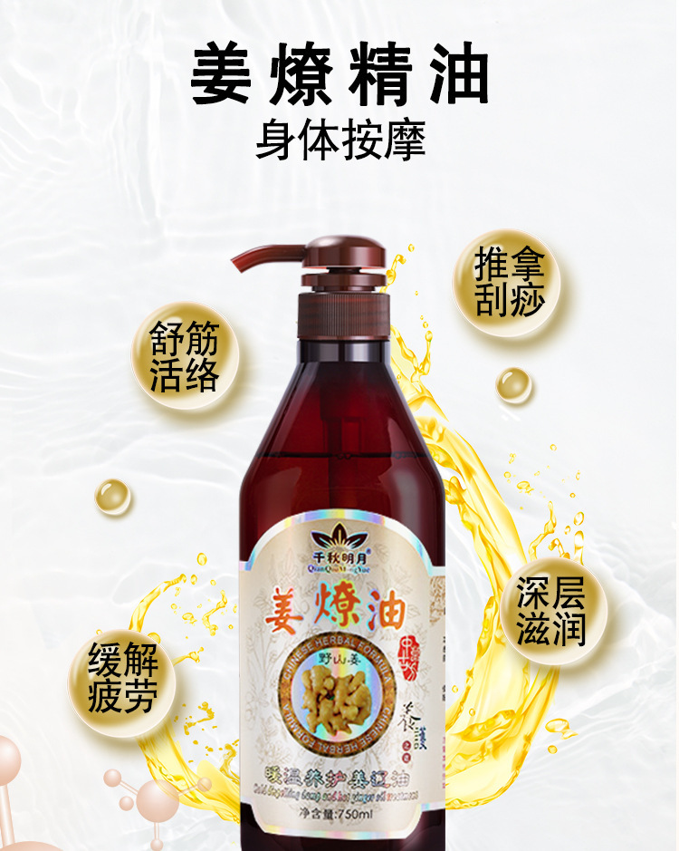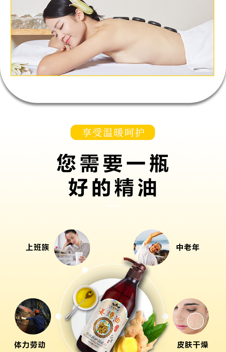 老生姜按摩油身体发热肩颈刮痧开背通经络推背美容院spa专用精油