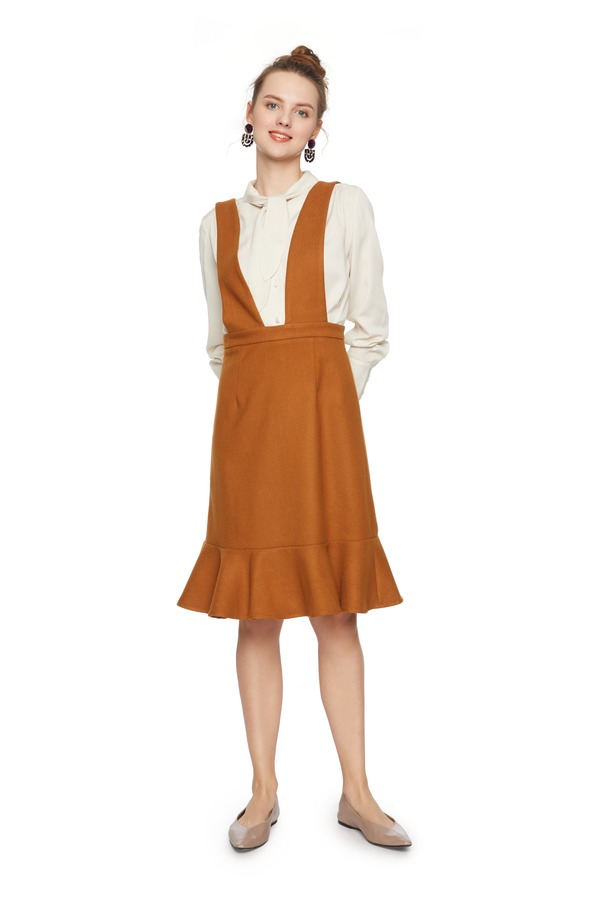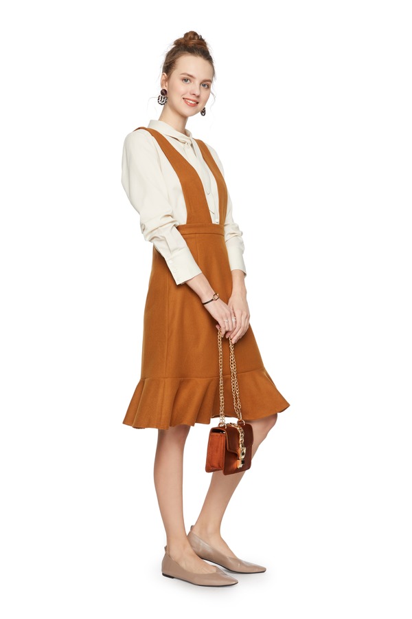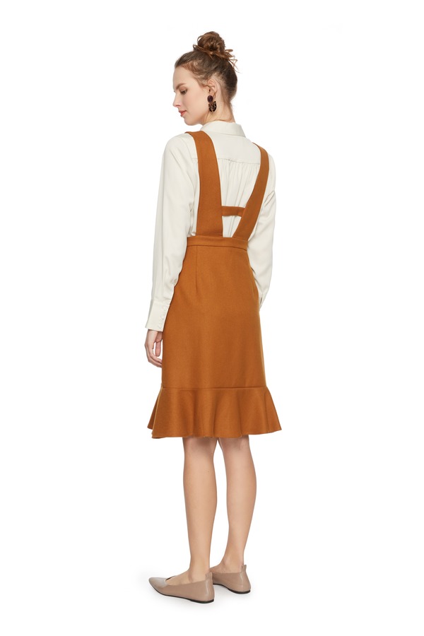 HAYES 荷叶摆棕色背带裙 5446