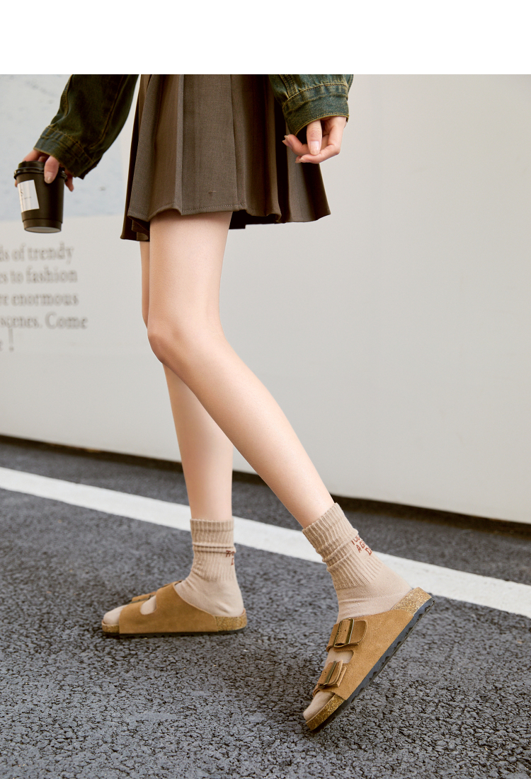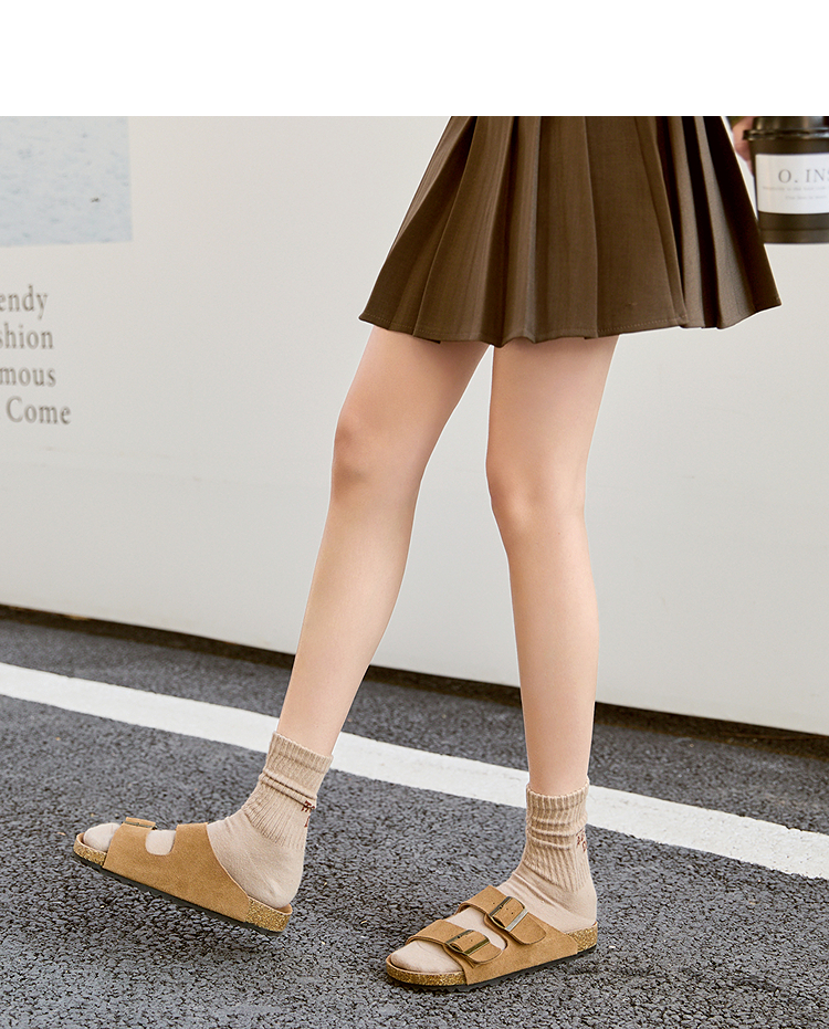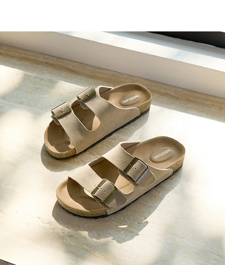 西遇勃肯凉拖鞋女新款夏季超火外穿软木底白色一字拖厚底凉鞋V0056420/V0056547