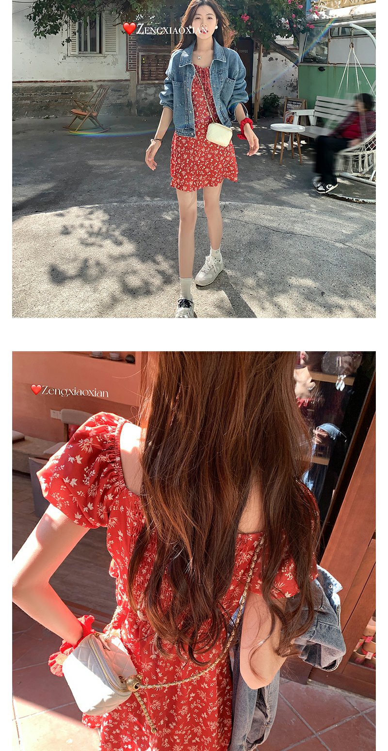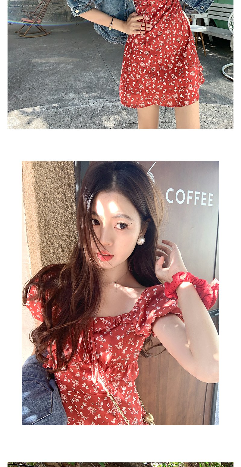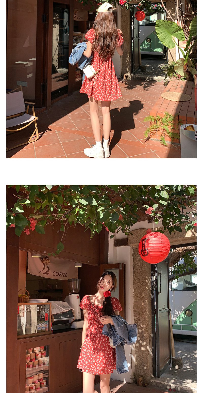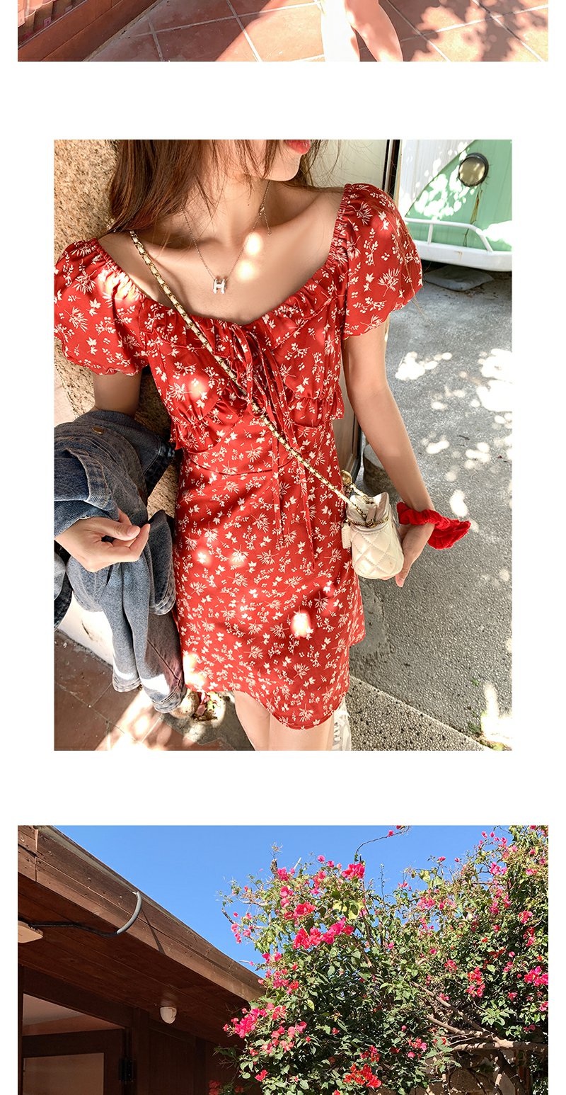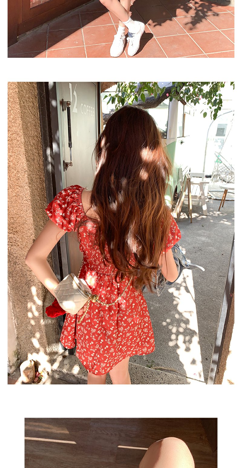 <曾小咸推荐>红色复古收腰显瘦碎花连衣裙
