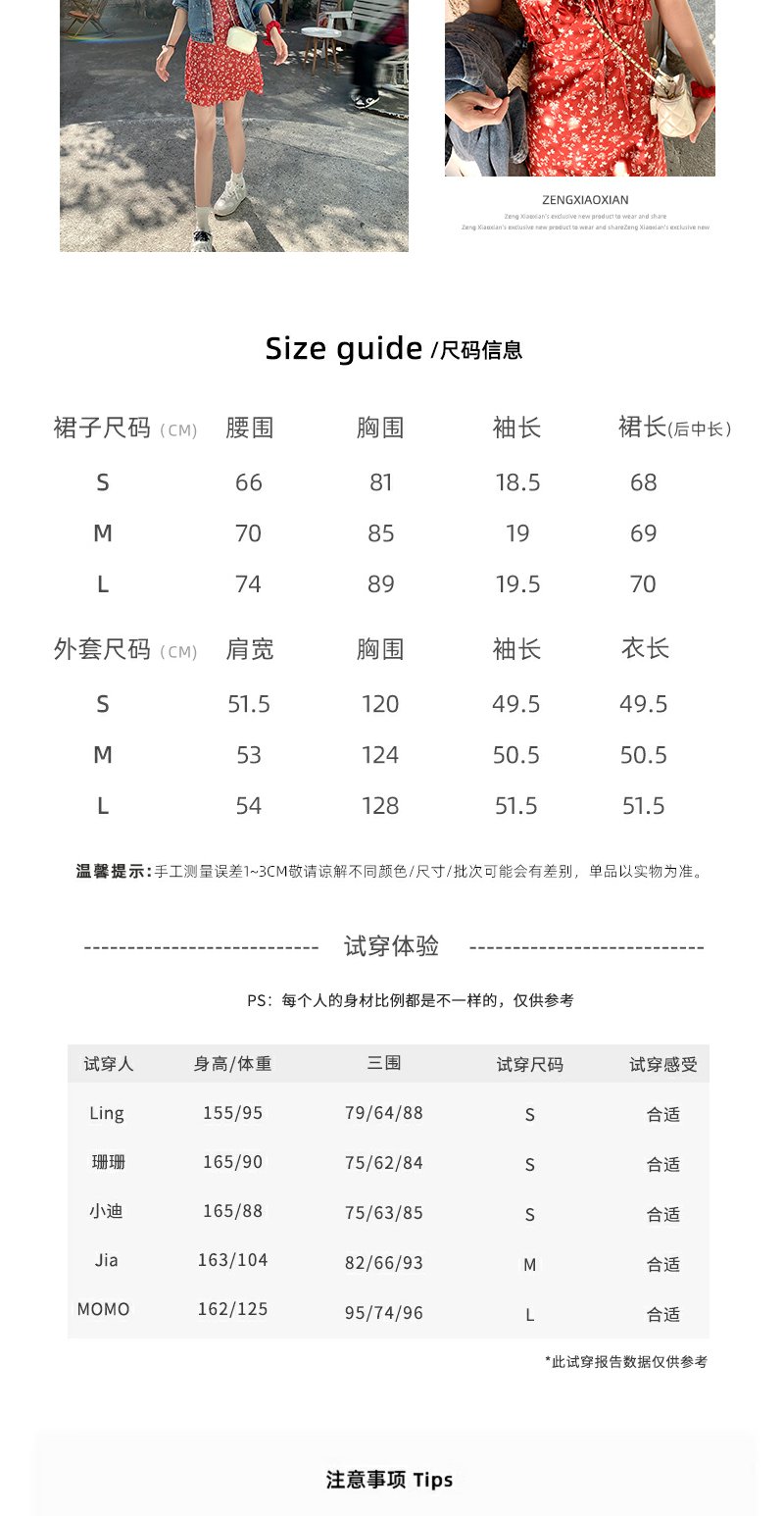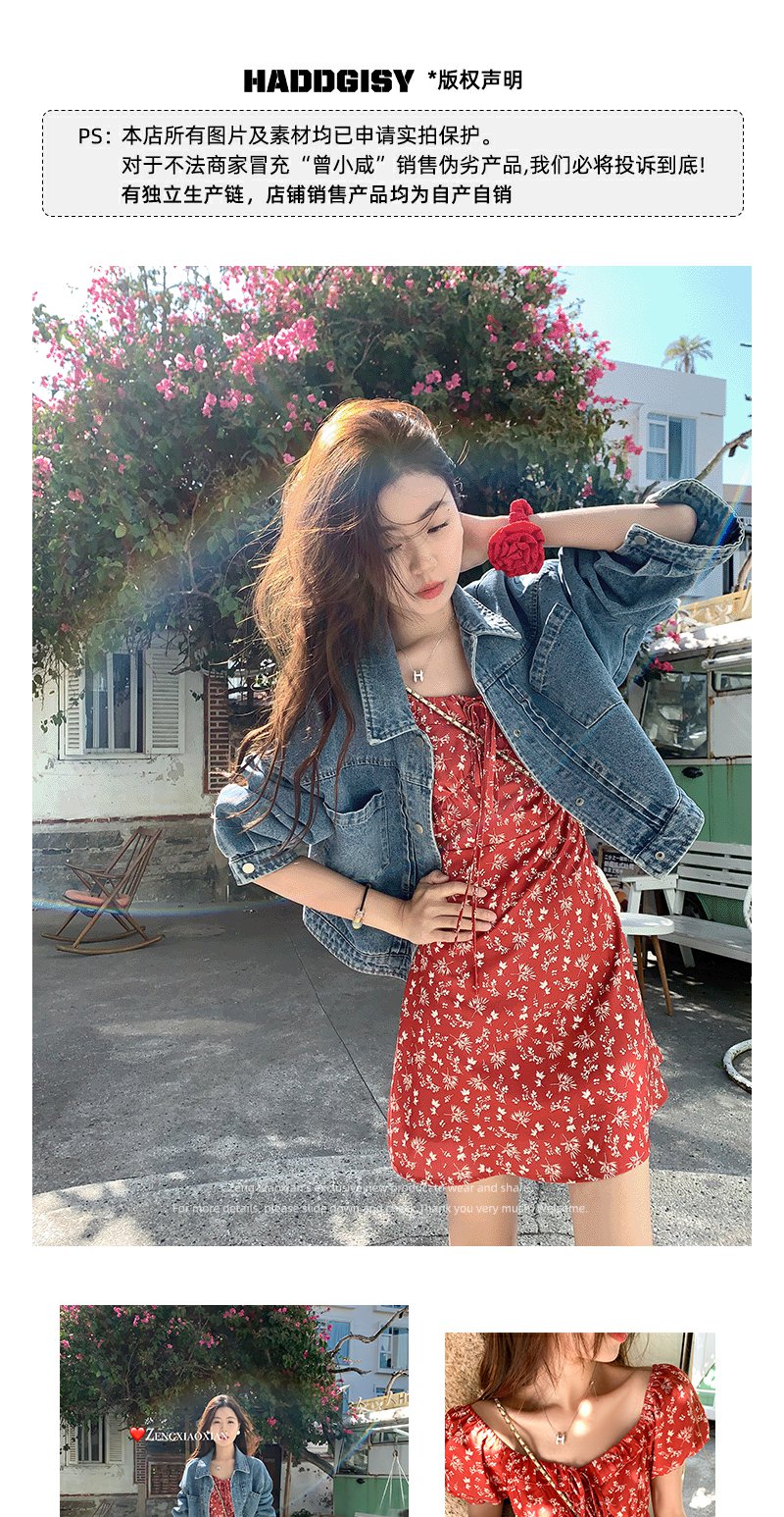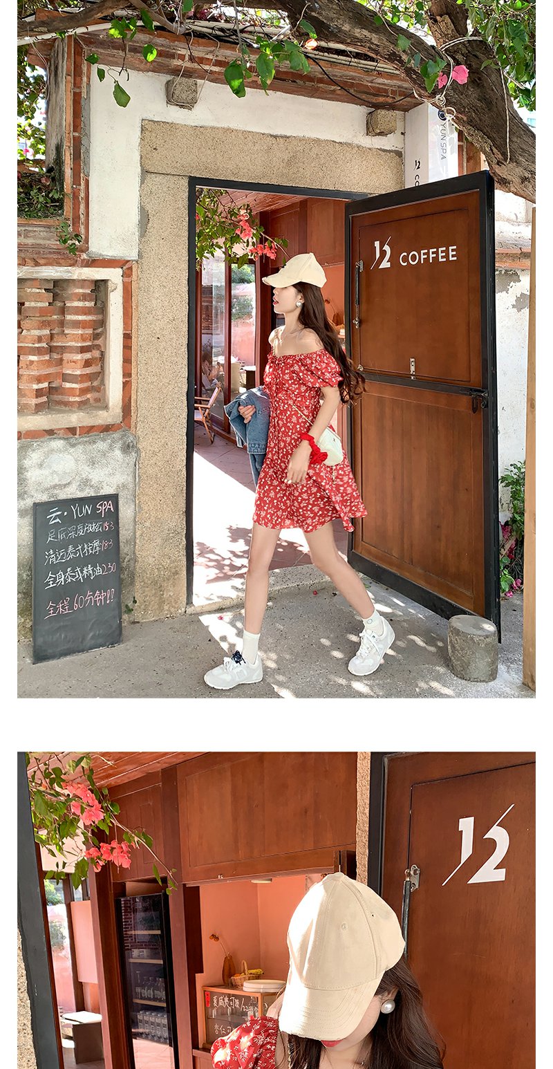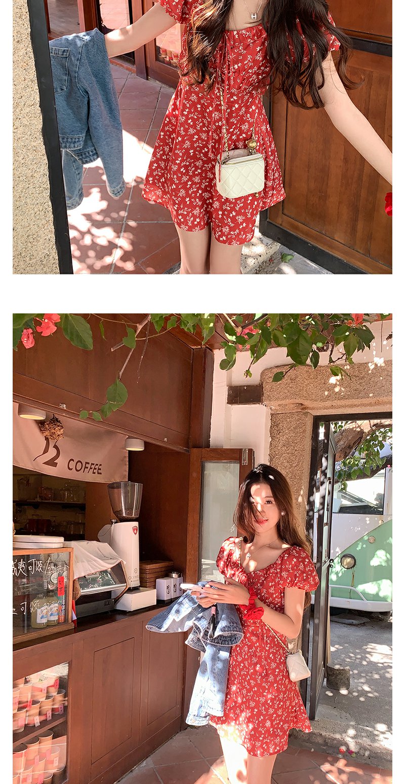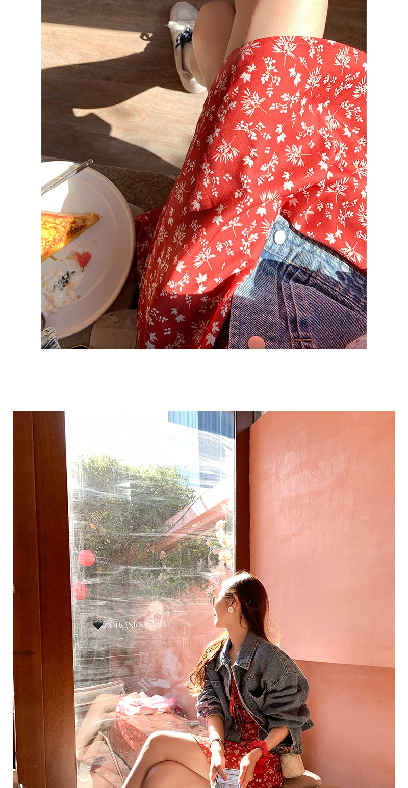 <曾小咸推荐>红色复古收腰显瘦碎花连衣裙