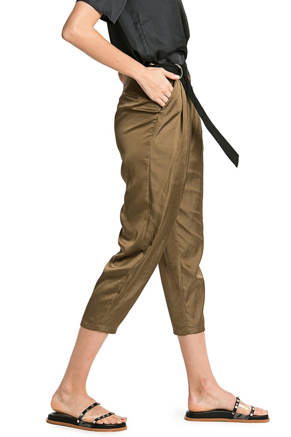 YI ZHUO一琢 军绿色光泽感长裤 2589