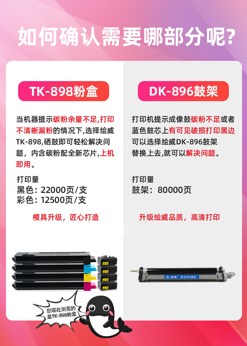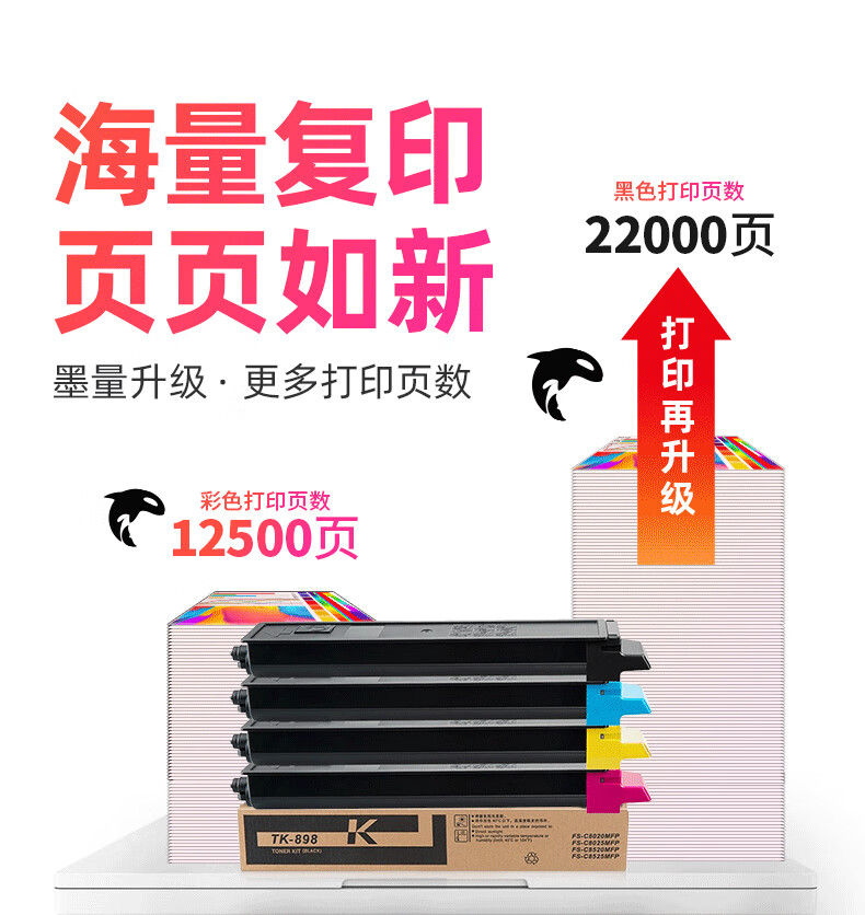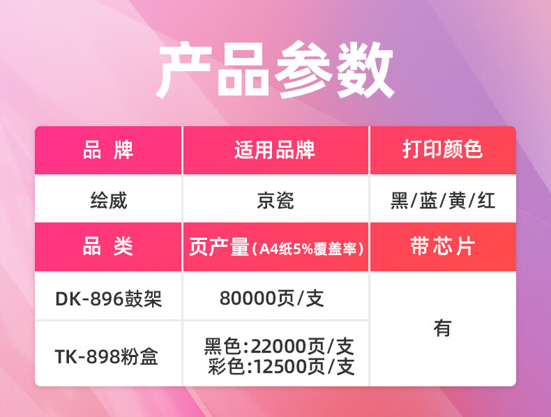 绘威适用京瓷TK-898墨粉盒 京瓷8520粉盒FS-C8020碳粉C8025 FS-C8525 mfp硒鼓 墨盒 京瓷耗材墨盒 大容量四色
