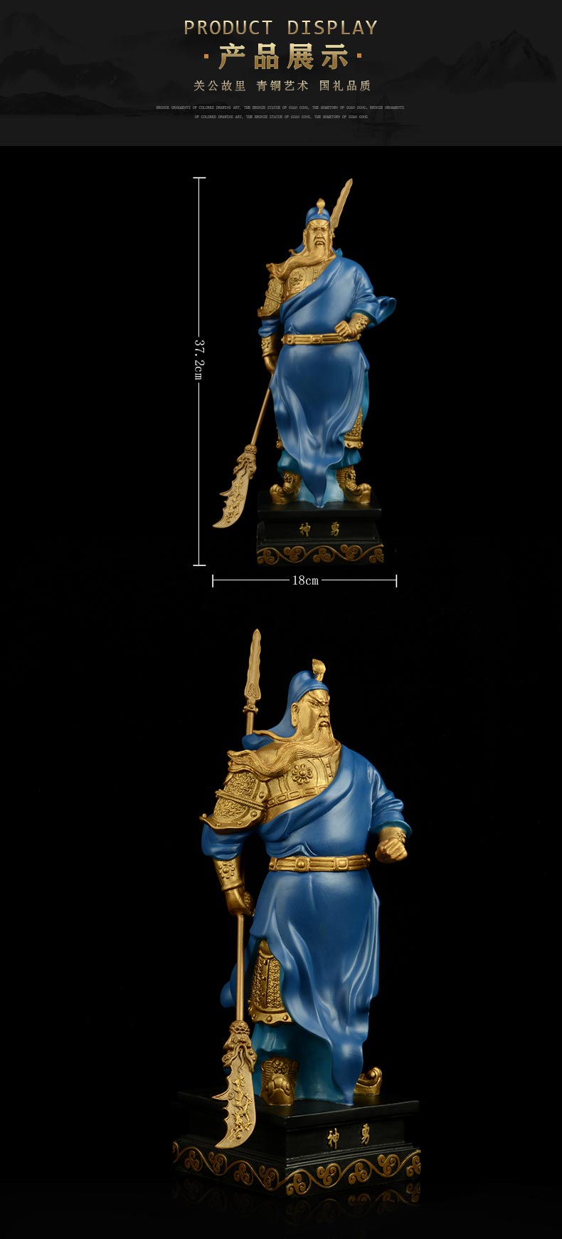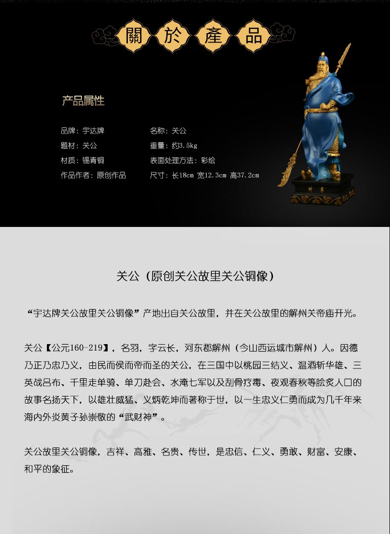 宇达青铜全铜摆件《神勇》彩绘 铜工艺品 关公 家居装饰摆件