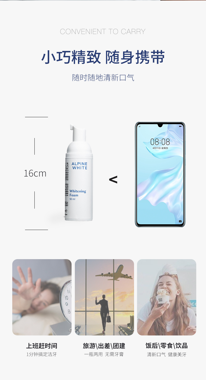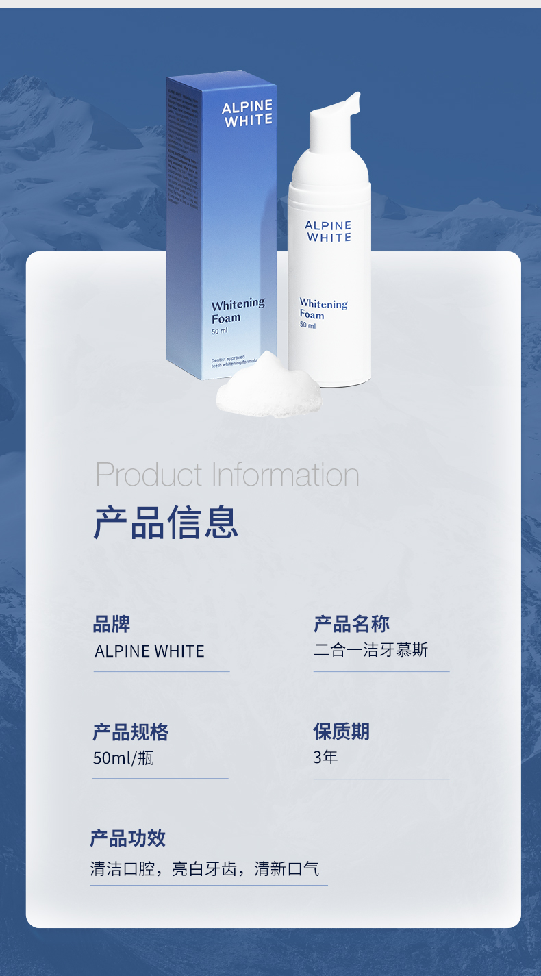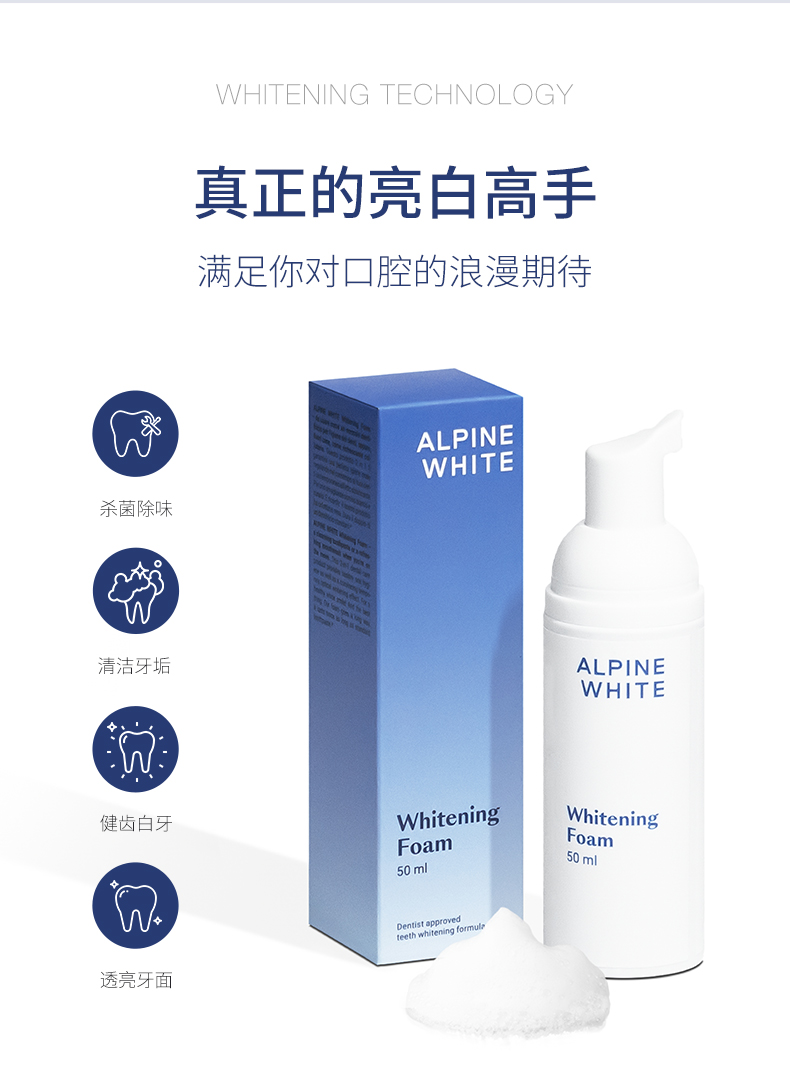 【杀jun除味 镁白护牙 院线护理】牙齿美白泡沫 50ml 瑞士 Alpine White 乐瑞白