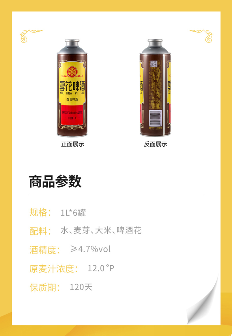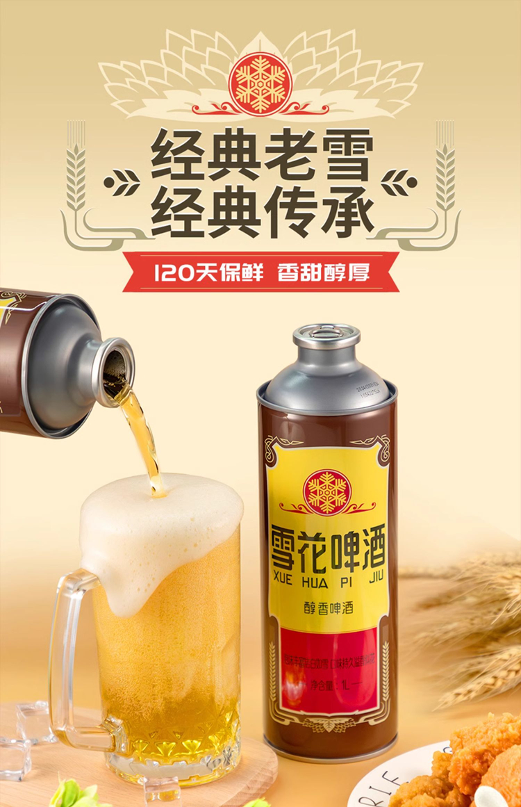 雪花经典啤酒(老雪)12度1L马口铁罐1*6瓶