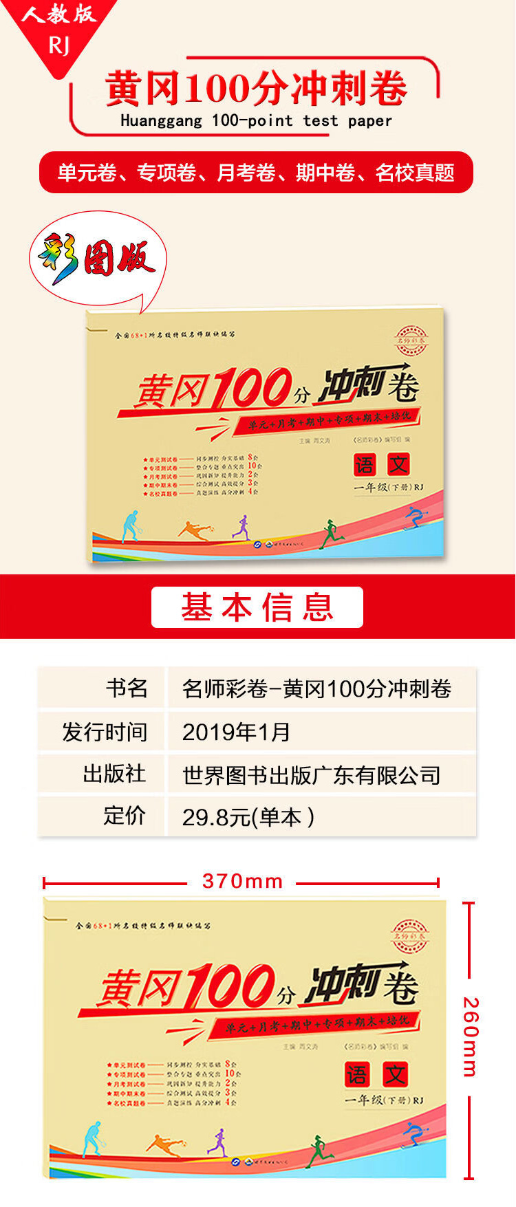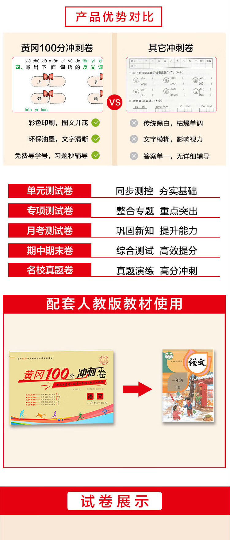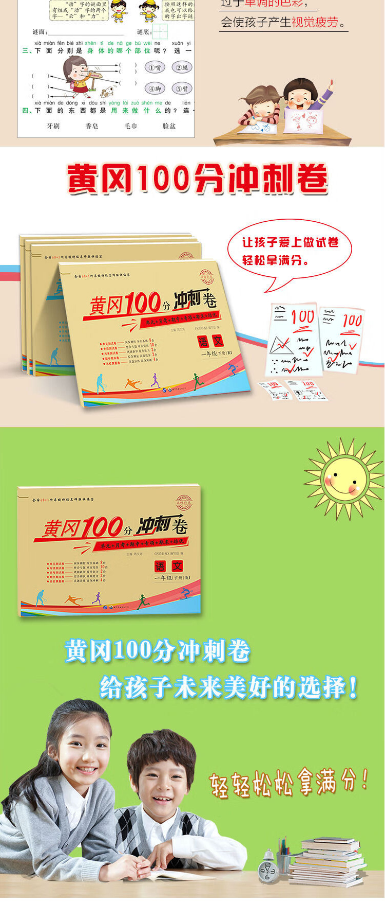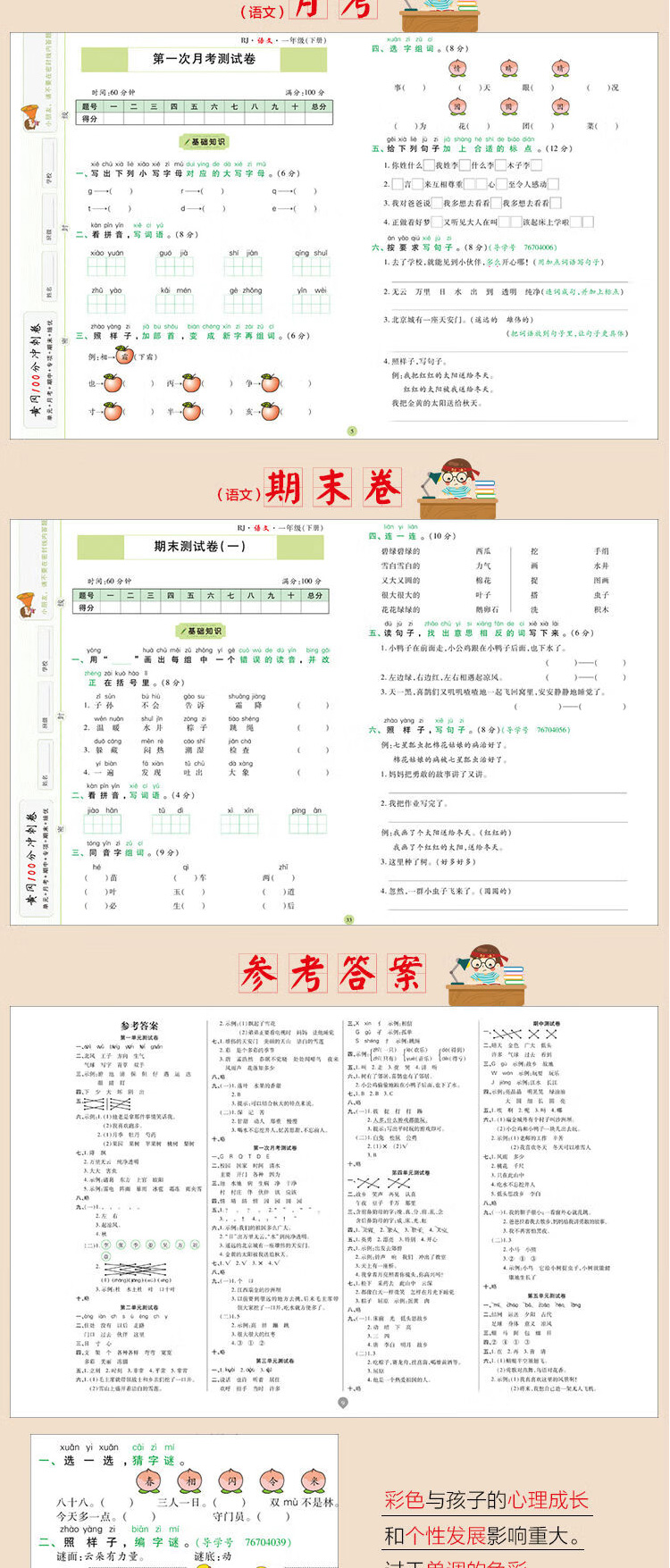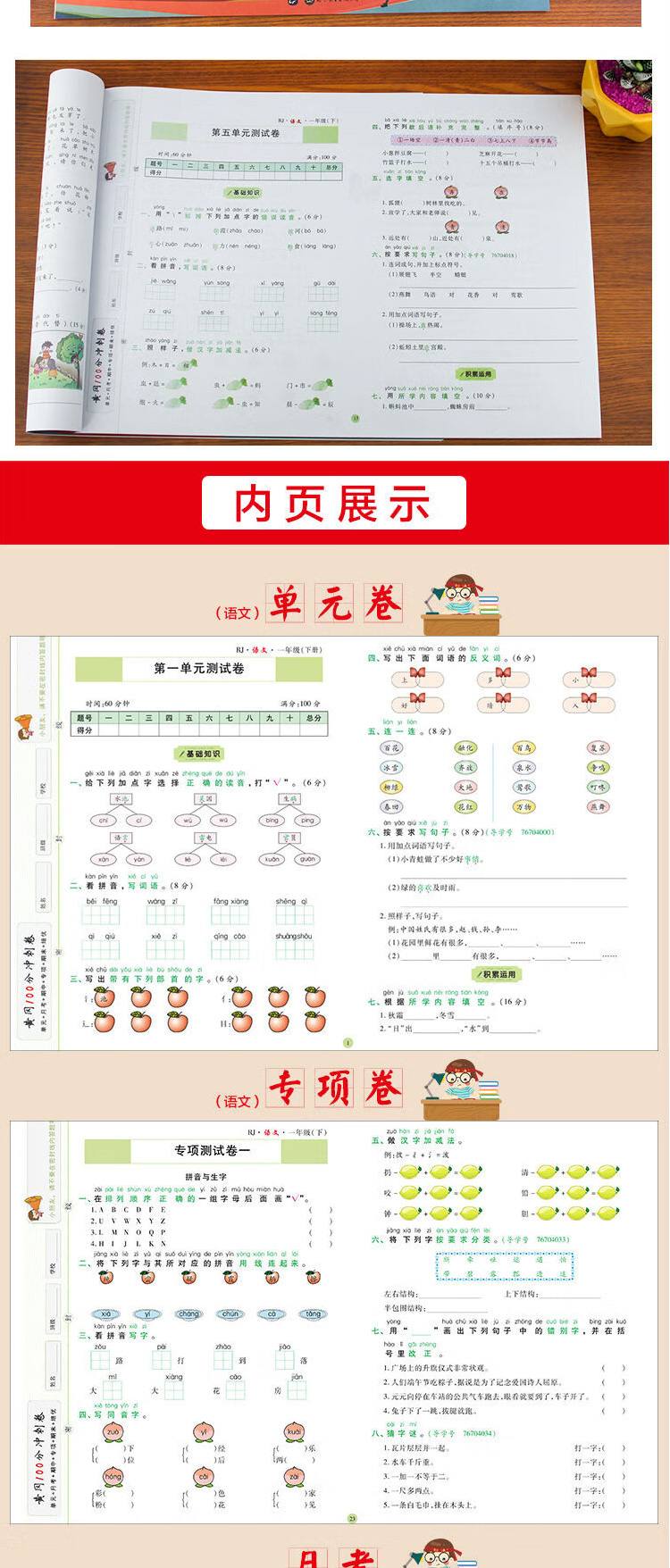 1年|一年级下册语文数学 名师彩卷黄冈100分冲刺卷同步训练