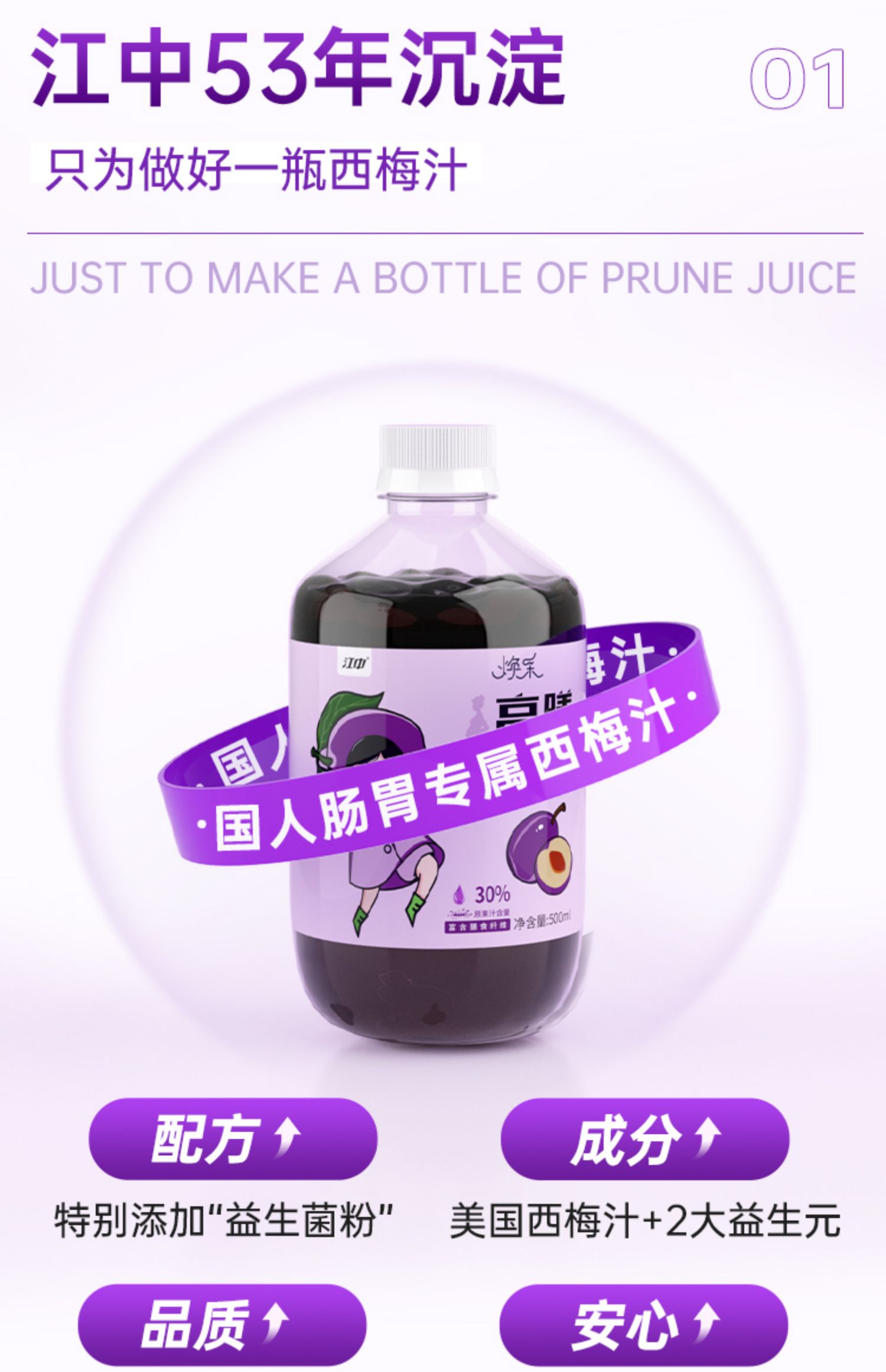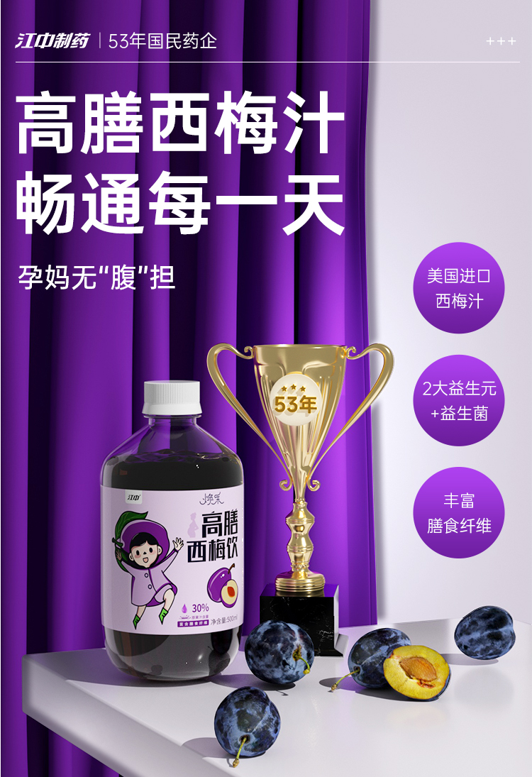 江中西梅汁2种益生元高膳果蔬饮料500ml/瓶西梅汁西梅饮