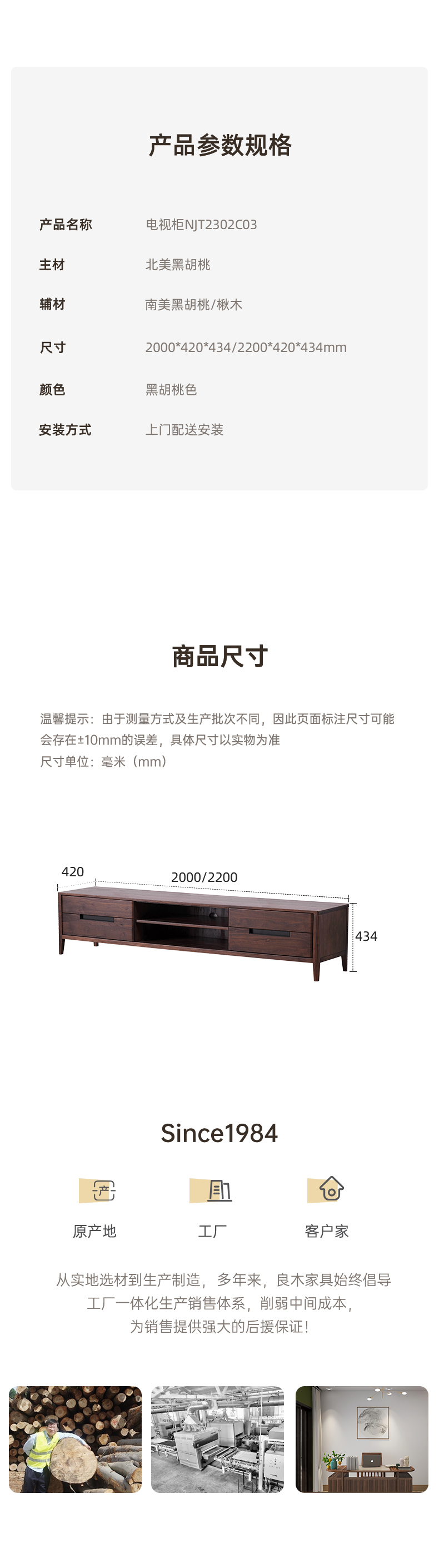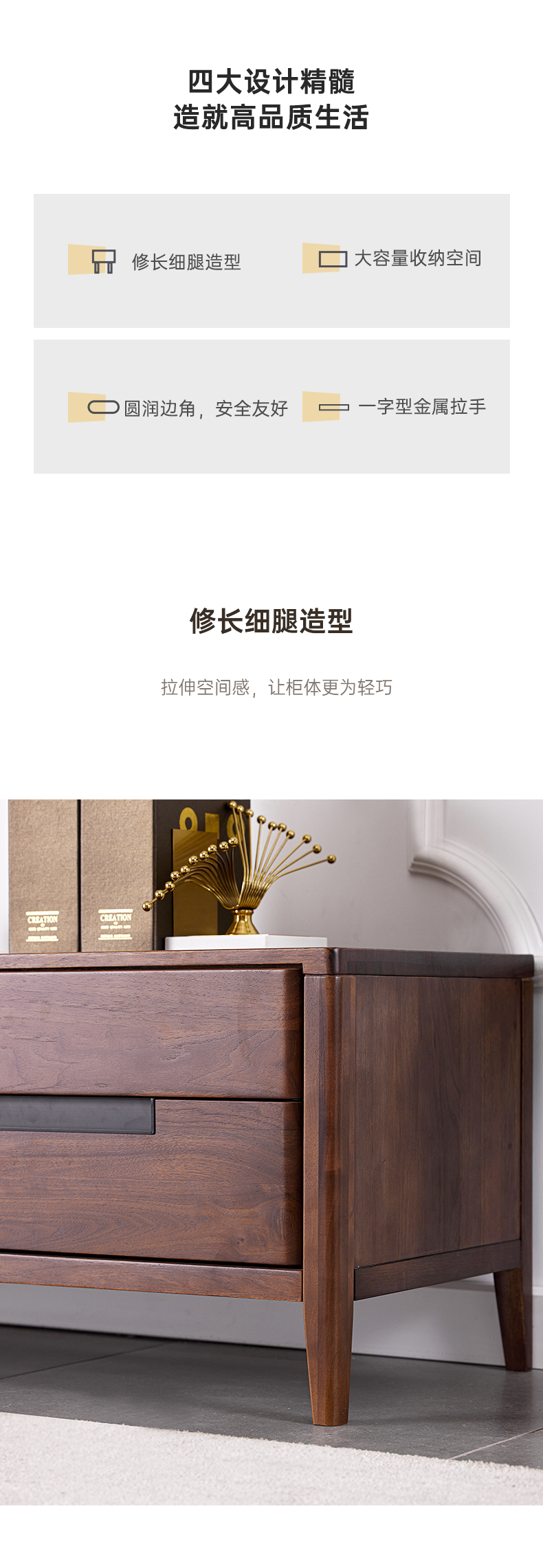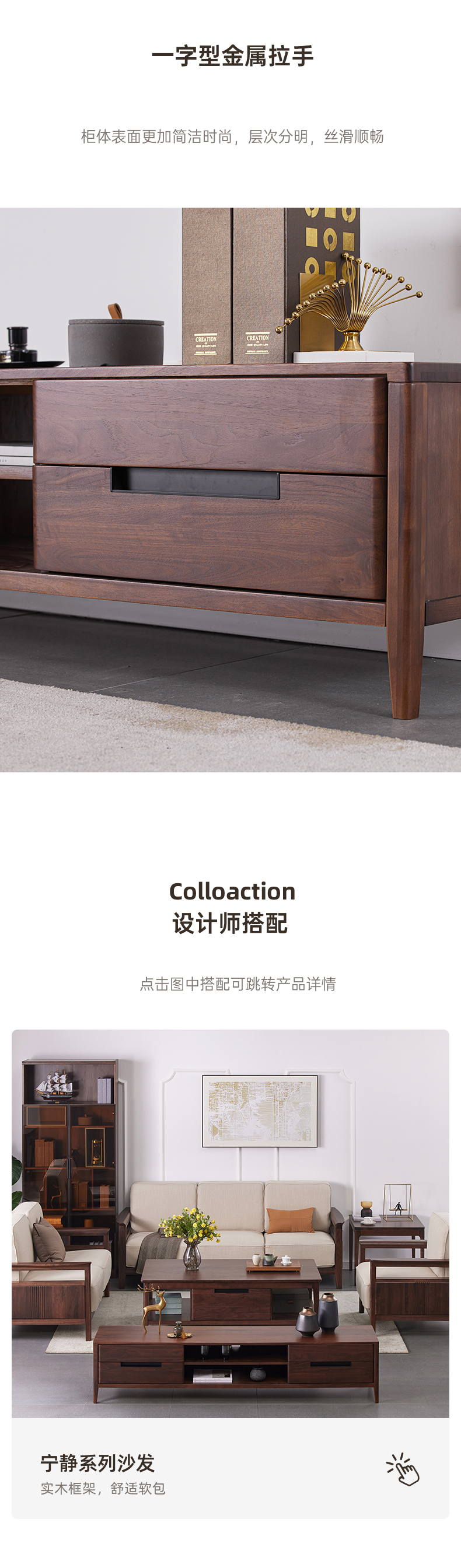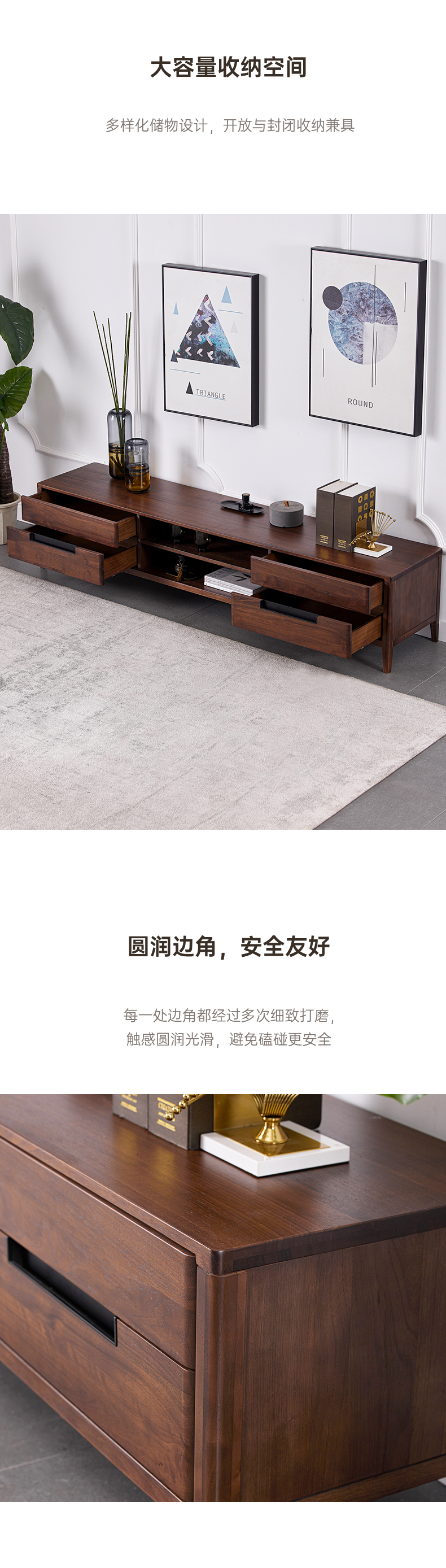 【现代实木风-NJT2302电视柜】现代实木/现代简约/客厅/北美黑胡桃/ 实木电视柜